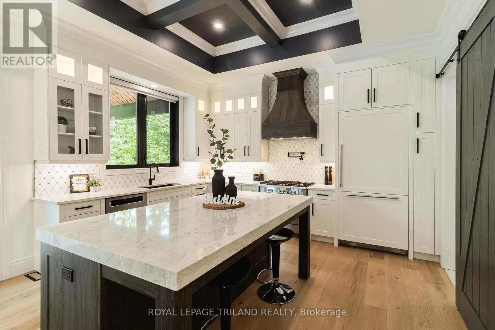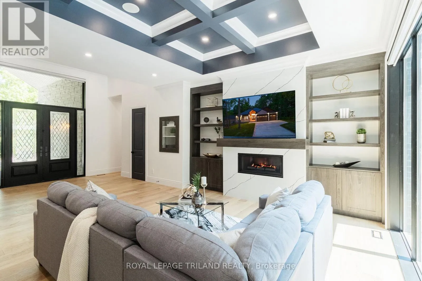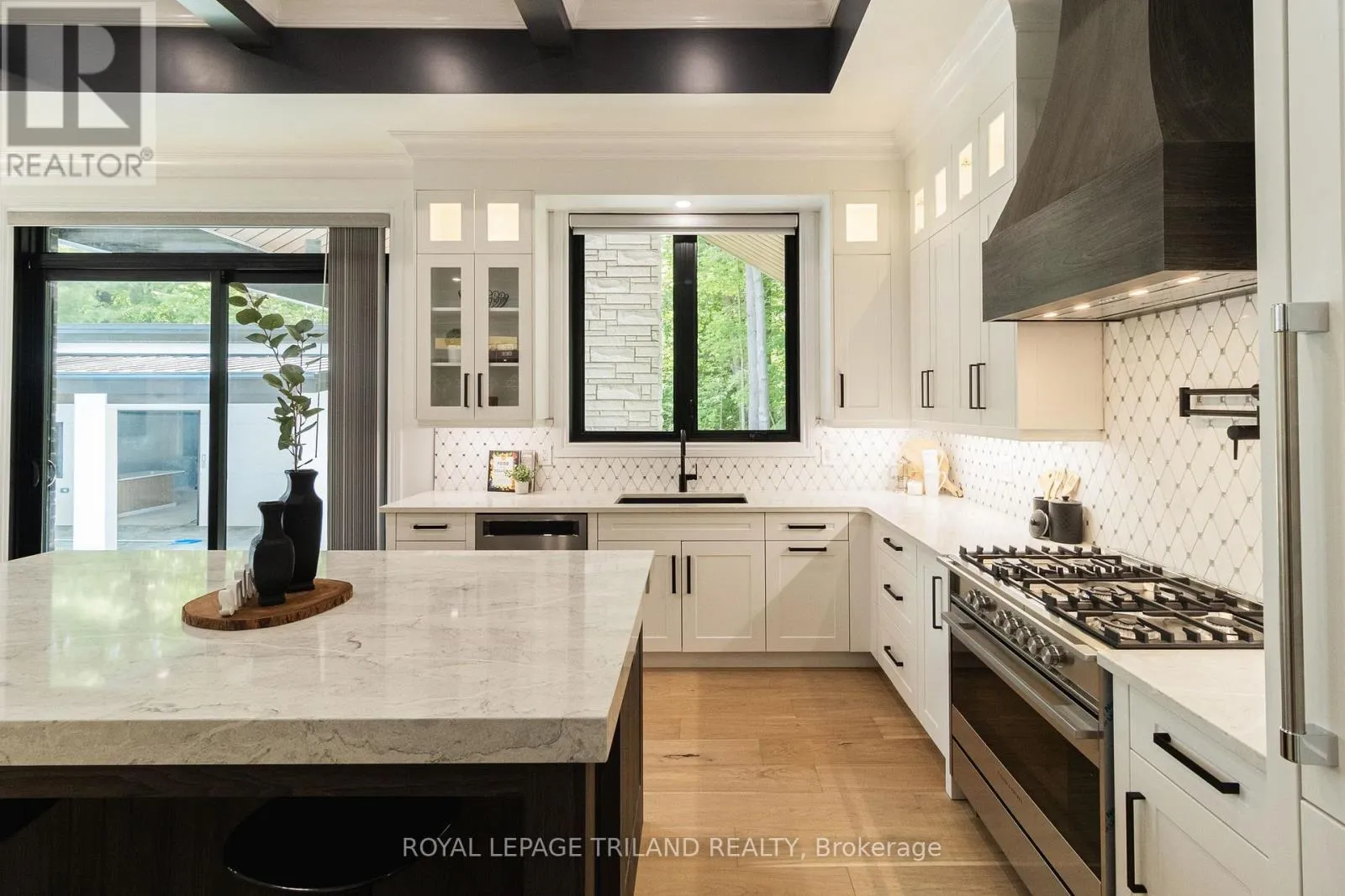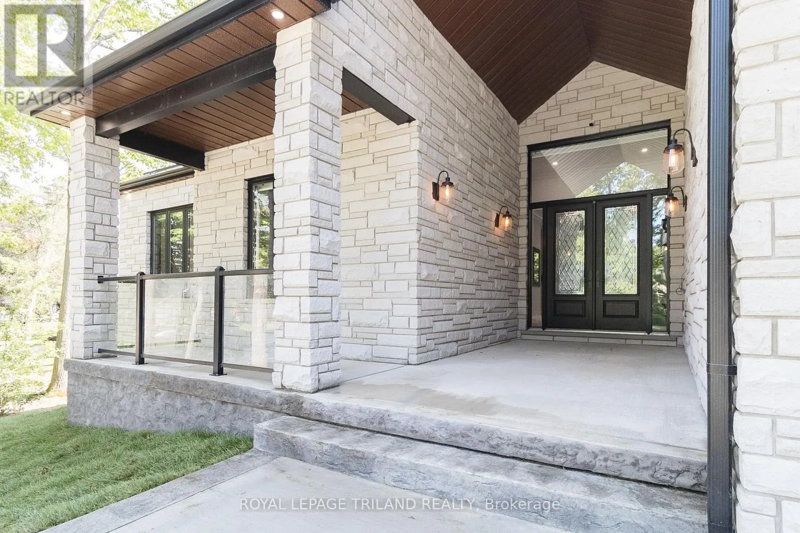 Cross Streets: Pineview Crescent. ** Directions: MAP TO 10175 MERRYWOOD DR, GRAND BEND, ON: Go east on Merrywood Dr just south of No Frills, beach access down Pinedale Rd. NEW CONSTRUCTION IN GRAND BEND | MATCHLESS & STUNNING BEYOND COMPARE | EXECUTIVE LEVEL LUXURY | UNPARALLELED FEATURES & QUALITY | HEATED SALT WATER POOL W/ WATERFALL | GUEST HOUSE | 6 BEDROOMS, 4 BATHROOMS, GYM, 2 BARS, 3 CAR GARAGE - the hit list is endless! In terms of new construction by the beach in Grand Bend, this surpasses as good as it gets. This exceptional custom masterpiece courtesy of renowned builders Gold Rock Homes is a definitive example of the phrase "next level". As a one of a kind family home or premium cottage, this is a house that must be seen to gain an understanding of the truly remarkable style & superior construction & finishing. The attentive & creative expert builder didn't miss a thing! This BRAND NEW home comes complete w/ a premium appliance package, movie theatre seating & HIFI package, & a 7 Year Tarion New Home Warranty among many other extras. From the second you pull into the property, you'll notice a plethora of compliments unique to this home & generally unfound in the Grand Bend resale marketplace. The excellent combination of brick & natural stone surrounds the entire house, a finish that is flawlessly accented by the 100% custom steel work in all of the gables & soffits, all of which is protected by a top-of-the-line diamond slate metal roof. This is also a smart-home, with everything run off your phone from the camera system, garage doors, & included sound system to the pool, the pool's one of a kind waterfall & fountain system, & the thermostats. However, its the sensational layout & show-stopping finishing that completes the package, w/ the soaring 2-tone coffered tray ceilings & the epic custom chef's kitchen loaded w/ built-in/cabinet ready appliances creating incomparable luxury level living. Coming in just shy of 4000 sq ft & including a proper gym & movie theater, you also get the 840 sq ft insulated 3 CAR garage w/ its separate lower level entrance plus another 700 sq ft in the guest house! Perfection at the beach! (id:27476)