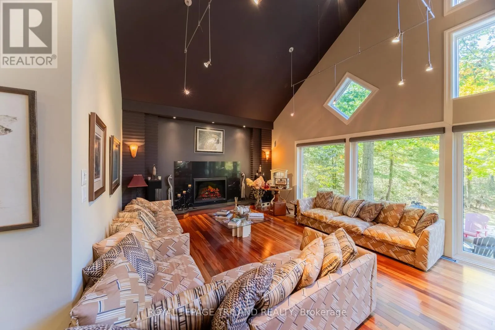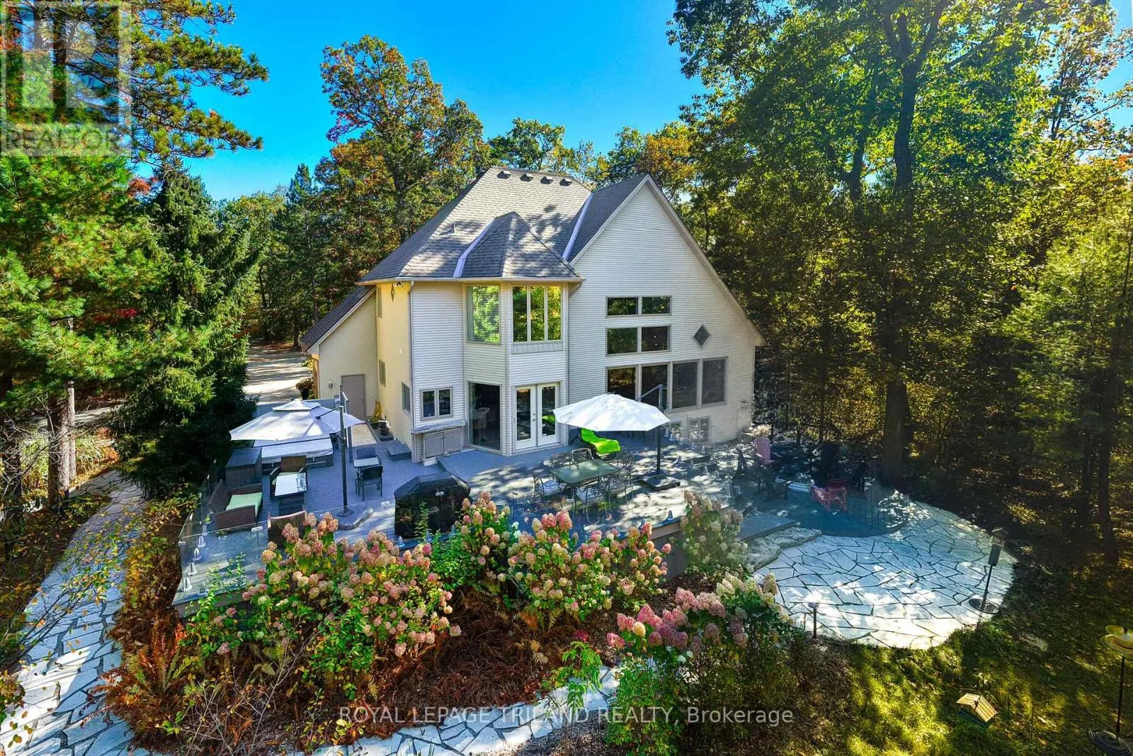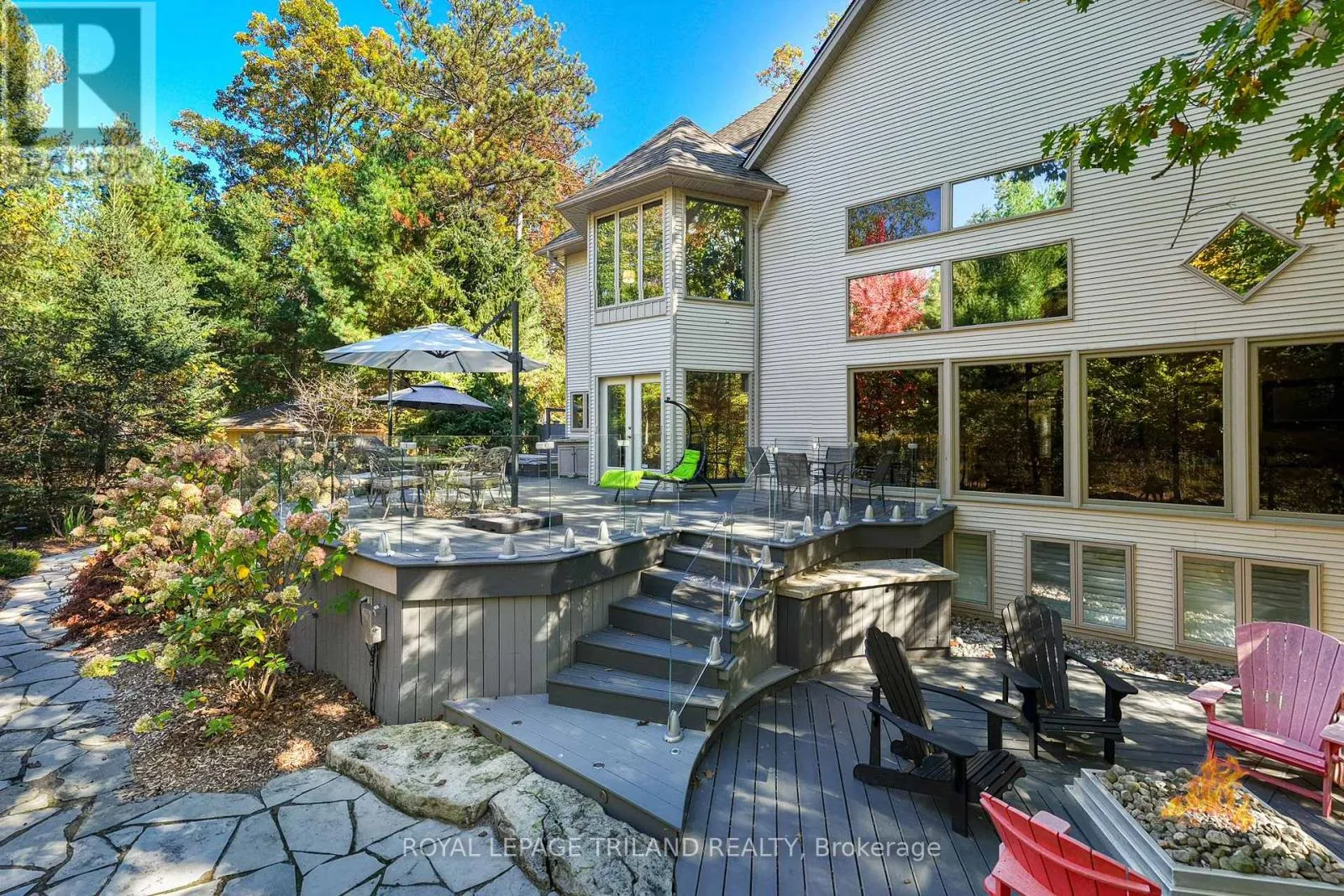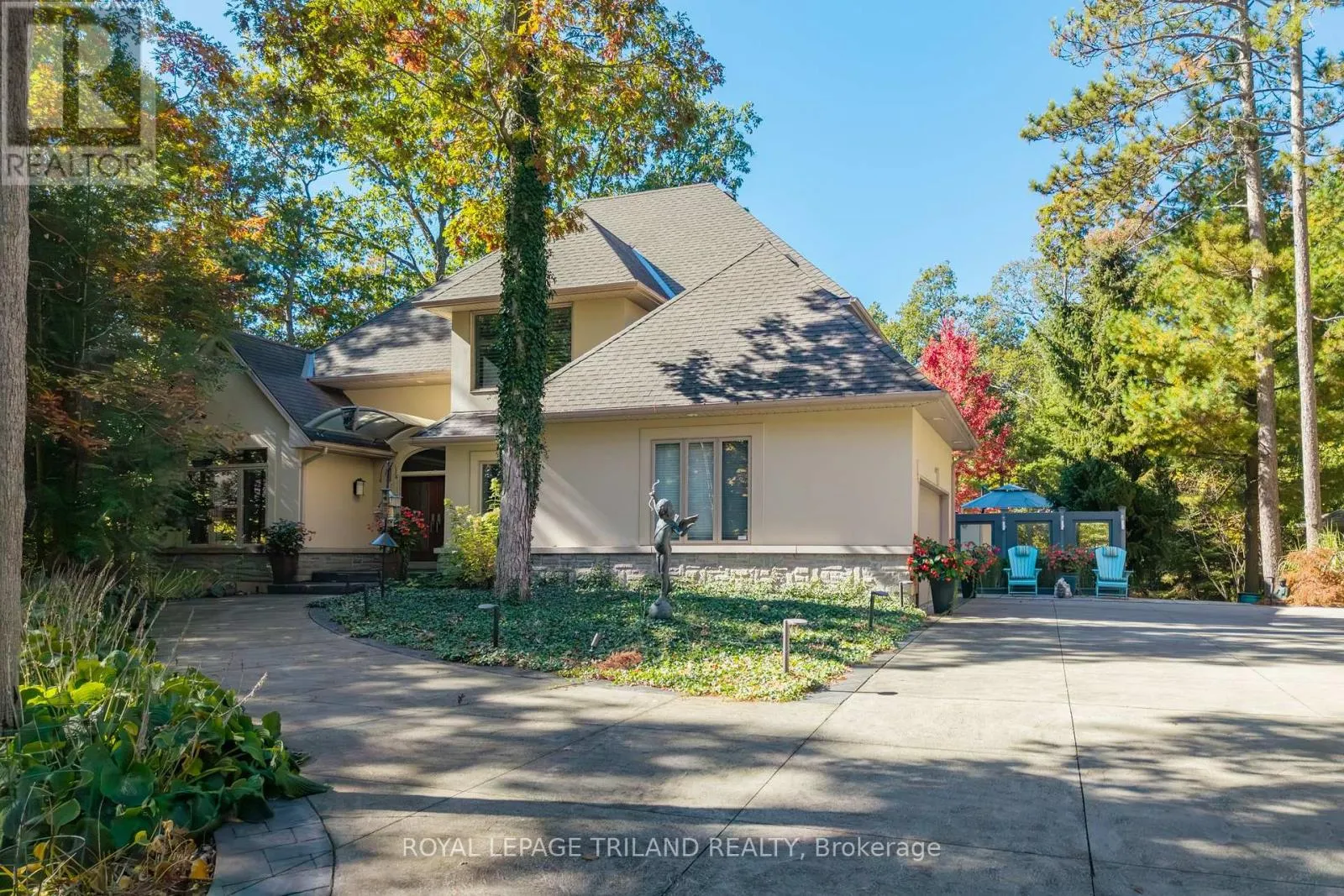 Cross Streets: Pinetree Drive, Huron Wood Drive. ** Directions: MAP to 10016 THE TRAIL, GRAND BEND, ON: Located in Huron Woods west of the River in btw Pinetree Dr & Huron Wood Dr 830 mtrs to Deeded Beach Access. EXECUTIVE DISTINCTION IN HURON WOODS | ULTRA-PRIVATE 1.15 ACRE LOT | 4 BED (w/ easy 5th)/3 BATH LAYOUT ACROSS 3800 SQ FT OF IMMACULTE LIVING SPACE | AMAZING MASTER SUITE, WINE CELLAR, SAUNA | DEFINITIVELY LUXURIOUS, UNIQUE & EXCEPTIONAL, INDOORS & OUT! This dazzler is nestled into an outstandingly secluded Huron Woods lot on the quietest street in the subdivision just a 7.5 walk to deeded access to the forever sandy & private beach fronting Beach O' Pines@ the Pinery Park. The hitlist is incredible; cabinet ready maple chef's kitchen w/ stainless exhaust above built-in gas island range, superior Glow Fire designer series fire place below 28ft ceilings over exotic hardwood, breathtaking master suite w/ resort style ensuite bath over heated floors & private dressing room overlooking forest w/ no neighbors in sight, premium $20K Hydropool Spa sitting atop the endless Trex decking surrounded by LED multi-colored CrystalRail glass, '22 furnace/AC, $250K in landscaping/stone/concrete/outdoor lighting/outdoor gas firepit (3rd FP), waterfall, irrigation system, Generac FULL HOUSE Gas Generator; it's been years since a Huron Woods property had offered such features in this price range! The unique layout has heads of household on their own floor w/ the exquisite master suite beyond the Romeo & Juliet balcony. The open-concept main level provides a sprawling living/dining great room below soaring ceilings open to the chef's kitchen + you get a main level bed (currently office), powder room, addt'l living/TV room, & main level laundry adjacent to inside entry from heated garage. Lower level has a large family, 2 more bedrooms (1 w/ gas FP) + an addt'l room (storage) w/ large window that could be a 5TH BEDROOM, full bath, fitness room w/ included sauna, a legit wine cellar, & ample storage (workshop potential) + the large utility room. All of this regal quality in the home is surrounded by stucco, stone, a young roof & spectacular landscaping on a top lot in a prime location! (id:27476)