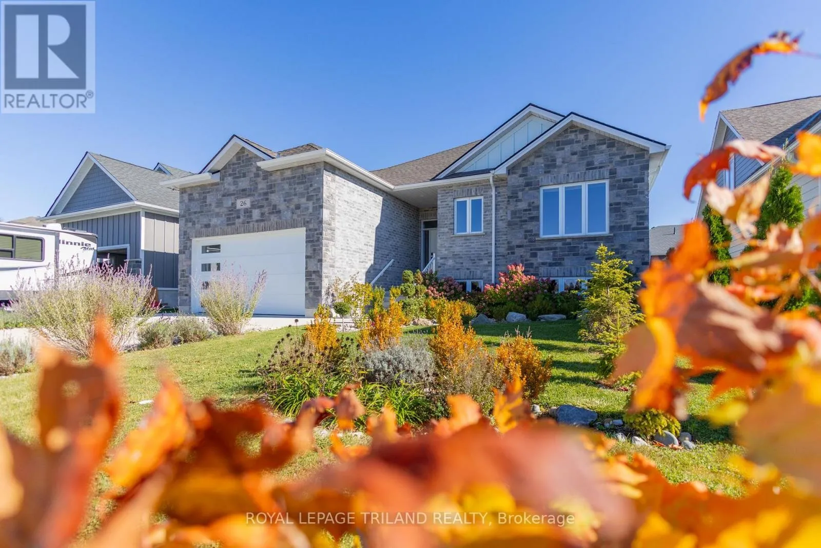Cross Streets: Brooklawn Drive, Deerfield Road. ** Directions: GPS to 26 Tattersall Lane, Grand Bend, ON or head north on Tattersall lane just past the Sobeys plaza at McDonalds. House is located on right on second block directly across from park. TOP QUALITY IN GRAND BEND AT THE BEACH | 5 YRS OLD AND BARELY LIVED IN | STILL UNDER TARION WARRANTY | BEST IN CLASS PRICING IN YEARS! Based on recent sales, your value per dollar for this excellent bungalow is unbeatable in this neighborhood! This superb brick & stone custom bungalow courtesy of Tarion builder Welcome Home Construction boasts exquisite craftsmanship & attention to detail, w/ the Tarion warranty still in place until Aug '27. This move-in ready dazzler features 3430 sq ft of impeccably constructed floor space, 1680 sq ft of which is finished to the nines on the main level & w/ lower level waiting waiting to to be finished to your liking! The 3 bed/2 full bath excellent main level layout (or 5 bed/3 bath & 2 kitchen w/ finished lower level featuring a roughed in 3rd bath & roughed in 2nd kitchen) has the quality level on overload, & the recently added deck, fencing, fresh paint, extensive landscaping, & advanced security system with utility alerts that reduces your home insurance costs truly make this an exceptional package at such a price point. Situated in an up-and-coming fantastic neighborhood steps to everything, including park space & bike trails beginning directly across the road (permanent green space that will never developed), this intelligently designed home doesn't miss a beat: vast open main floor w/ superb leathered granite kitchen, large master suite, main-floor laundry, & higher-end barely used appliances all included! The huge lower level w/ roughed-in bath & 9 FT CEILINGS has a separate side entrance & foyer opposite the inside entry from the insulated garage, ideal for granny suite/rental unit! And the combo of maintenance free stone, brick, & board & batten Hardie board is just perfect. Priced to fly, this one needs to be seen to be truly appreciated. Almost 2 yrs left on Tarion New Home Warranty, not that you'll need w/ a house this well-built! This is an incredible deal for a home that shows LIKE NEW in Grand Bend! (id:27476)