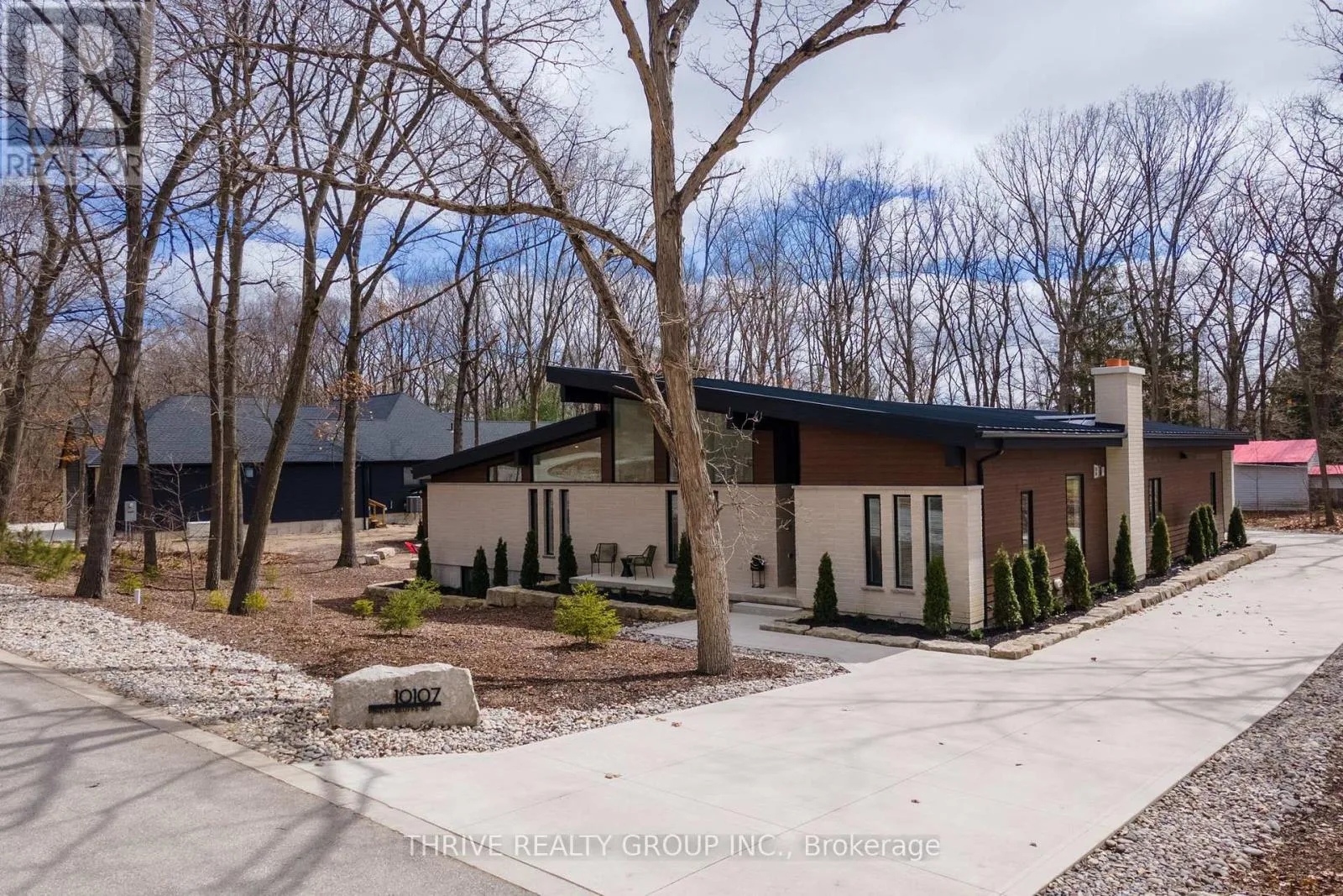 Cross Streets: Lakeshore Rd & Pinery Bluffs Rd. ** Directions: Lakeshore Rd to Pinery Bluffs Rd. 10107 Pinery Bluffs Road in Grand Bend is a luxurious residence in the midst of Lottery Dream Homes that seamlessly blends modern design with the tranquility of its natural surroundings. This newly constructed home offers a unique opportunity to own a contemporary home in one of Grand Bends most sought-after neighborhoods, combining upscale living with the natural beauty of Ontarios landscapes. The property offers a spacious layout featuring three bedrooms on the main level plus a 460-square-foot private guest suite, gym or home office complete with its own Heat/Cool pump, fridge & sink. The interior showcases high-end finishes and appliances with an open-concept design, creating an inviting atmosphere ideal for both relaxation and entertaining. Step out back through the sliding glass wall of doors to an impressive private courtyard with a large covered terrace perfect for your summer enjoyment. This property also offers a tandem 4 car garage complete with hot/cold water connections, roughed-in gas furnace hookup and a 100amp electrical sub panel. Situated in the prestigious Pinery Bluffs community, this property provides direct access to the serene landscapes of the adjacent Pinery Provincial Park. Residents can also enjoy a variety of outdoor activities, including hiking, biking, bird-watching and observing Award Wining Sunsets all within steps of their front door. The homes proximity to the shores of Lake Huron further enhances its appeal, offering opportunities for beach outings and water sports. *** May be purchased fully furnished*** (id:27476)