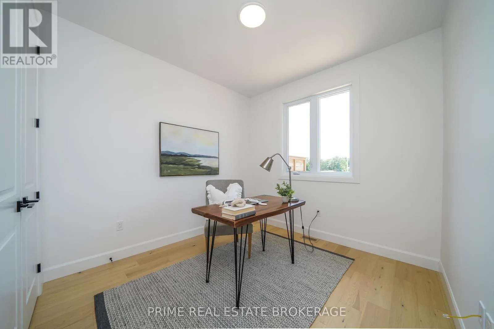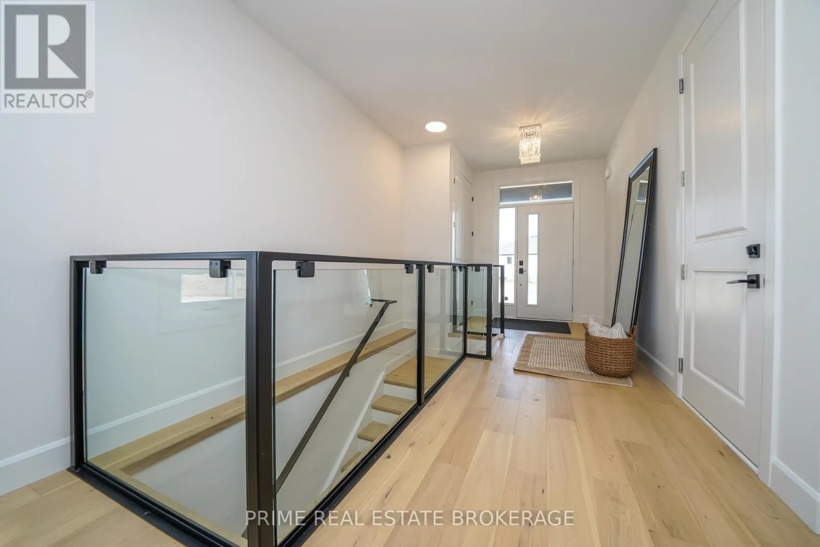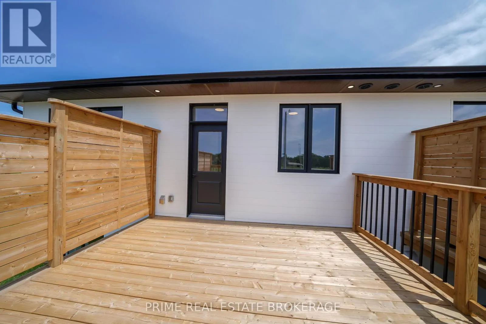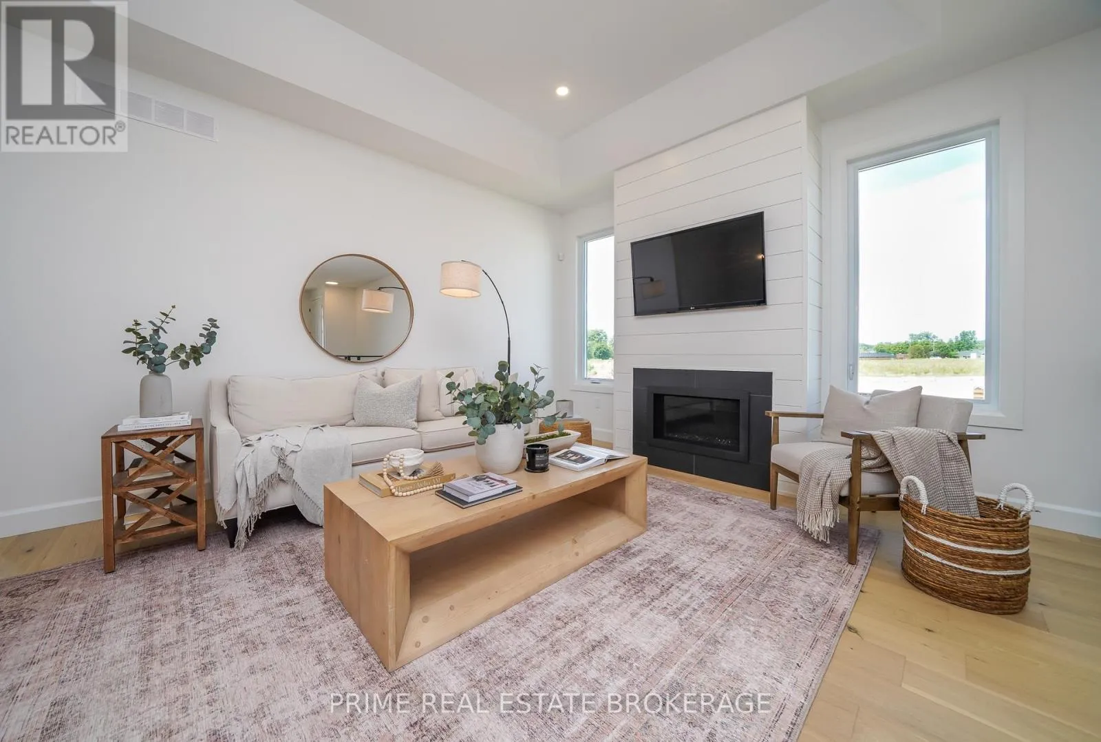 Del Sol Way Welcome to the 'Huron' Model at South of Main in Grand Bend. This professionally designed home, built by award-winning local builder Medway Homes Inc., offers the perfect blend of modern living and small-town charm. Ideally located within walking distance of downtown Grand Bend, grocery stores, restaurants, golf courses, and Grand Bend's iconic blue-water beaches, this home is your peaceful oasis amidst it all.This stunning end-unit bungalow in a 3-plex boasts 2,179 total sq. ft. of beautifully finished living space, including an 978 sq. ft. lower level. With 4 spacious bedrooms, 3 full bathrooms, a finished basement, and a 2-car garage with a double driveway, this home has room for everyone. Luxurious quartz countertops and engineered hardwood flooring elevate the interior, complemented by luxury vinyl plank on the stairs and lower level.The primary suite is a retreat of its own, featuring a generous walk-in closet and a private3-piece ensuite. The open-concept main floor is filled with natural light, thanks to 9-foot ceilings on both levels. Enjoy cozy evenings by the gas fireplace in the living room or host gatherings on the spacious deck, complete with a privacy wall and gas hookup for BBQ.Additional highlights include a 10-foot tray ceiling in the living room, a covered front porch, main floor laundry, among many more upgraded features.Enjoy maintenance-free living with lawn care, road upkeep, and snow removal for approx.$175/month. As a bonus, the developer has installed a backyard fence for extra privacy. Life is better when you live by the beach! (id:27476)