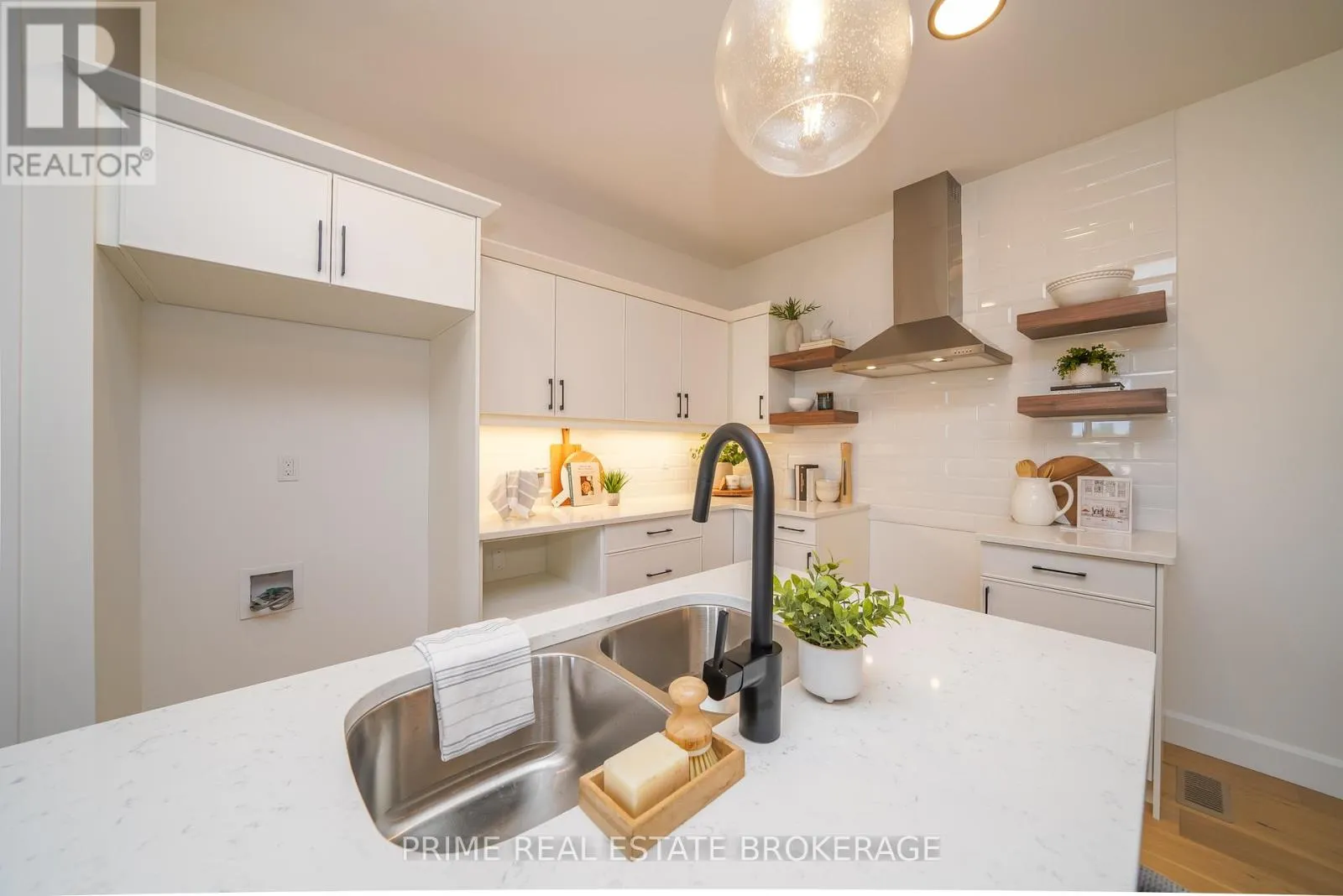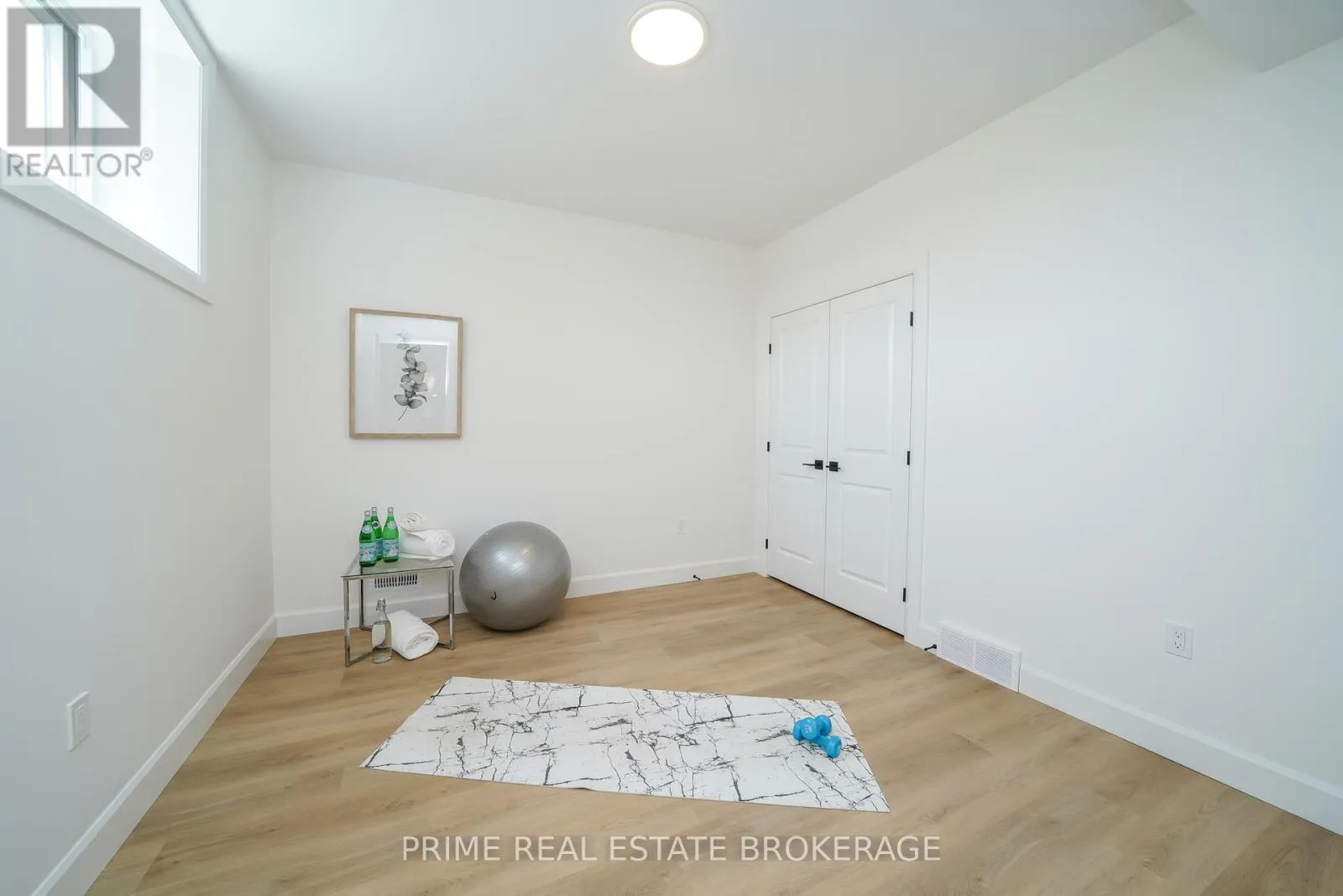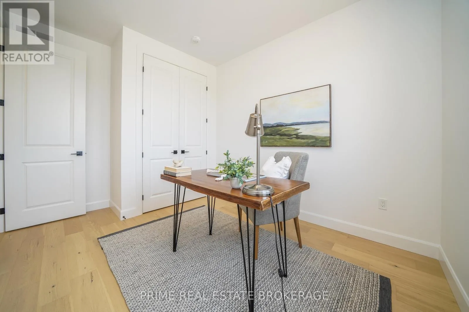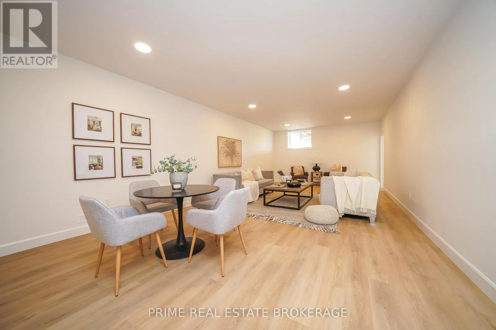 Del Sol Way Welcome to the 'Huron' Model at South of Main in Grand Bend. This professionally designed home, built by award-winning local builder Medway Homes Inc., offers the perfect blend of modern living and small-town charm. Ideally located within walking distance of downtown Grand Bend, grocery stores, restaurants, golf courses, and Grand Bend's iconic blue-water beaches, this home is your peaceful oasis amidst it all.This stunning end-unit bungalow in a 3-plex boasts 2,179 total sq. ft. of beautifully finished living space, including an 978 sq. ft. lower level. With 4 spacious bedrooms, 3 full bathrooms, a finished basement, and a 2-car garage with a double driveway, this home has room for everyone. Luxurious quartz countertops and engineered hardwood flooring elevate the interior, complemented by luxury vinyl plank on the stairs and lower level.The primary suite is a retreat of its own, featuring a generous walk-in closet and a private3-piece ensuite. The open-concept main floor is filled with natural light, thanks to 9-foot ceilings on both levels. Enjoy cozy evenings by the gas fireplace in the living room or host gatherings on the spacious deck, complete with a privacy wall and gas hookup for BBQ.Additional highlights include a 10-foot tray ceiling in the living room, a covered front porch, main floor laundry, among many more upgraded features.Enjoy maintenance-free living with lawn care, road upkeep, and snow removal for approx.$175/month. As a bonus, the developer has installed a backyard fence for extra privacy. Life is better when you live by the beach! (id:27476)