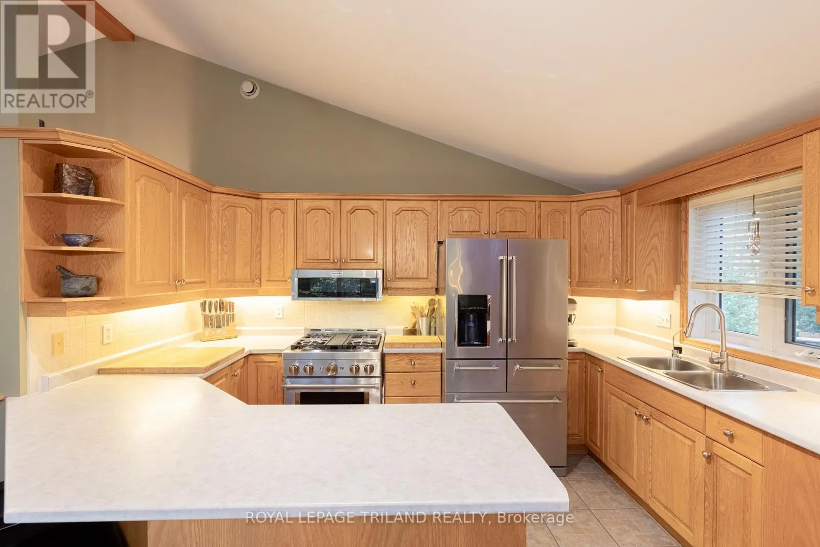 Cross Streets: Julie Avenue. ** Directions: MAP to 10092 LAKESHORE RD, GRAND BEND, ON: Just at the south end of town 220 mtrs past Westland Greenhouses but before the Flea Market, you'll find this property & detached heated shop tucked into your own private forest 150 mtrsto Pinery Park. GRAND BEND RETREAT STYLE 4 BED/4 BATH FAMILY HOME | 2707 SQ FT OF LIVING SPACE | DETACHED SHOP/FITNESS STUDIO/FULLY INSULATED GARAGE PLUMBED FOR IN-FLOOR HEAT w/ WATER SERVICE w/ OUTDOOR SHOWER INSTALLED | IN-LAW SUITE w/ 2nd KITCHEN | 1 ACRE NESTLED INTO PRIVATE FOREST | STEPS PINERY PARK TRAILS & EASY BIKE TO BEACH. Escape into nature in Grand Bend's Carolinian wonderland w/ a level of privacy that is nearly unmatched in this region. From the minute you pull into the long meandering laneway up to this young well-kept walk-out bungalow, you'll know you've found a very distinctive & special location. The smart layout of the home, detached shop/garage, & handy shed just beyond your large nature pond & accessible ramped entrance was designed to maintain mature forest surrounding this ultra private 1 acre lot from all sides. You are truly "in the woods", w/ the tranquility meter at 10! Bottom line, this is a stellar location, but just wait until you see this rock solid walk-out 2 kitchen bungalow 4 bed/4 bath fam home or up/down duplex w/ separate entrance! You could even use the lower level w/ separate entrance as an AirBnB rental to supplement your mortgage. Entering the home through the superb cedar sunroom w/ 2020 WOOD STOVE fireplace, you can feel the quality. The excellent sunroom walks you into a wide-open kitchen/dining/living area w/ a gas fireplace, all below vaulted ceilings &, via wall to wall prow windows, overlooking your private woods, deck, & patio w/ an included 2020 Arctic hot tub. Wow, just wow. The main level also offers a large master suite w/ walk-in closet & oversized ensuite bath, an addt'l roomy bedroom & 2nd full bath, laundry, & a rock solid blonde kitchen full of included 2022 appliances (ALL appliances included btw). The lower level w/ separate entrance offers 2 more beds, 2 full baths, & a kitchen/living area w/ electric fireplace. Steps to Pinery Park trails & easy beach access, this one is a true gem! Available for immediate possession (id:27476)
