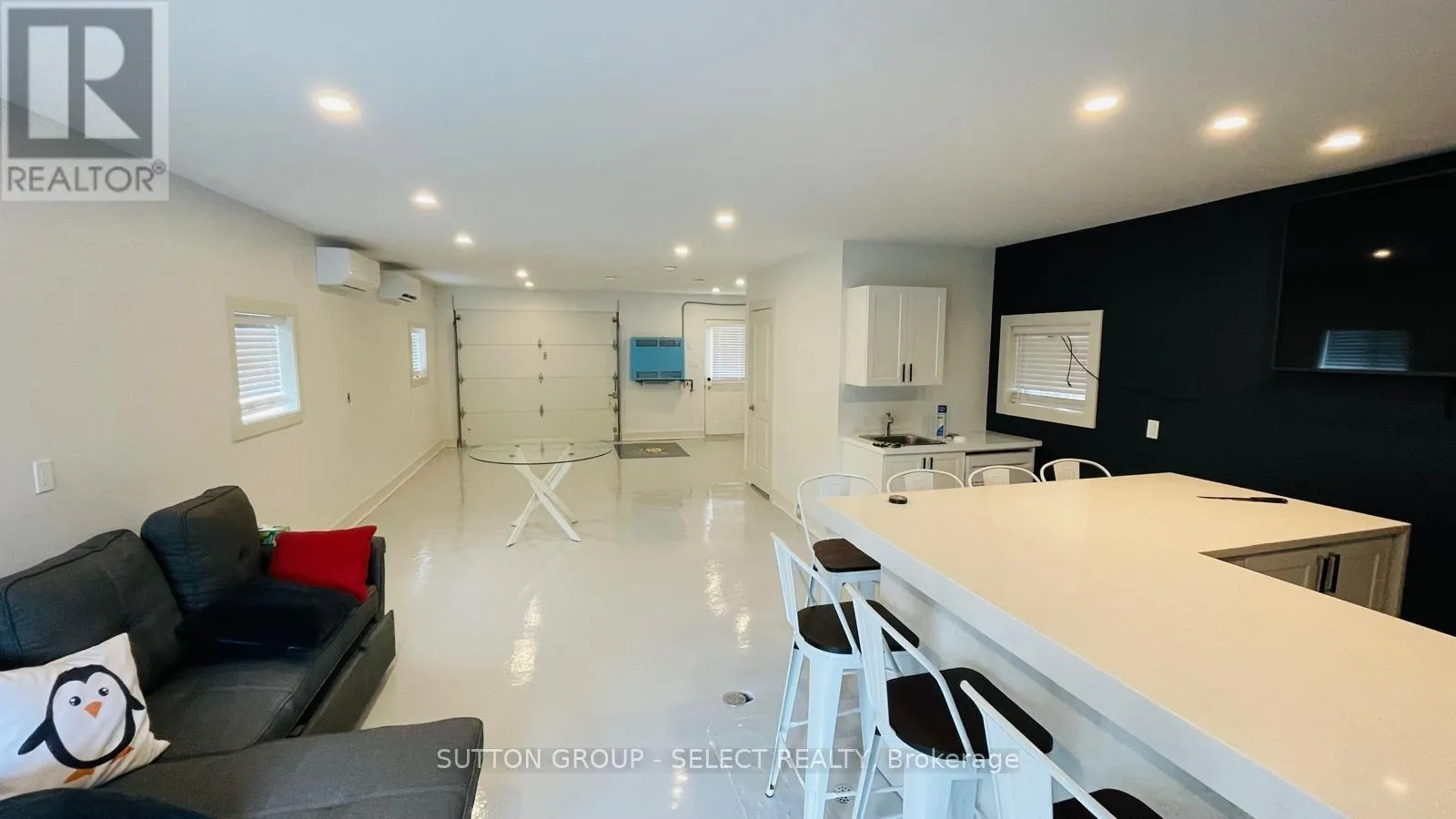 River Rd. & Heaman Dr 2 BEDROOM RIVERFRONT CHARMER AT GRAND BEND MARINA | 180 METERS / 1.5 MIN WALK TO GRAND BEND'S FOREVER SANDY SOUTH BEACH & LAKE HURON | STELLAR VIEWS OF LAKE & SUNSETS | MASSIVE RENTAL POTENTIAL AS 2 SEPARATE UNITS: This former residential apartment above a fishing outlet now converted to a 2 bed 1 bath Apartment with newly renovated main floor commercial space ready for occupancy. it's a 4 season gem that has the potential to be a rental income monster, especially considering the price point. For a change, this is a value-driven real estate offering where the location-based characteristics exceed every other offering even close to this price range. Hands down, the value meter is at 11 with this 2014-built metal clad 1500 square foot building, in fantastic condition, now fully winterized, and with a low maintenance full concrete property & picturesque portrait worthy view of the lake & sunsets that are better than those seen at some lakefront properties sold in this area! Come out & collect those multi-million-dollar panoramas & big Airbnb income without having to pay anywhere near the prices of properties that offer similar views & income potential. Plus, you'll be just steps to fantastic amenities such as the Cottage Cafe, White Caps, and our local Art Gallery and boat launch. Speaking of boats, the ample parking on site provides lots of room to park your boat or jet skis when they aren't docked right at your property. PUBLIC dock space at the property has been available more often than not for the current owner, but this is NOT owned, and dock space is not guaranteed as part of this listing. Offers any time. Priced below market value. Appliances and furnishings included. (id:27476)