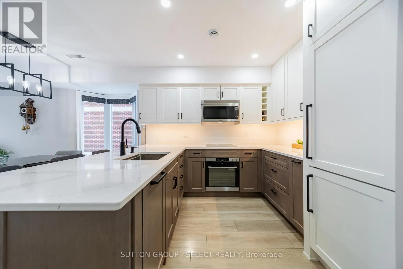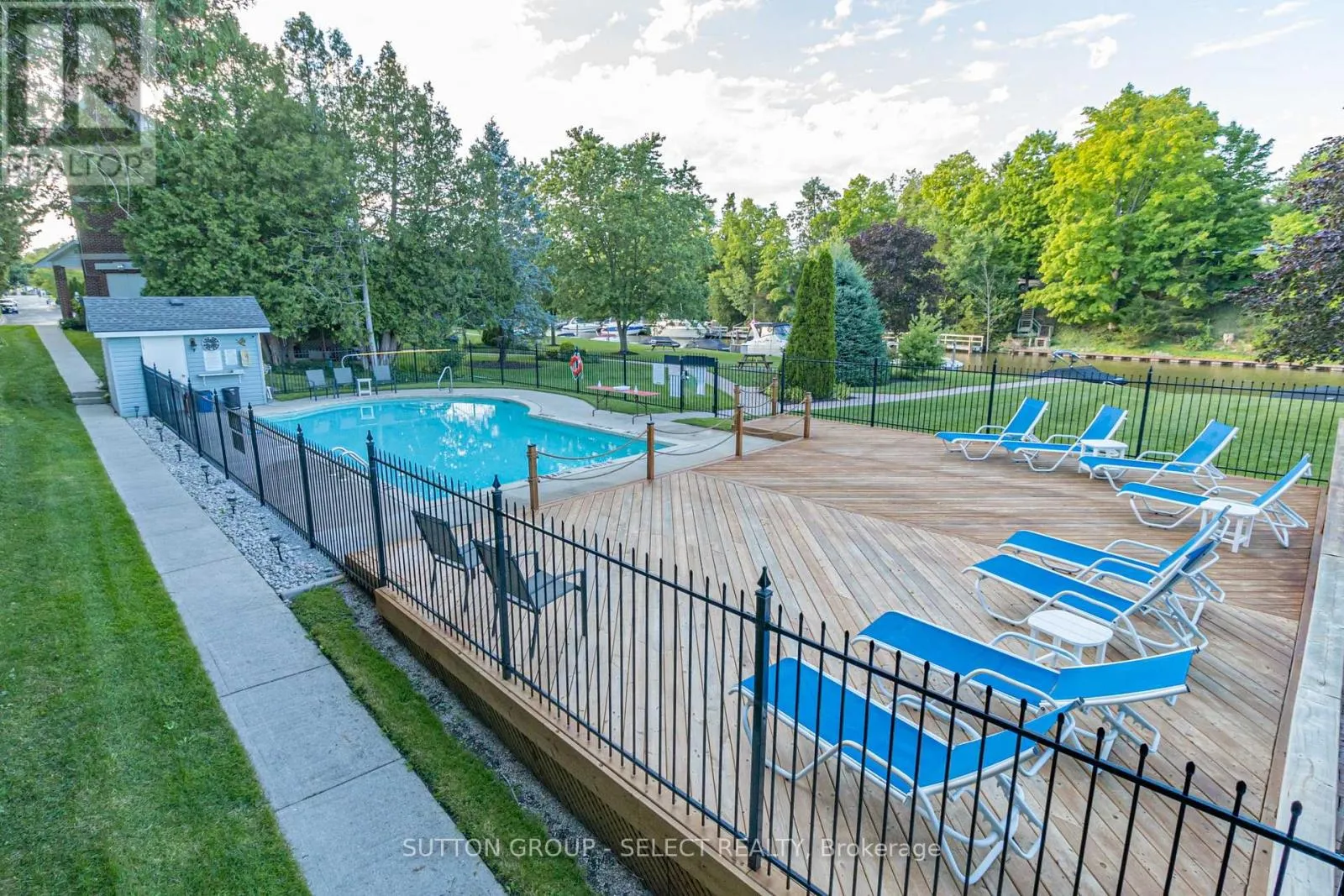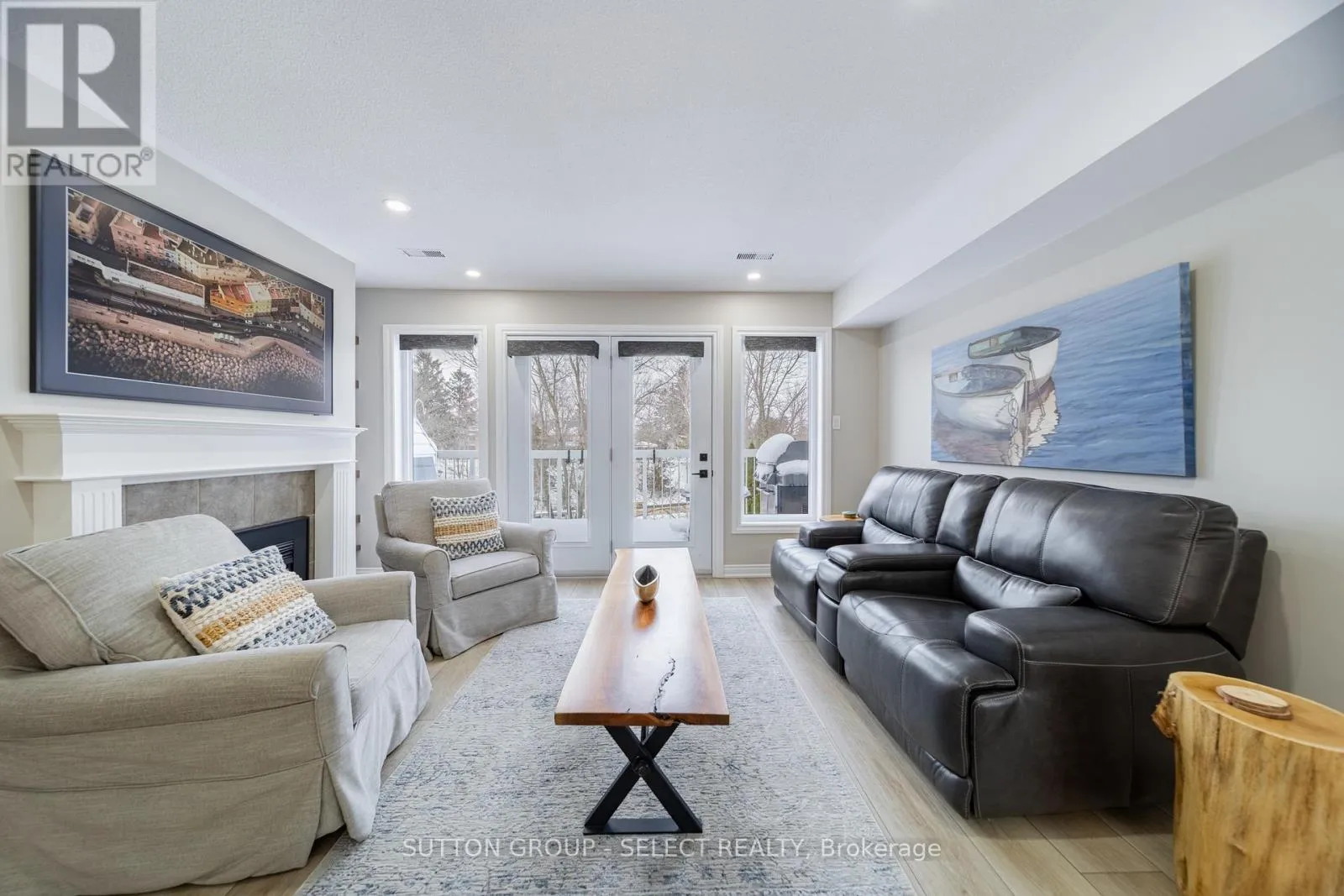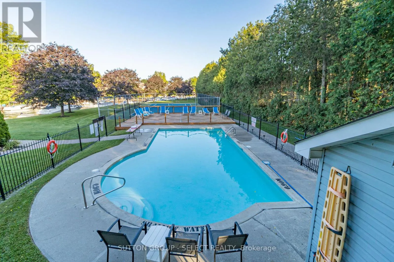 Cross Streets: Hwy 21 & River Rd. ** Directions: From Hwy 21 (Ontario St) turn into complex at 48 Ontario St S located between the sets of lights in town near the corner of Lake Rd & Ontario St. PREMIUM RENOVATED 2-storey 3 bed, 2 bath townhouse condo in Grand Bend's GATED WATERFRONT community, Harbour Gates. This complex is set on 3 ACRES & 700' OF WATERFRONT, featuring an inground saltwater pool, tennis court, meticulous grounds and a controlled entry gate. Owners enjoy first right of refusal on a 30' BOAT SLIP OUT FRONT OF THE UNIT - all at a dockage rate of just $25/ft. Be on the water in minutes and cruise out to Lake Huron to enjoy turquoise waters or award winning sunsets. Enjoy a short stroll to South Beach, Main Beach, dining, shopping & the strip. Offering 1,219 SQ FT OF LIVING SPACE, this TURNKEY END UNIT is a true showstopper. SIGNIFICANT PREMIUM UPGRADES were completed in 2023 feat. a high quality kitchen with quartz counters, maple cabinetry, and PREMIUM APPLICANCES including a panel-ready LIEBHERR fridge, panel-ready AEG dishwasher, AEG induction cooktop & built-in oven, Panasonic built-in microwave, Marvel dual-zone wine/beverage cooler & more. The living room features a fireplace with timber and tile surround, and custom built-ins. From there, walk out to a raised deck overlooking the waterfront and boat slip. The gorgeous, bright primary suite includes waterfront views, large double CUSTOM CLOSETS, automatic blackout blinds, and a beautifully updated cheater ensuite bath with a low curb shower and high end finishings & fixtures. OTHER UPGRADES: Powder room ('23), mudroom maple cabinetry/bench ('23), laundry room cabinetry/counter/sink ('23), LG ThinQ washer/dryer ('23), furnace, AC & owned tankless water heater ('23), pot lights ('23), paint ('23), luxury vinyl plank flooring ('22), interior doors ('22) steel stair railing ('22). Positioned at the back of the complex, you will enjoy added privacy and no neighbours on one side. This end unit comes with a DEDICATED PARKING SPOT and ample visitor parking. Bonus: PET FRIENDLY ANDLOW FEES OF $245/MONTH incl. building insurance, maintenance, roof, windows, snow removal & property management. (id:27476)