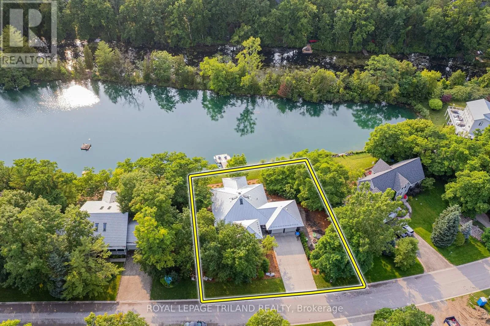 Cross Streets: Off Lakeshore Rd down to the bottom of Jennison Crescent overlooking Wee Lake & the Old Ausable Channel. ** Directions: MAP to 10099 JENNISON CRESCENT, GRAND BEND, ON - Turn west (toward Lake Huron) off HWY 21 on south end of Grand Bend just south of Beach O' Pines Rd and find this property at bottom of crescent on the lake. MUSKOKA IN GRAND BEND | WATERFRONT ON PRIVATE LAKE w/ SPECTACULAR VIEWS | STEPS TO SANDY BEACH ACCESS: Welcome to Wee Lake, Grand Bend's best kept secret featuring a crystal clear sparkling blue spring fed private lake for swimming, paddle boarding, fishing & kayaking + stellar skating & family hockey in the winter + access to the Ausable River for even better fishing! Fall in love with this young custom 4 bed/4bath walk-out bungalow, one of only 5 lakefront properties nestled into this secluded subdivision, which is a small & quiet single cul de sac community on the beachside of the HWY. With only 36 parcels total & lake access limited to Wee Lake residents (sharing 1/36 ownership of lake), this tranquil & peaceful naturally fed sparkling phenomenon is barely used. This stunning architecturally designed custom masterpiece fronts the lake w/ 134' of priceless linear water frontage. Providing exceptional main floor living framing-in nonstop lake views + a sprawling lower level walking out to your included hot tub & swimming/fishing dock just 50 ft from your poured concrete patio, this is a 10+! The layout is brilliant, w/ soaring main level ceilings inc. an impressive 20+ ft vault & 10 ft ceilings throughout rest of main, a stellar master suite w/ ensuite/walk-in, laundry w/ sink + 2nd laundry in lower, 2 more main level bedrooms (one w/ a 1/2 bath ensuite/ ideal for home office), 2 sunrooms (guest sleepers), 2 gas fireplaces, lower level walk-out w/ bed & full bath + wall to wall windows - simply perfect. Imagine sipping your morning coffee while the kids or grandkids swim off your private dock w/ the dogs enjoying their fenced in side-yard / dog run. As an ideal family get away, short term rental money maker, or yr round principal residence in the booming beach town of Grand Bend, this is a winner, just to steps to one of our most secluded area beach access points, the Pinedale Rd beach path. Furnished turnkey package may be available (WITH THE RIGHT OFFER)! (id:27476)