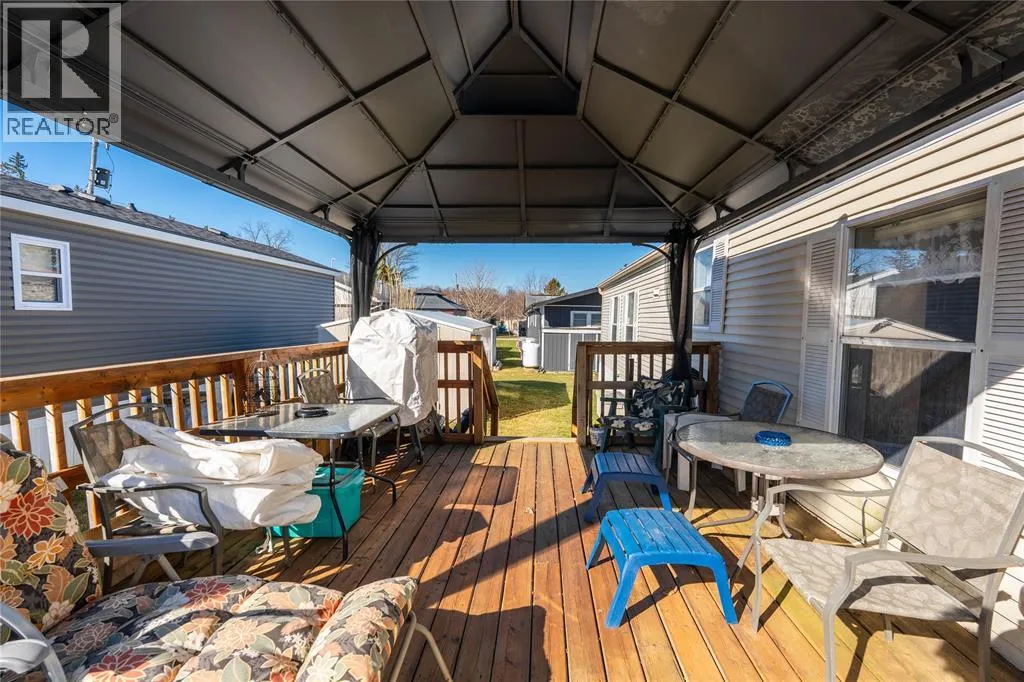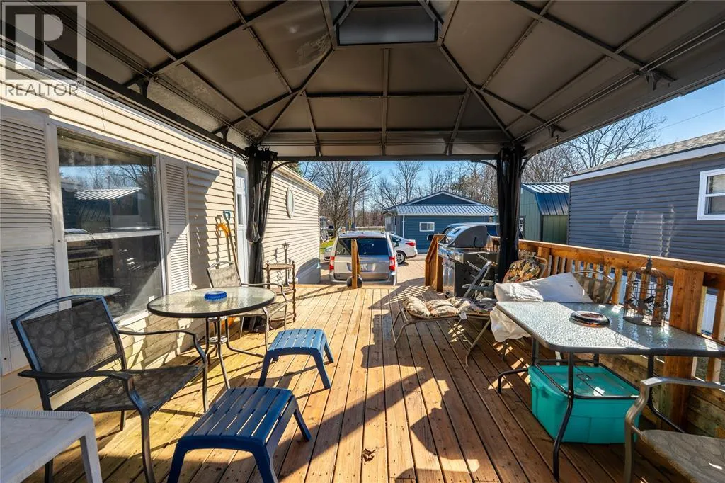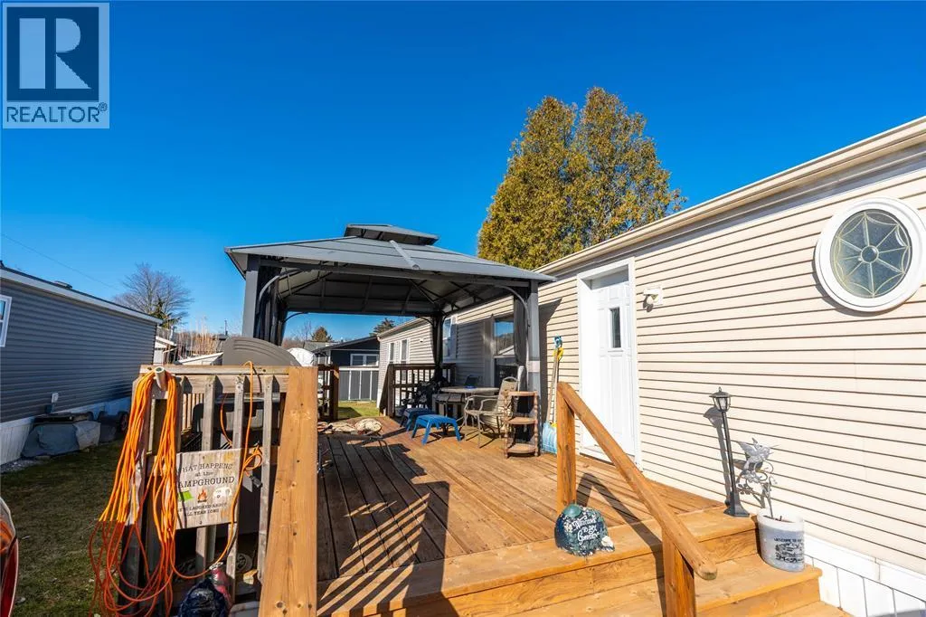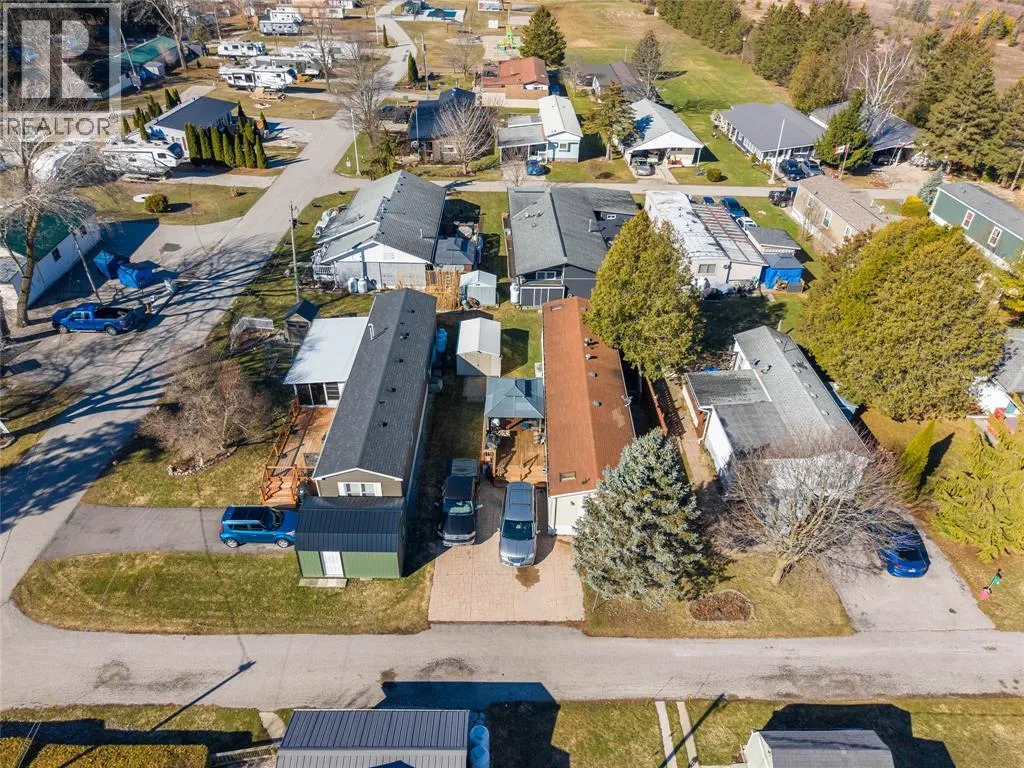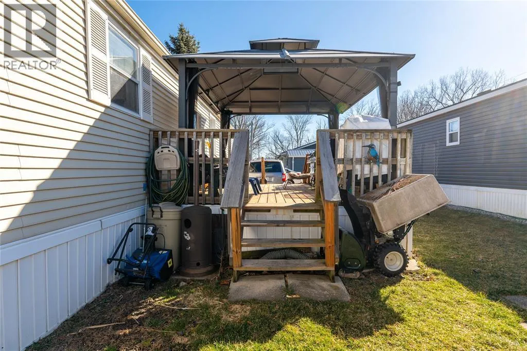Enjoy all that Woodhaven Resort has to offer! The kitchen is bright and spacious, offering ample cabinetry, generous counter space, and abundant natural light from multiple windows. The primary bedroom is a private retreat with a 3-piece ensuite featuring a shower and a walk-in closet. Two additional bedrooms are located at the opposite end of the home, conveniently adjacent to a 4-piece bathroom with tub/shower. Additional highlights include a separate laundry/mudroom, and a large wooden deck complete with a gazeboâperfect for relaxing or entertaining. The property also comes with a shed and a stamped concrete driveway. Monthly land lease is approximately $680 which includes property tax and water. Resort amenities include an inground pool, playground, and on-site laundry facilities. Conveniently located 50 minutes from London, 40 minutes from Sarnia, 3 minute drive to Ipperwash Beach and 20 minutes from Grand Bend, this home offers both comfort and location. Use Touchbase for showings. (id:27476)