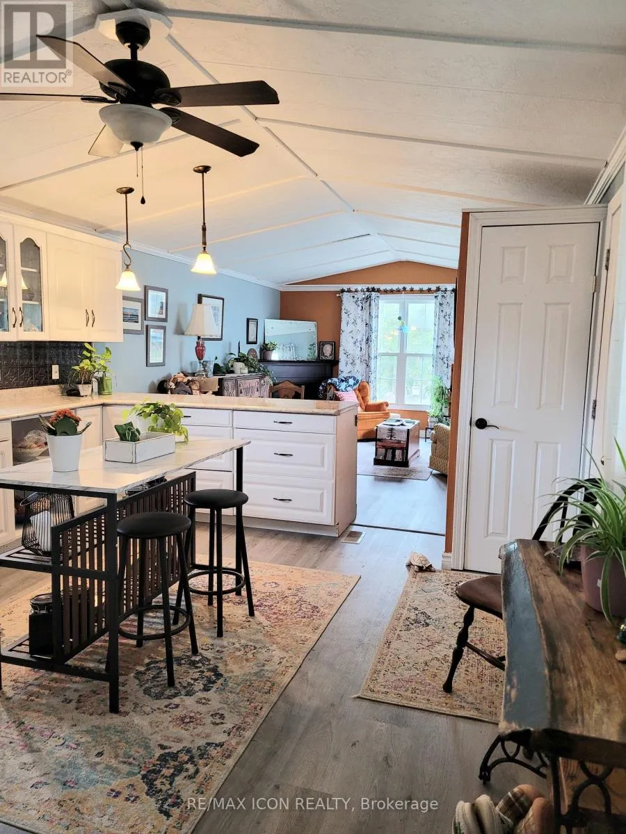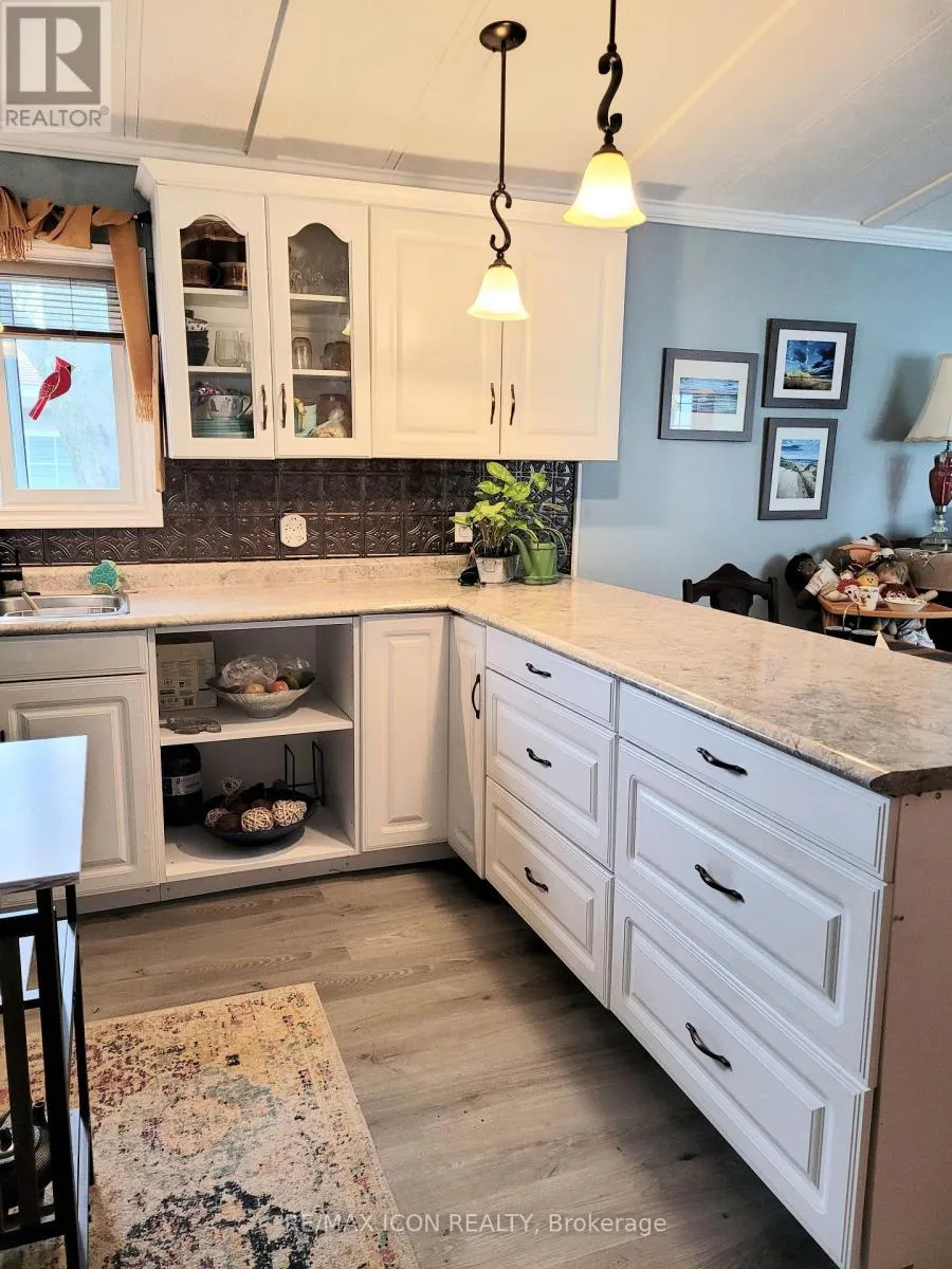 Cross Streets: Lakeshore Rd. and Greenway Rd. ** Directions: Highway 21, south from Grand Bend, approximately 7.5km to Pineview Mobile Home Park, on left. Well-maintained, year round, 70 ft. mobile home in a quiet, mobile home park just minutes south of Grand Bend. Ideal for 50 plus and retirees. Close to the great beaches of Lake Huron, several public golf courses and the Pinery Provincial Park. Open concept kitchen/living room with corner gas fireplace, vaulted ceilings, crown molding, and laminate flooring. Family room addition with pass through, plus screened in porch. Kitchen cabinets, bathroom, all plumbing fixtures, insulation, drywall etc. new in 2009. New flooring, hot water tank in 2025. Roof shingles & siding with extra insulation new 2009. Master bedroom has double closets w/mirrored doors & patio doors to 14 x 14 ft. private deck with hot tub. Low maintenance exterior, double driveway, 14 x 10 insulated workshop with hydro plus storage shed. The park features municipal water, park septic system, in-ground pool, clubhouse, picnic pavillion, extra vehicle & RV parking, garden plots, horseshoe pits, shuffleboard & common grounds/road maintenance. (id:27476)