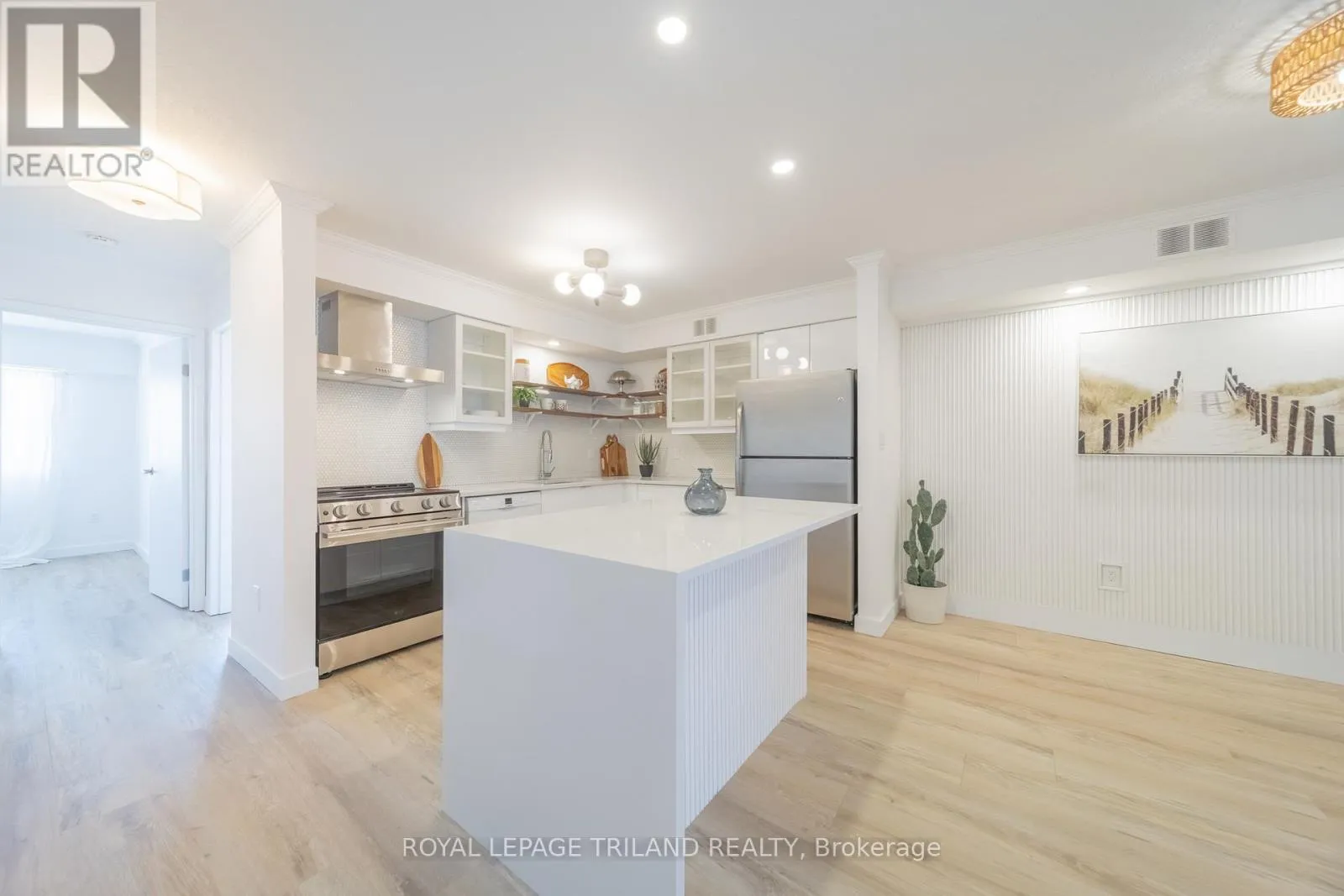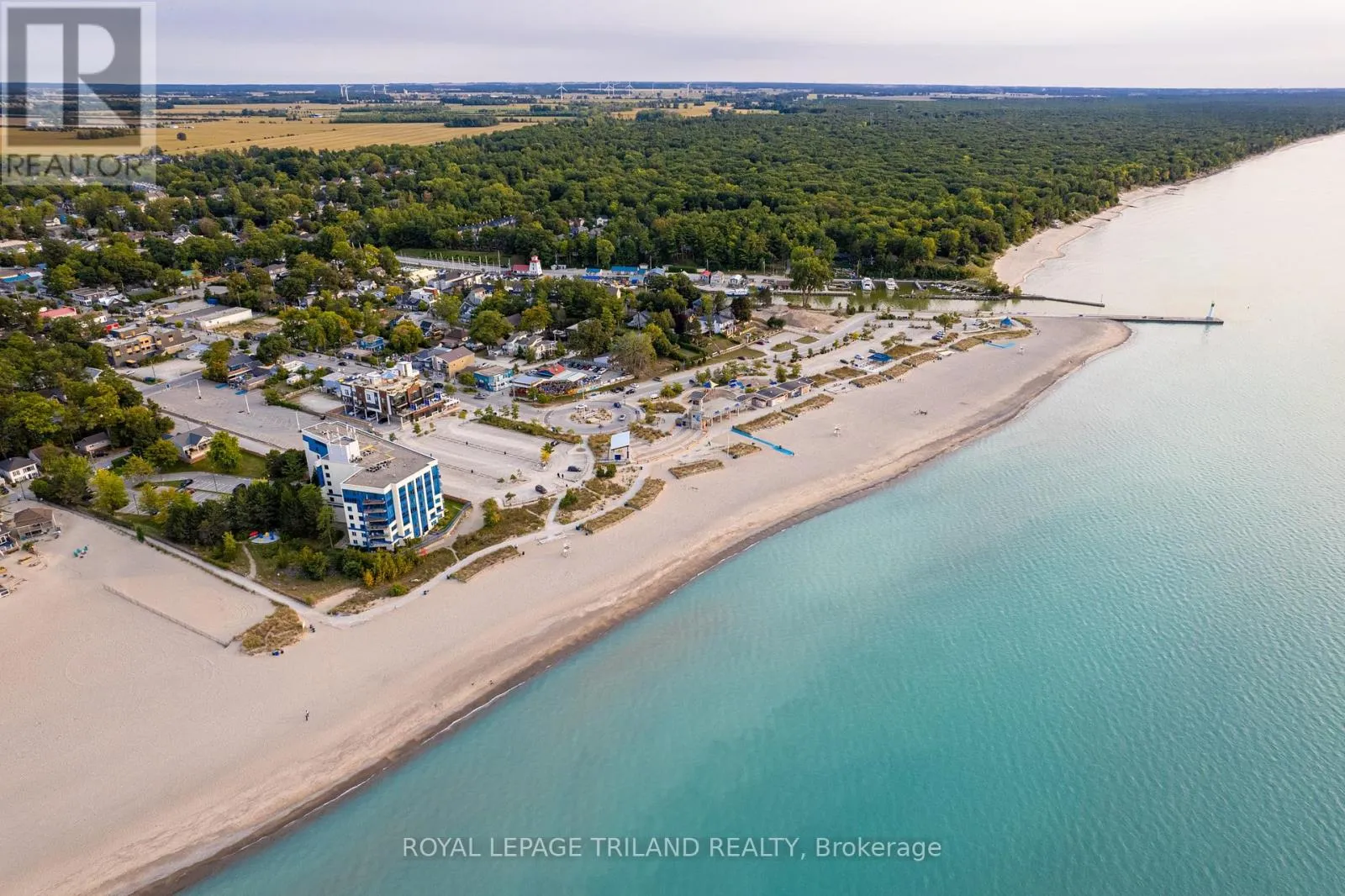 Cross Streets: Ontario St N (HW 21). ** Directions: Turn west toward the beach on Oak Street at Tim Hortons. 8 Oak is the first entrance on your left. Partially into the lot, look for the unit #3 w/ the Royal LePage sign on the fence that surrounds the patio, all just STEPS TO SHOPPING & MAIN BEACH!. LIKE A NEW HOME - A RARE OFFERING IN GRAND BEND! This is the first unit in this young, well-maintained 10-unit complex to be totally renovated, & it is now offered for sale for the first time since the brand-new renovation was completed in March of 2026. Every major interior finish has been thoughtfully updated, including a new kitchen w/ Hanstone quartz counters w/ waterfall island, appliances, bathroom, flooring, walls, lighting - ALL NEW! Seize what may be the most affordable opportunity for home ownership in Grand Bend as of Spring 2026. This functional & efficient forced-air gas heated & central air-conditioned condo is located just 490 metres from the 3rd-best beach in the country, making it the perfect coastal escape or full-time residence. Step away from city life & into relaxed beachside living, where weekends truly feel like vacations. Unit 7 is ideally positioned in the desirable 8 Oak complex 3 units from the end, tucked away from street traffic offering peace & quiet rarely found in the downtown "Village" core. Enjoy the convenience of in-unit private laundry, a bright open-concept primary living space w/ a sparkling new kitchen & various feature walls, a new bathroom, & 2 bedrooms. The like-new condition throughout ensures your investment goes a very long way. With a strong mortgage, owning this home could cost less per month than renting, as comparable units now rent for over $1,800 per month + utilities. Enjoy easy ground-level access, ideal for those with mobility considerations, reserved parking right at your doorstep, & a private BBQ patio. Sip your morning coffee on the balcony as the sun rises, relax in the private condo gazebo yard, then stroll to the beach for a refreshing swim & a stunning sunset. Pets welcome. Just a 5 min walk to endless sandy shores, world-class sunsets, & all of Grand Bend's amenities, this beachside condo delivers exceptional value in today's market. Didn't think you could afford Grand Bend? Think again! No STRs = peac (id:27476)