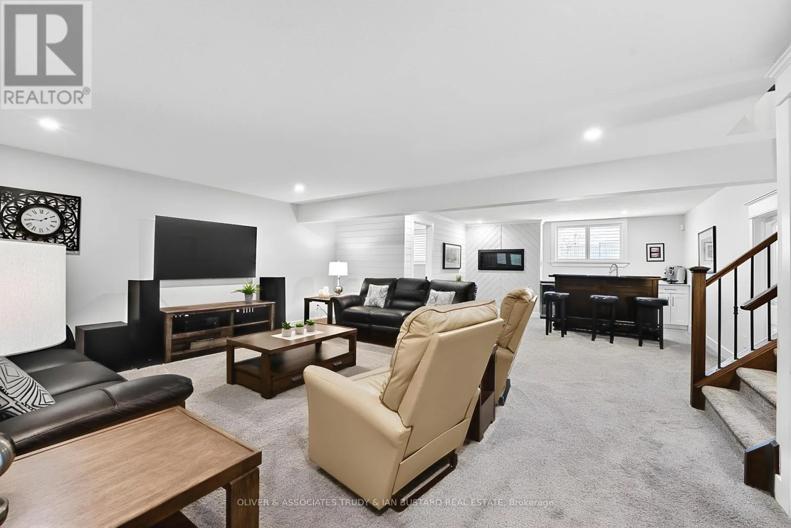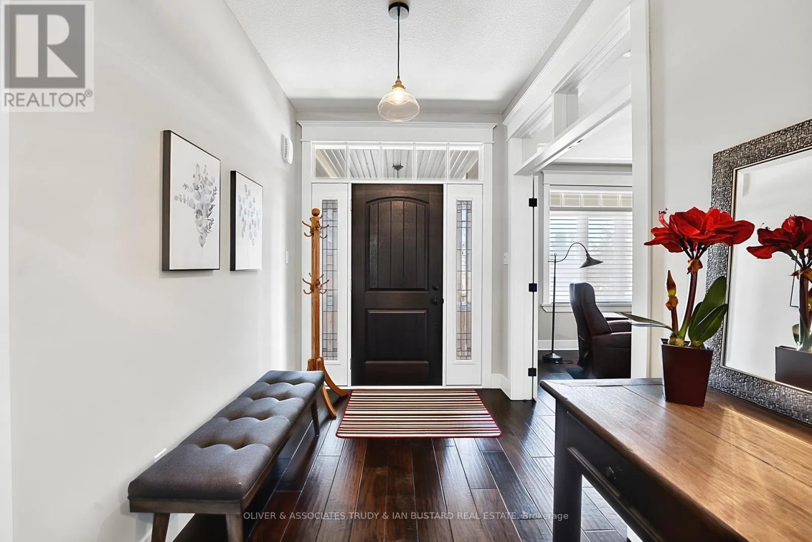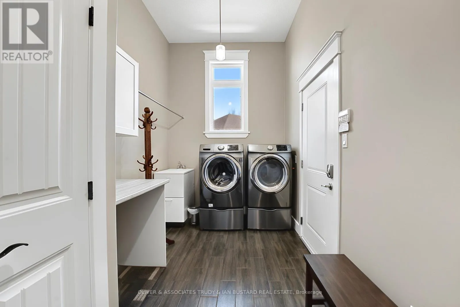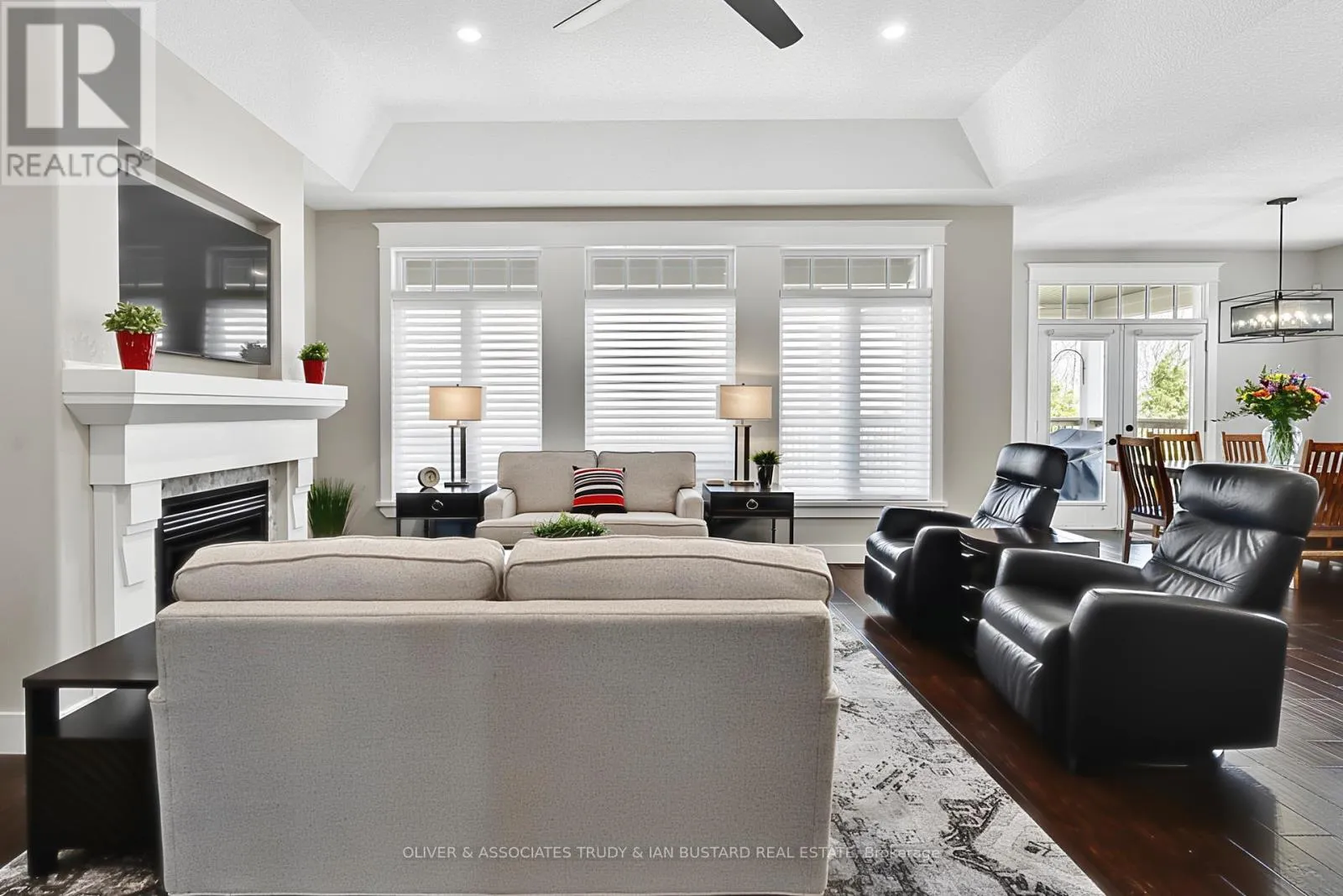 Cross Streets: Hayter Drive. ** Directions: Gill Rd to Hayter Drive turn left onto Erin Place. Welcome to this picture-perfect bungalow by Medway Homes, nestled in the prestigious Harbourside Village of Grand Bend. Just a short stroll to downtown shops, dining, and the beach, this exceptional home blends elegance, comfort, and effortless one-floor living. Offering over 2,800 sq ft of total finished space, the home features a bright, open-concept layout with tasteful, upscale finishes. The stunning custom kitchen serves as the heart of the home, boasting an oversized island, quartz countertops, and premium appliances. The main floor includes a convenient laundry room and a spacious primary suite. Extend your living space outdoors to the expansive deck, complete with a covered area and powered awning, overlooking a private, landscaped lot that backs onto serene woods. The fully finished lower level adds significant value, featuring a cozy family room with a gas fireplace, a wet bar, and additional versatile rooms perfect for guests or a home office. Practicality meets luxury with a massive attached garage, featuring a sink and direct walk-up access to the basement. Recent upgrades include a new poured concrete driveway and walkway, a sophisticated sprinkler system and a security system. Situated on a quiet, pie-shaped lot, this home offers the perfect balance of privacy and community, with local schools and the Old Ausable Channel just moments away. Experience the best of Grand Bend living in this meticulously maintained, move-in-ready residence. (id:27476)