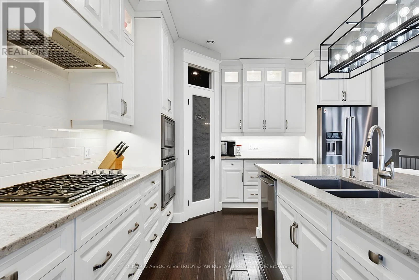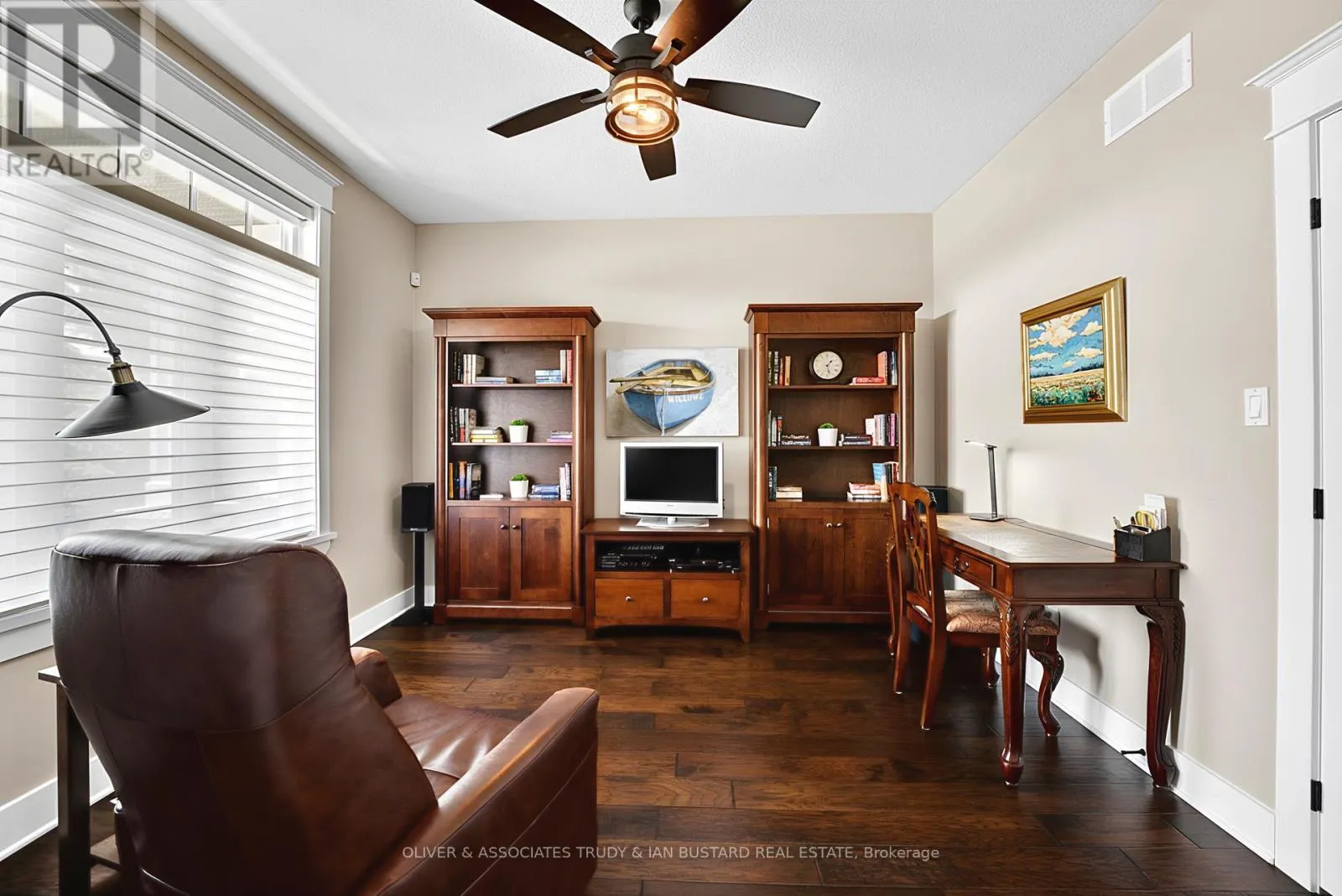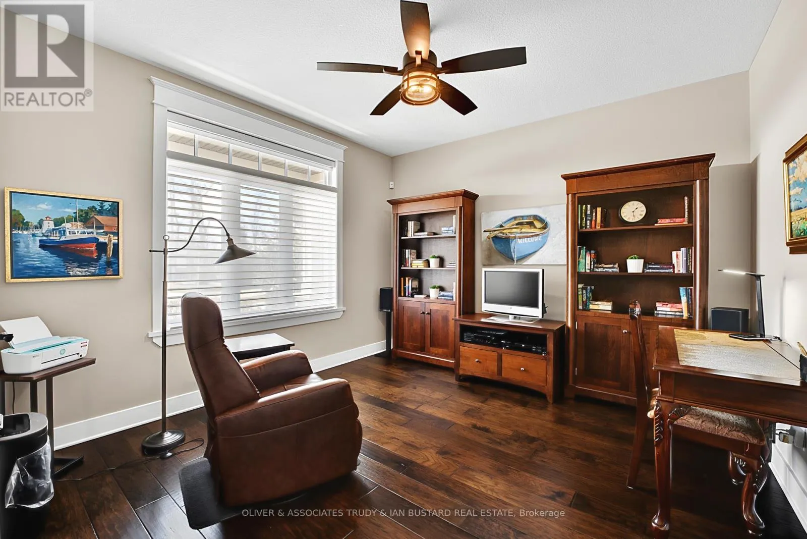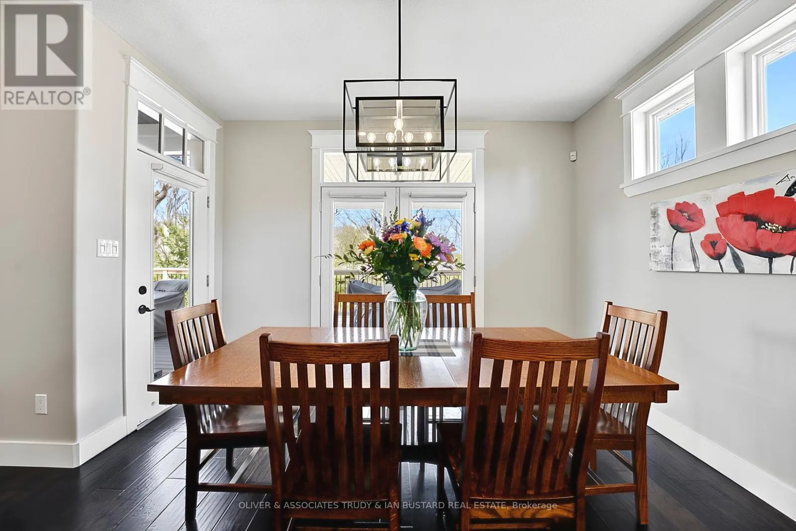 Cross Streets: Hayter Drive. ** Directions: Gill Rd to Hayter Drive turn left onto Erin Place. Welcome to this picture-perfect bungalow by Medway Homes, nestled in the prestigious Harbourside Village of Grand Bend. Just a short stroll to downtown shops, dining, and the beach, this exceptional home blends elegance, comfort, and effortless one-floor living. Offering over 2,800 sq ft of total finished space, the home features a bright, open-concept layout with tasteful, upscale finishes. The stunning custom kitchen serves as the heart of the home, boasting an oversized island, quartz countertops, and premium appliances. The main floor includes a convenient laundry room and a spacious primary suite. Extend your living space outdoors to the expansive deck, complete with a covered area and powered awning, overlooking a private, landscaped lot that backs onto serene woods. The fully finished lower level adds significant value, featuring a cozy family room with a gas fireplace, a wet bar, and additional versatile rooms perfect for guests or a home office. Practicality meets luxury with a massive attached garage, featuring a sink and direct walk-up access to the basement. Recent upgrades include a new poured concrete driveway and walkway, a sophisticated sprinkler system and a security system. Situated on a quiet, pie-shaped lot, this home offers the perfect balance of privacy and community, with local schools and the Old Ausable Channel just moments away. Experience the best of Grand Bend living in this meticulously maintained, move-in-ready residence. (id:27476)