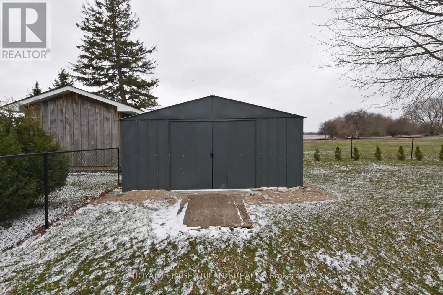 Cross Streets: ERIC AND WILLSIE. ** Directions: HWY 21 TP WALDEN RD, RIGHT ON WILLSIE LINE, LEFT ONTO ERIC ST. ONE FLOOR LIVING. Bungalow with 3 bedrooms, attached garage and large fenced yard. Backs onto an open field. Spacious eat-in kitchen with lots of cabinets, stainless appliances and a walkout to the rear deck (2018). Living room has a large window for natural light. Three good size bedrooms. (Primary has double closets). Main floor laundry. Four-piece bathroom with tub and shower. No carpet. Crawlspace has a concrete floor that extends the full size of the house. Gas furnace, C/A and HWT all new in 2020. Shingles (2019). New windows (2021). Paved driveway. Additional outdoor features include the covered front porch, awning for back deck, raised gardens and two sheds. There's community docking around the corner at the end of Prince Phillip Street, Walden Subdivision is located between Grand Bend and Port Franks close to restaurants, wineries, golf and beautiful Lake Huron. Check it out! (id:27476)