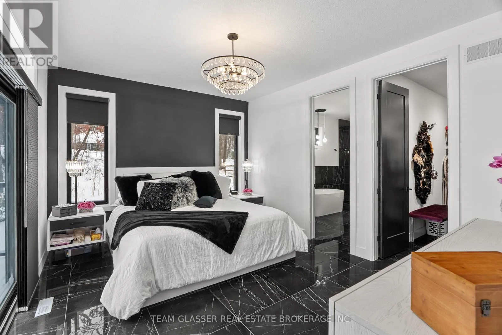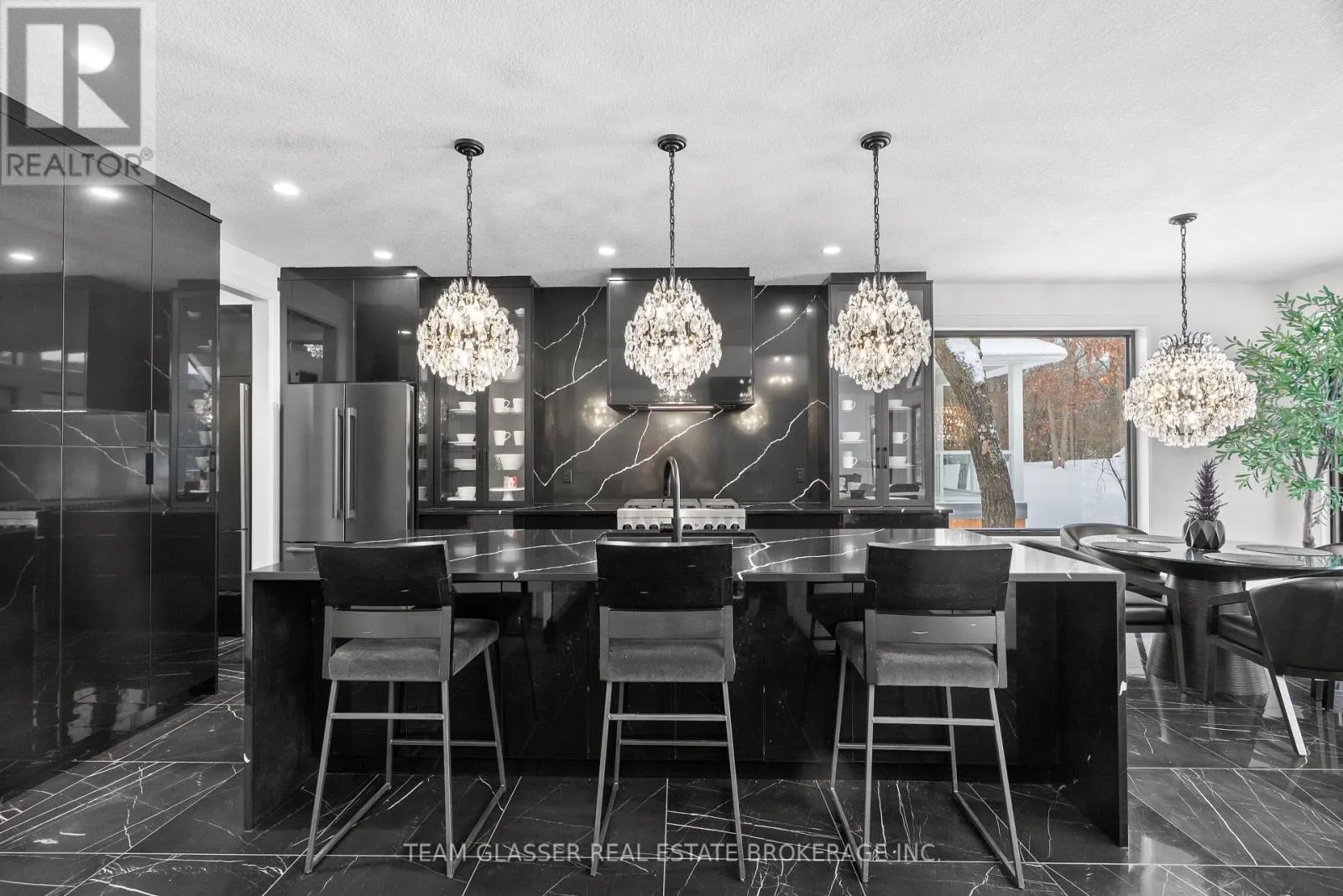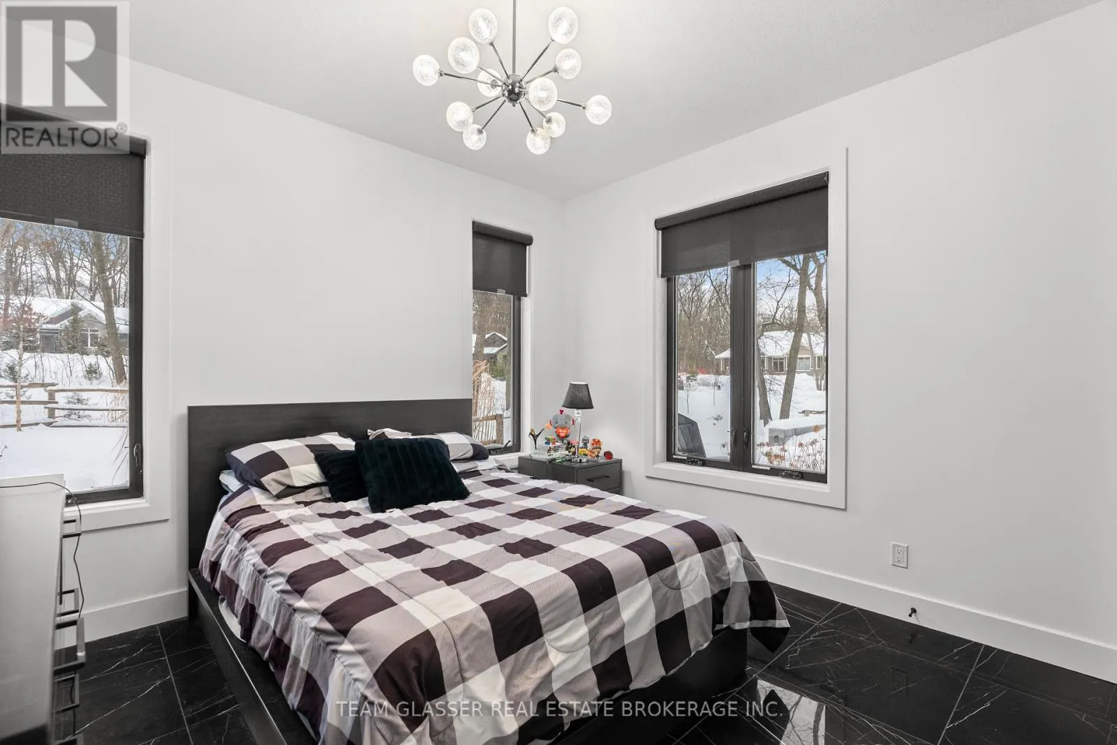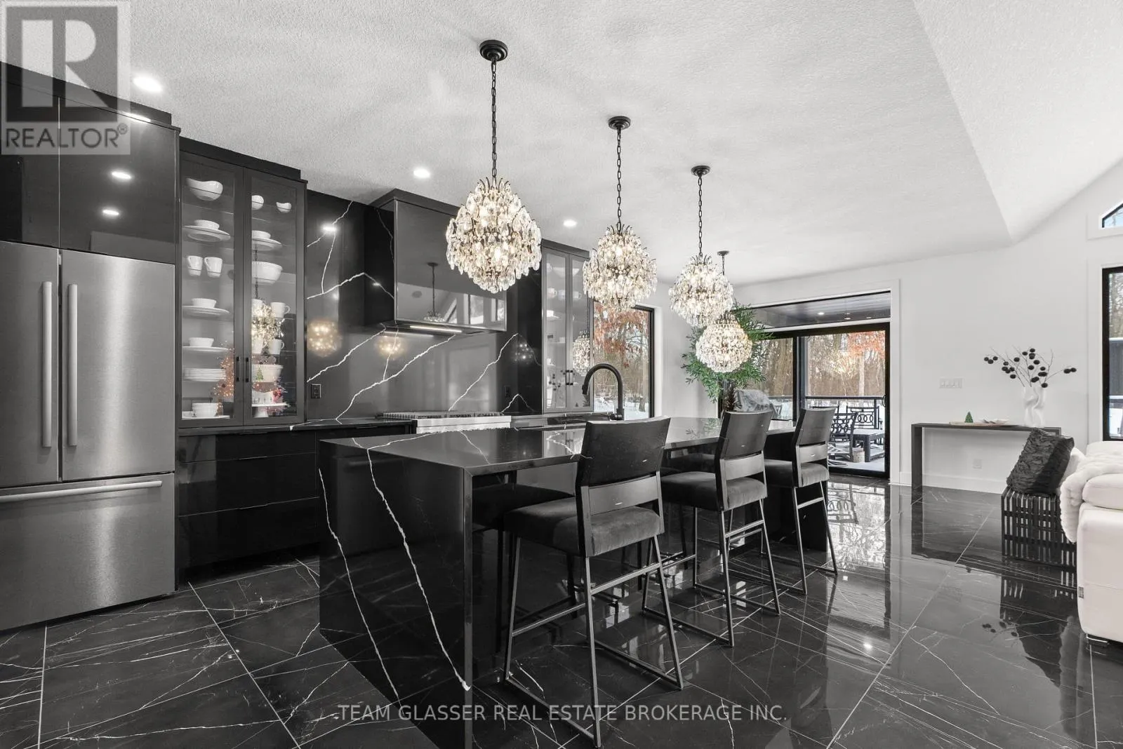 Cross Streets: LAKESHORE ROAD AND PINERY BLUFFS. ** Directions: FROM GRAND BEND TAKE LAKE SHORE ROAD (21) TO PINERY BLUFFS TURN RIGHT TRAVEL HALF WAY DOWN AND ITS ON THE RIGHT. Live the dream in this custom built 3000+ sq ft. stylized bungalow Nestled nicely on a gorgeously designed street, you'll find plenty of space inside and outside the home to enjoy. Professionally landscaped from front to back, with serenely large, relaxing patios, you can entertain in comfort outside or simply enjoy the peace and quiet that this expansive property offers. All of your necessities are catered to inside of course, with all of the most modern conveniences that you would want in a 4 bedroom home including its high end appliances, the butlers pantry/bar, open concept living room, 100 inch and 72 inch fireplaces and private dining room. Cleaning is made easy with the porcelain tile found throughout and modern touches adorn every living space. There's also plenty of storage and room for 3 cars in the garagE. Many finished rooms to be found off the lower level recroom which have been designed to match the decor of the entire home to entertain, work out, or have guests stay while keeping their privacy. There are many impressive touches here including in floor heating, media installations and demarcation. For a list of its treasures, please reach out to the listing agent. (id:27476)