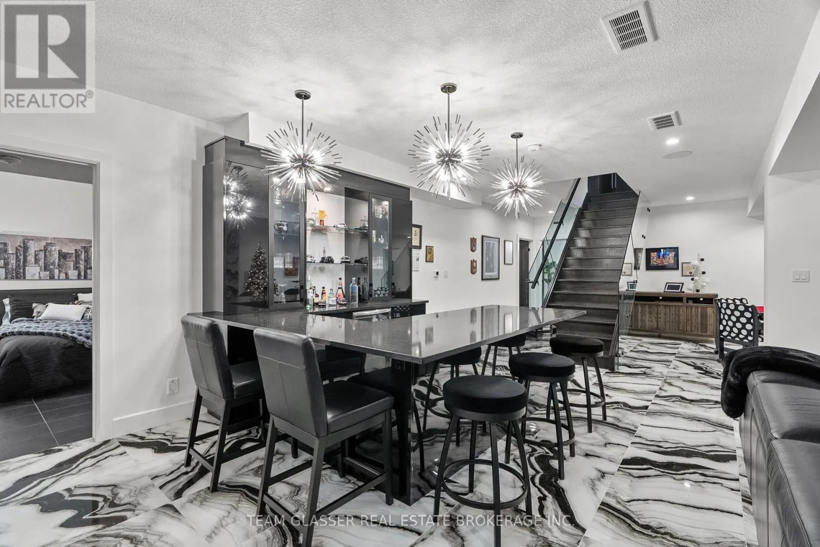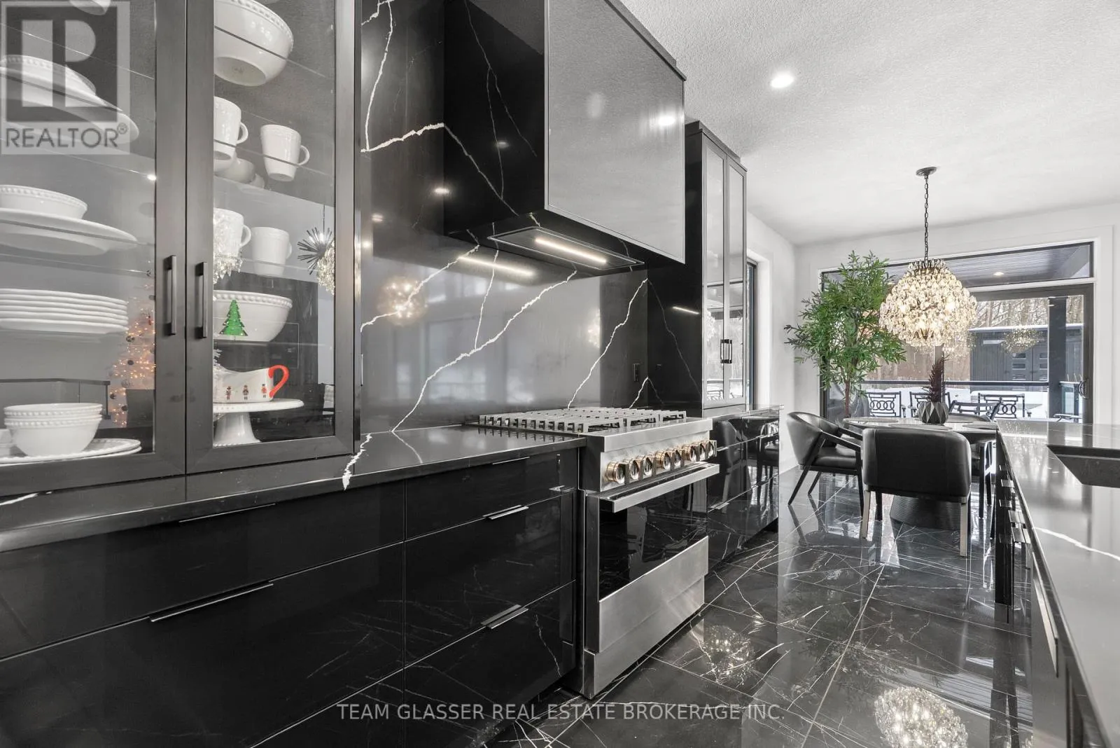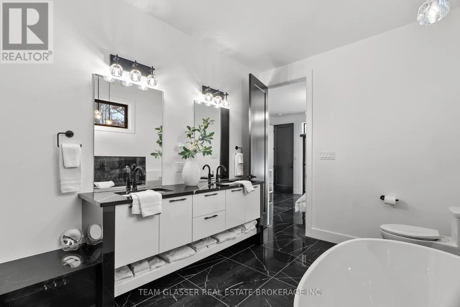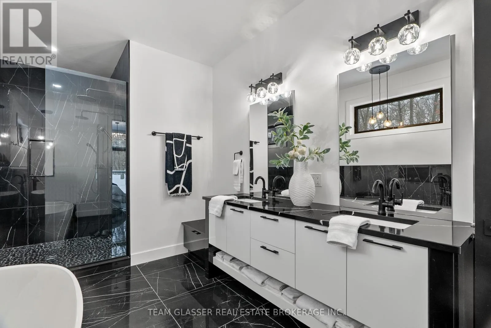 Cross Streets: LAKESHORE ROAD AND PINERY BLUFFS. ** Directions: FROM GRAND BEND TAKE LAKE SHORE ROAD (21) TO PINERY BLUFFS TURN RIGHT TRAVEL HALF WAY DOWN AND ITS ON THE RIGHT. Live the dream in this custom built 3000+ sq ft. stylized bungalow Nestled nicely on a gorgeously designed street, you'll find plenty of space inside and outside the home to enjoy. Professionally landscaped from front to back, with serenely large, relaxing patios, you can entertain in comfort outside or simply enjoy the peace and quiet that this expansive property offers. All of your necessities are catered to inside of course, with all of the most modern conveniences that you would want in a 4 bedroom home including its high end appliances, the butlers pantry/bar, open concept living room, 100 inch and 72 inch fireplaces and private dining room. Cleaning is made easy with the porcelain tile found throughout and modern touches adorn every living space. There's also plenty of storage and room for 3 cars in the garagE. Many finished rooms to be found off the lower level recroom which have been designed to match the decor of the entire home to entertain, work out, or have guests stay while keeping their privacy. There are many impressive touches here including in floor heating, media installations and demarcation. For a list of its treasures, please reach out to the listing agent. (id:27476)