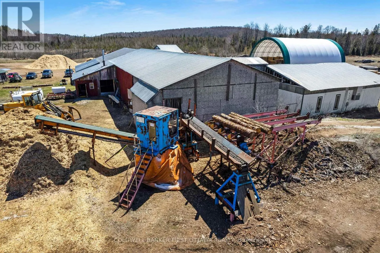 Hwy 511 Fully operational sawmill located in the heart of the milling district in Lanark Highlands. Established in 2002 with addition added in 2007, this exceptional turnkey business is well-maintained with 6,400 sq ft footprint on 20 acres along major highway for easy access. The property offers ample space for future expansion and is perfectly positioned for logistical efficiency. The sale includes all necessary equipment and infrastructure to continue operations seamlessly, providing a profitable turnkey business opportunity. Currently operating Monday through Thursday. Located in a prime industrial zone, the business benefits from quick access to key transportation routes and proximity to local suppliers and buyers. With room for growth and potential for diversification, this sawmill presents a rare opportunity to invest in a stable, well-respected business in the region. Approx 10 mins to Lanark; 40 mins Perth or 50 mins Ottawa (id:27476)