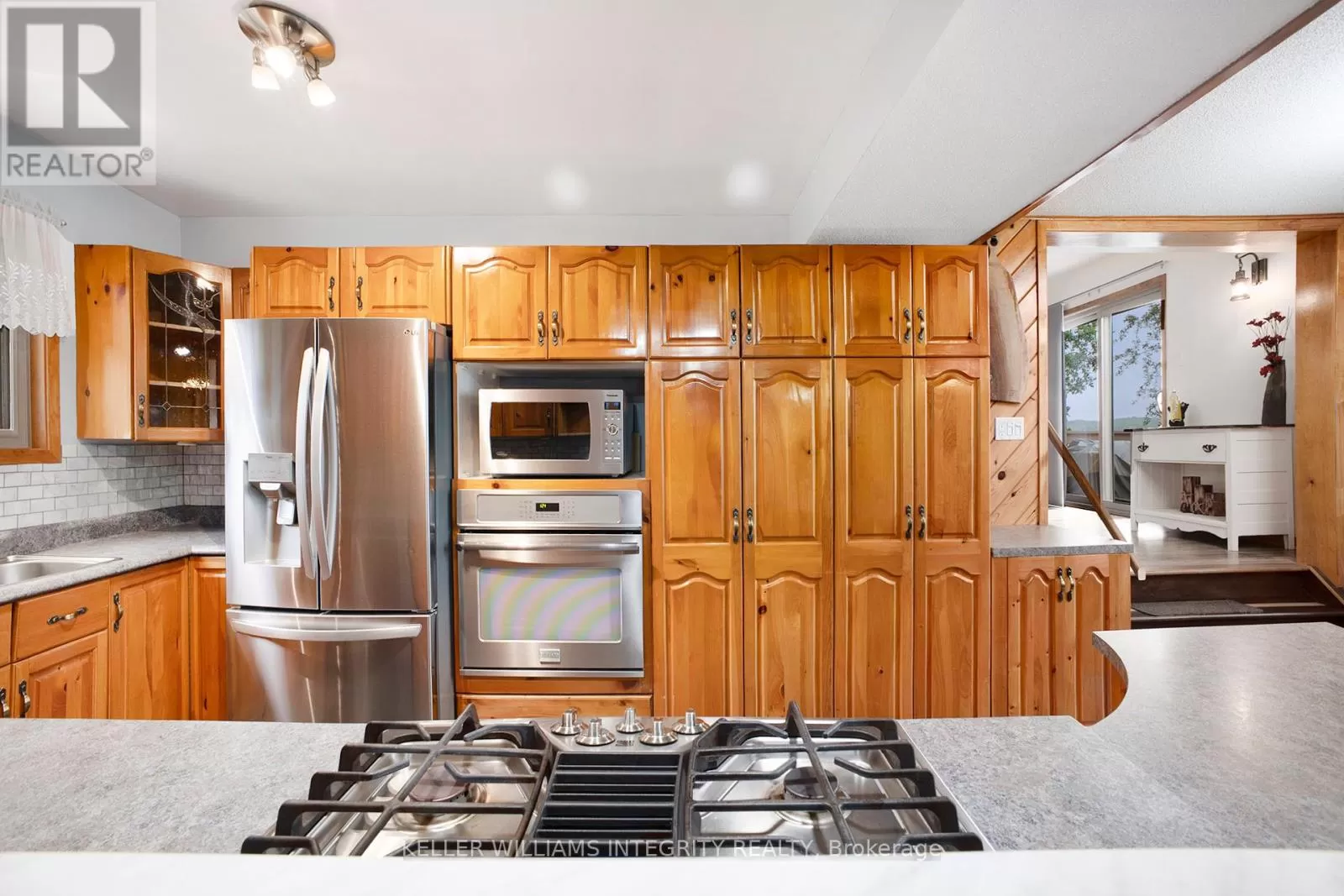 Cross Streets: Maple Hollow Dr to Stewart Lane. ** Directions: Watson's Corners Rd, Right onto Dalhousie 9th Concession , Left onto Maple Hollow Dr, Left onto Stewart Lane. Price IMPROVED: $699,000!! Welcome to 501 Stewart Lane located on the serene Dalhousie Lake. You have breathtaking views of the lake from both levels of this incredible home. Enjoy outdoor dining on the 16'x16' deck, perfect for large gatherings, or sit and unwind after a long day with a cool drink and enjoy the refreshing breeze off the water and beautiful sunsets. As you enter the home, you are welcomed into the open concept kitchen & dining areas. The warmth of the dining area invites you in with its cozy woodstove for cooler nights. The dining area also provides access to a covered deck that overlooks the lake. The kitchen has loads of storage and plenty of counter space as well as SS appliances. Adjacent to the kitchen is the generously sized living room with sliding doors to the oversized deck overlooking the water and a smaller deck overlooking the backyard. In addition, you have a well-appointed 3 pc bath on the main level. Upstairs, you have the primary bedroom with access to the balcony, where again you have views of the lake. You have 2 additional bedrooms on this level as well as a tastefully updated 4 pc bath with laundry. The lower level is home to a large family room that has a Murphy bed for when you have extra guests. You also have a huge utility/storage area and a walk-out. Outside, there is a handy self-contained outdoor shower with both hot & cold water. The one-car garage has a loft that could be utilized as a home office or a possible rental - garage & loft has hydro & is fully insulated. There is also a balcony for the loft, which also provides views of the water. The property comes with a boat ramp so you can cruise the lake. If you are looking for that exceptional property on the water, then welcome home. (id:27476)