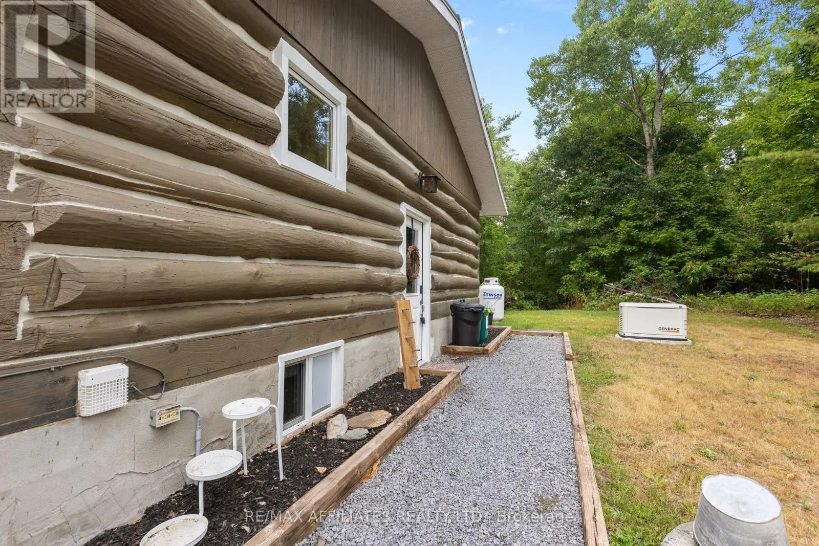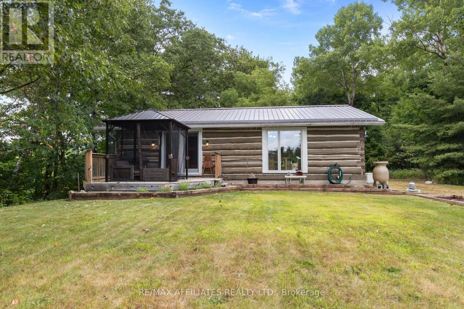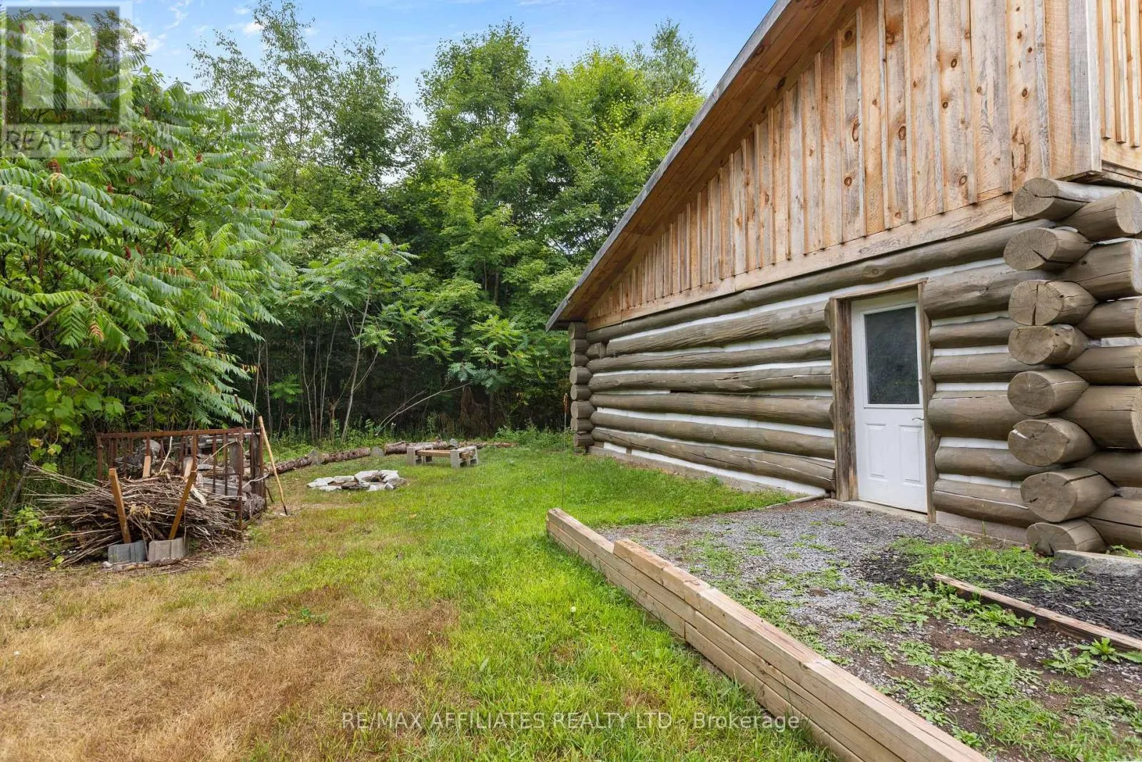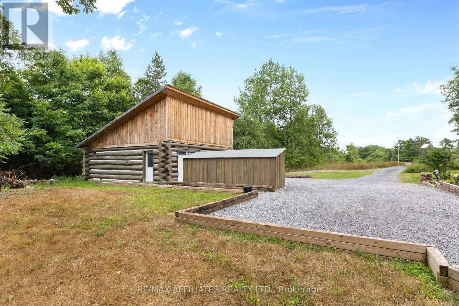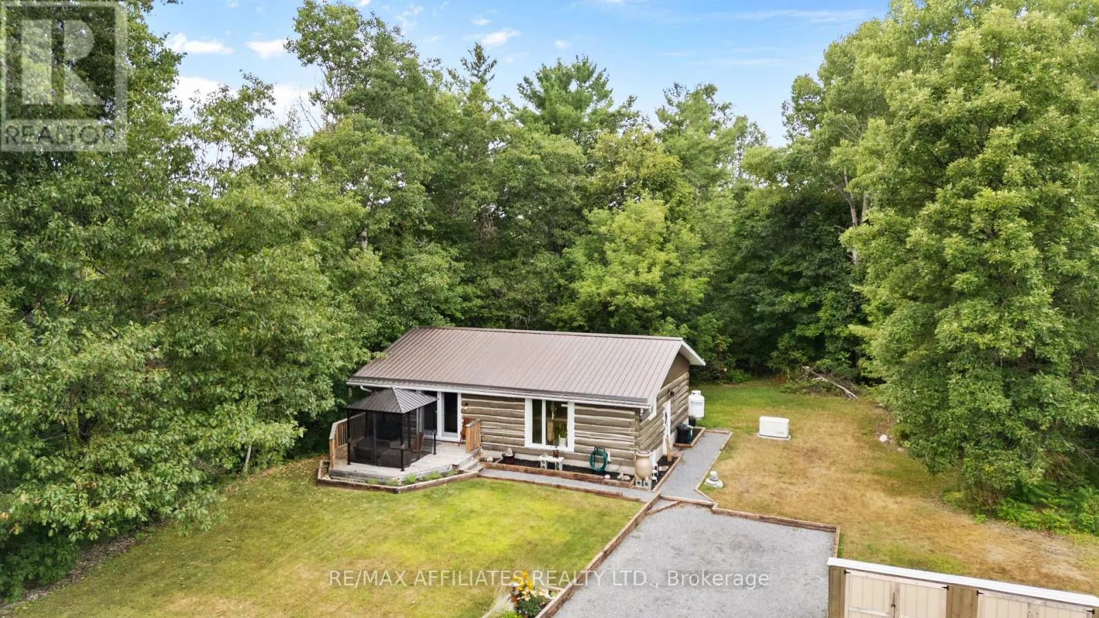 Cross Streets: Hwy 511 and French Line Rd. ** Directions: On Hwy 7 turn right onto Tatlock Rd, left onto Wolf Grove Rd, Turn right onto County Rd 511 and turn left onto the French Line. "There is no remedy for love but to love more." - Thoreau. One might say the same about country living: once you've had a taste of it, you'll only want more. Tucked on just over 11 acres of trees, trails, and endless fresh air, this 2-bedroom, 1 bath log bungalow is as charming as it is practical - an irresistible mix of rustic character and modern updates.From the outside, you'll notice the handiwork of Keeley Log (2023), where the home's logs were painstakingly refinished and rechinked - preserving that timeless warm aesthetic while ensuring decades of durability. Recent investments make this property worry-free: a metal roof (2021), furnace (2021), AC (2024), windows (2024/25), and a whole-home generator (2023) stand ready for peace of mind in all seasons. Starlink internet keeps you connected, though you might prefer to disconnect as you wander the private trails winding through your own forest - a foragers dreamscape of wild berries, mushrooms, and quiet discovery. Inside, the style is delightfully quirky, mixing the rustic backdrop of logs with thoughtful modern comforts. The kitchen, updated with induction cooktop, double oven, and 2024 appliances, invites both experimentation and family feasts. The unfinished basement, already boasting a walkout door, offers ample potential: imagine a guest suite, studio, or workshop carved into the space. Step outside to the deck, shaded with a gazebo. Out the back of the house, you overlook a backdrop of no rear neighbours - only the hush of nature. Two storage sheds and an oversized two-car detached garage (built c.2010) ensure room for tools, toys, and projects. This is not just a home but a lifestyle: woodsy solitude paired with comfort, adventure paired with ease. A place where you can follow a winding trail, then return to the glow of the log walls and the hum of modern convenience. (id:27476)