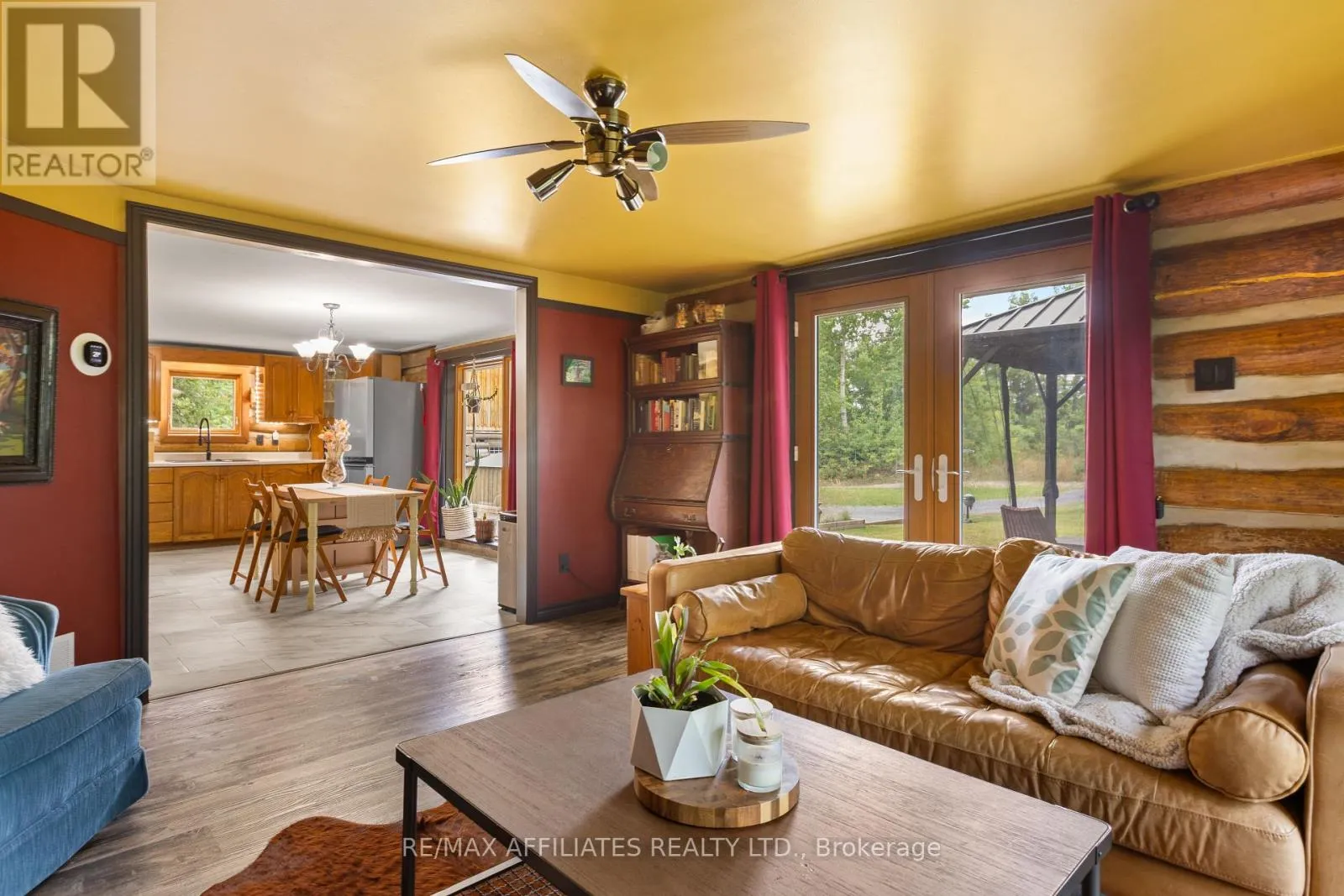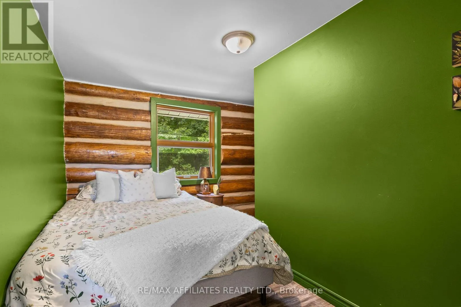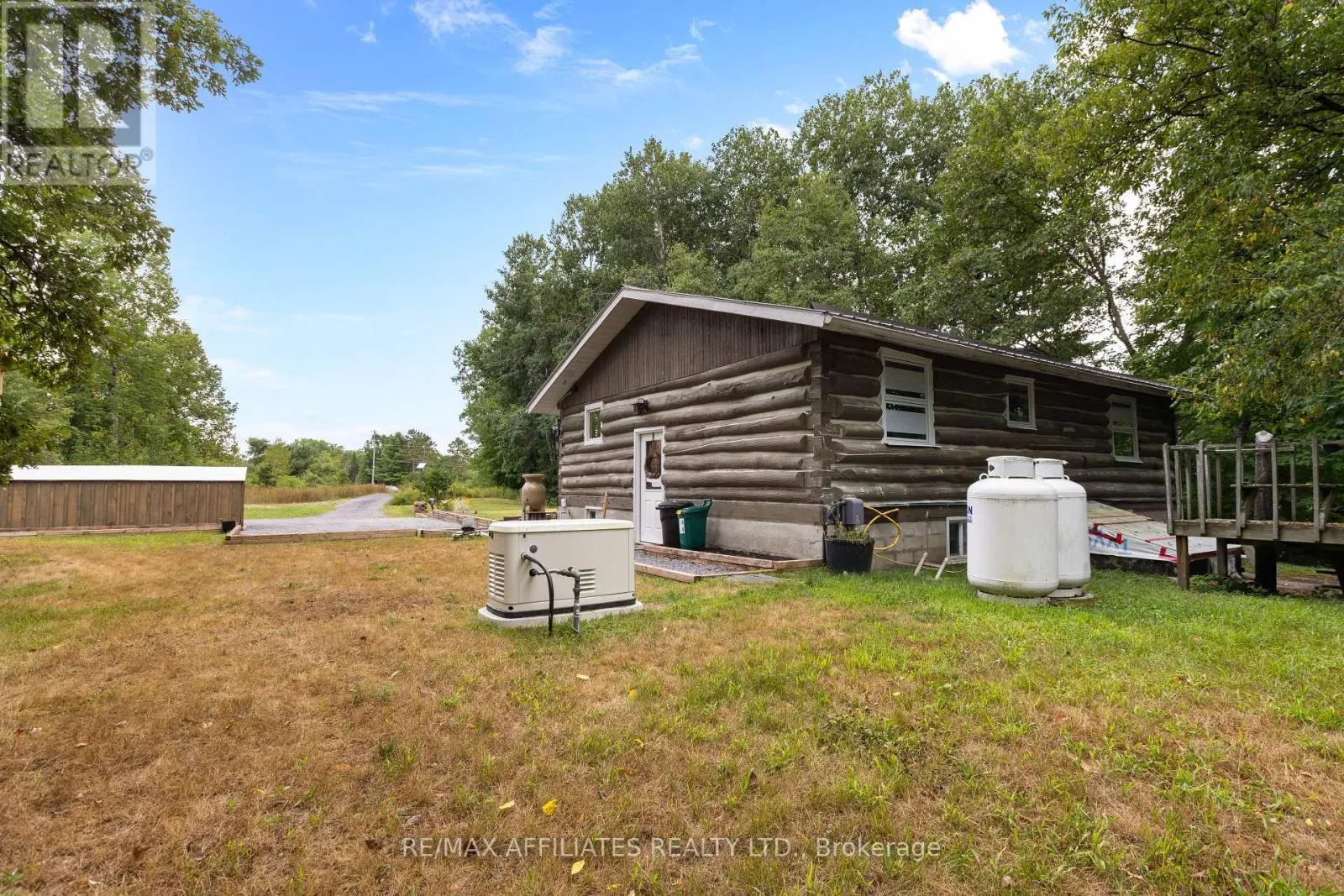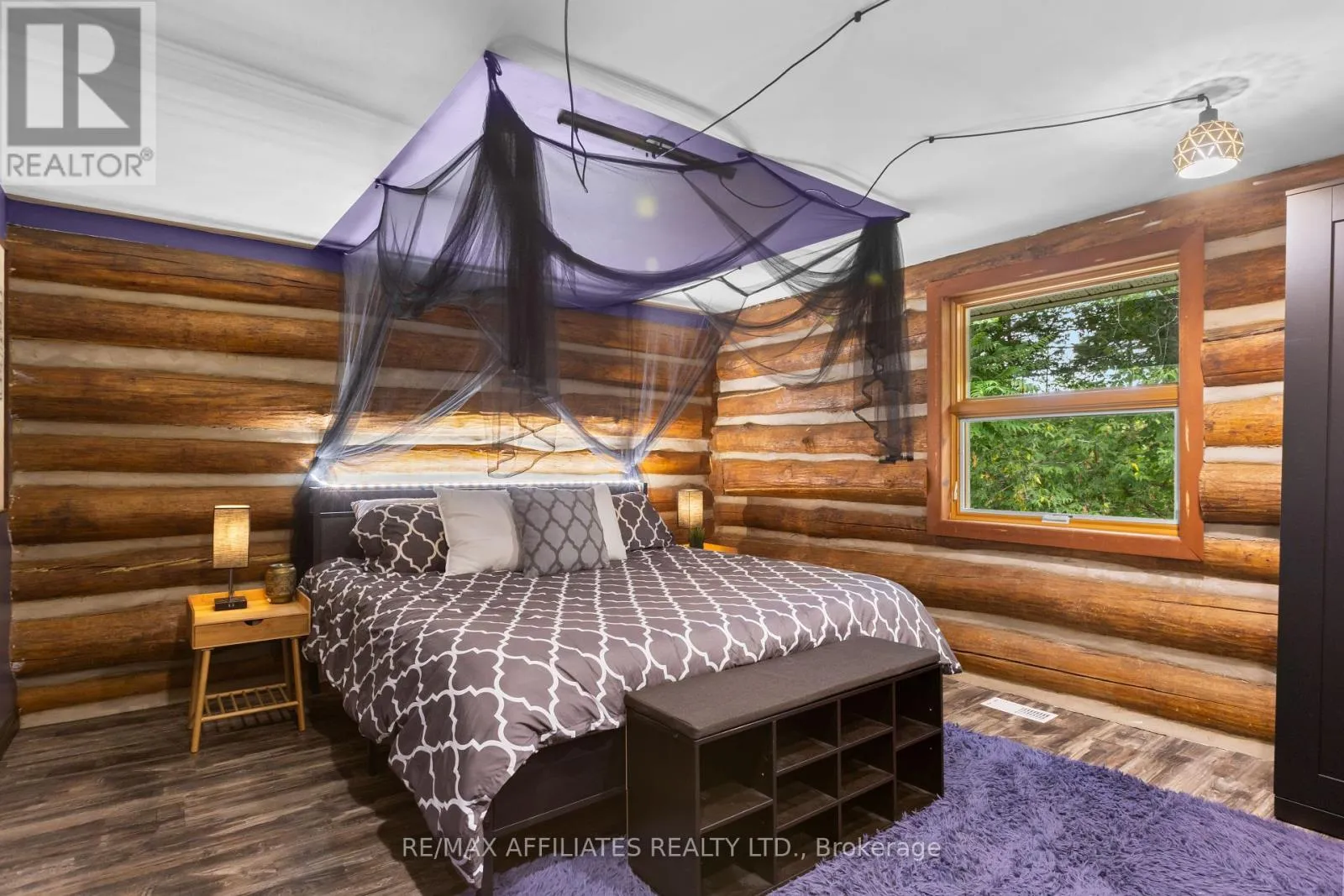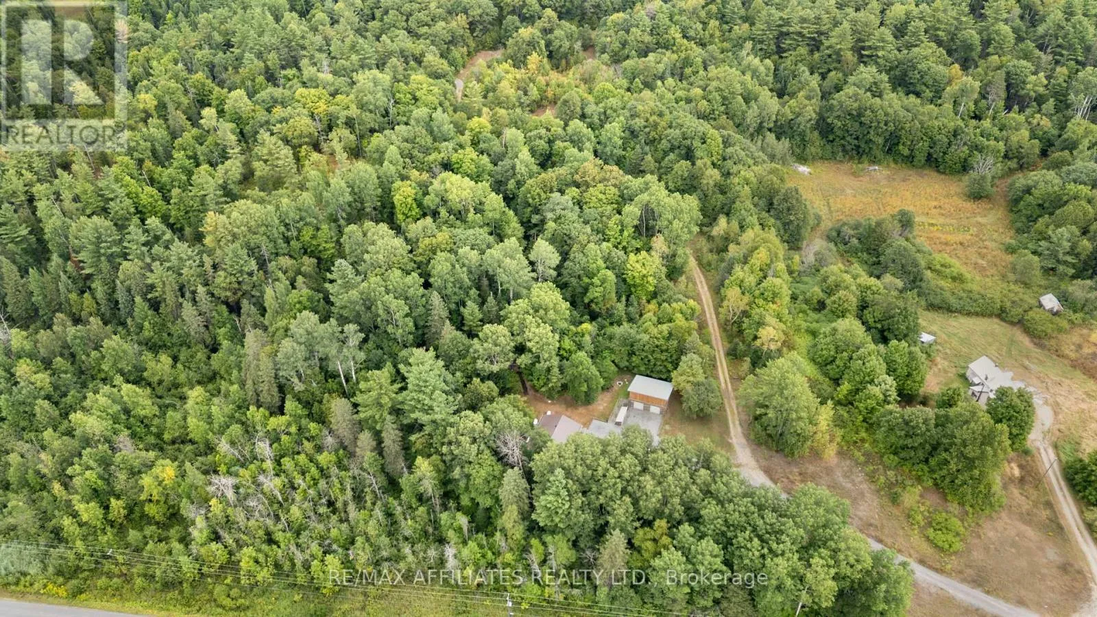 Cross Streets: Hwy 511 and French Line Rd. ** Directions: On Hwy 7 turn right onto Tatlock Rd, left onto Wolf Grove Rd, Turn right onto County Rd 511 and turn left onto the French Line. "There is no remedy for love but to love more." - Thoreau. One might say the same about country living: once you've had a taste of it, you'll only want more. Tucked on just over 11 acres of trees, trails, and endless fresh air, this 2-bedroom, 1 bath log bungalow is as charming as it is practical - an irresistible mix of rustic character and modern updates.From the outside, you'll notice the handiwork of Keeley Log (2023), where the home's logs were painstakingly refinished and rechinked - preserving that timeless warm aesthetic while ensuring decades of durability. Recent investments make this property worry-free: a metal roof (2021), furnace (2021), AC (2024), windows (2024/25), and a whole-home generator (2023) stand ready for peace of mind in all seasons. Starlink internet keeps you connected, though you might prefer to disconnect as you wander the private trails winding through your own forest - a foragers dreamscape of wild berries, mushrooms, and quiet discovery. Inside, the style is delightfully quirky, mixing the rustic backdrop of logs with thoughtful modern comforts. The kitchen, updated with induction cooktop, double oven, and 2024 appliances, invites both experimentation and family feasts. The unfinished basement, already boasting a walkout door, offers ample potential: imagine a guest suite, studio, or workshop carved into the space. Step outside to the deck, shaded with a gazebo. Out the back of the house, you overlook a backdrop of no rear neighbours - only the hush of nature. Two storage sheds and an oversized two-car detached garage (built c.2010) ensure room for tools, toys, and projects. This is not just a home but a lifestyle: woodsy solitude paired with comfort, adventure paired with ease. A place where you can follow a winding trail, then return to the glow of the log walls and the hum of modern convenience. (id:27476)