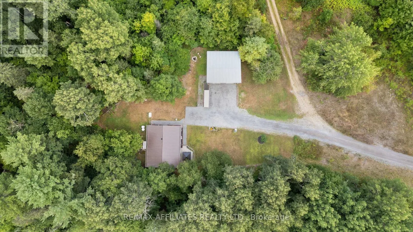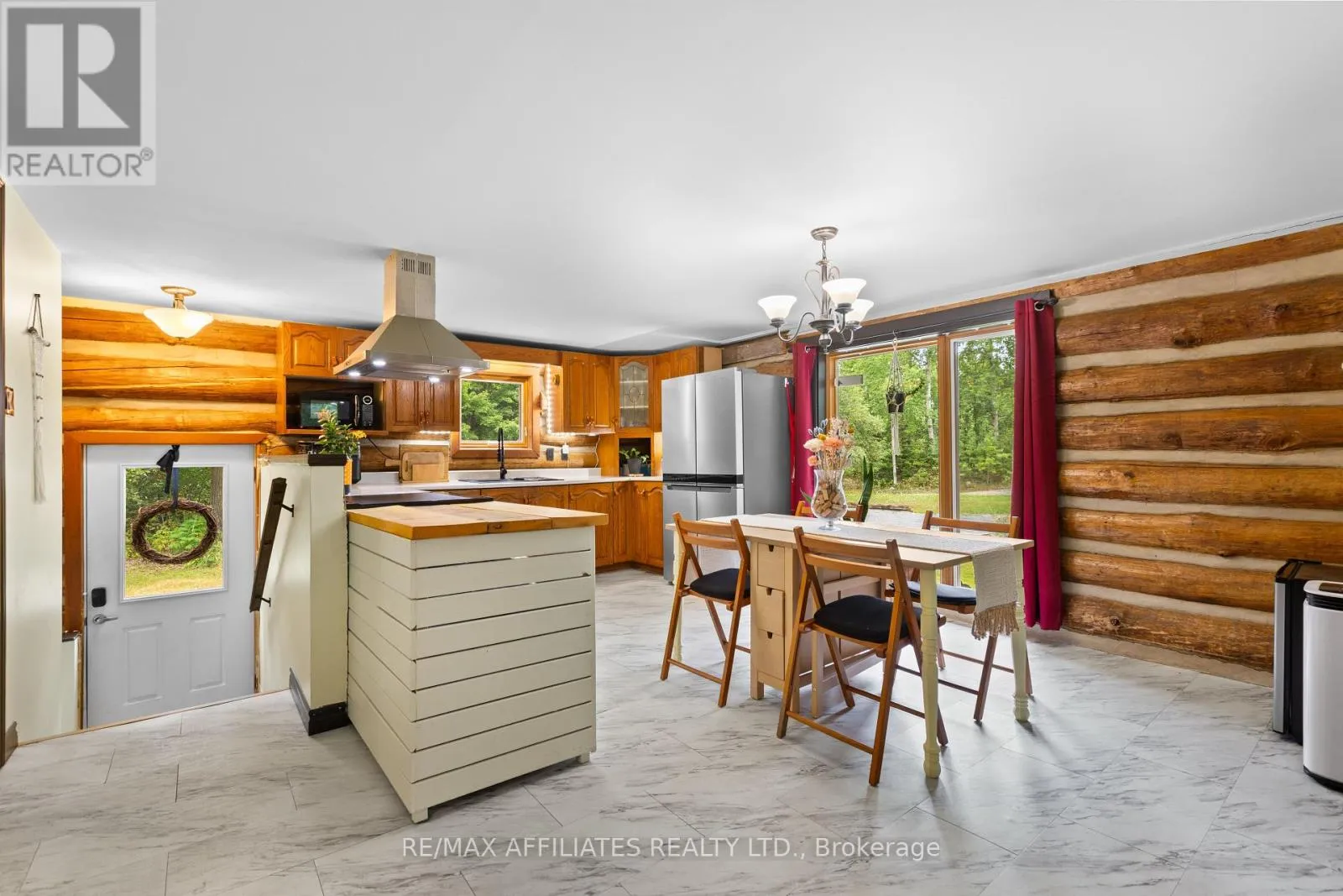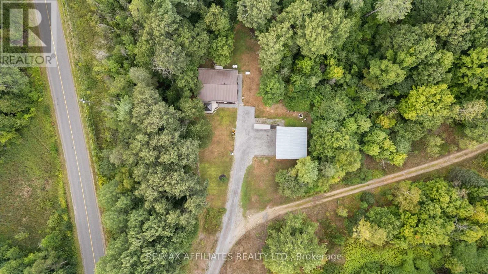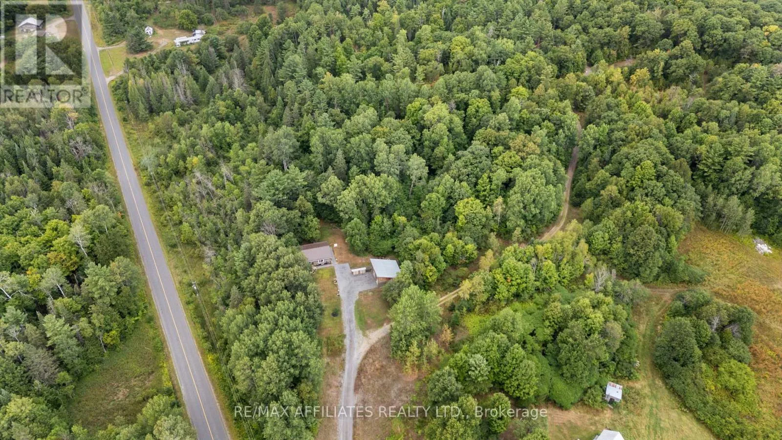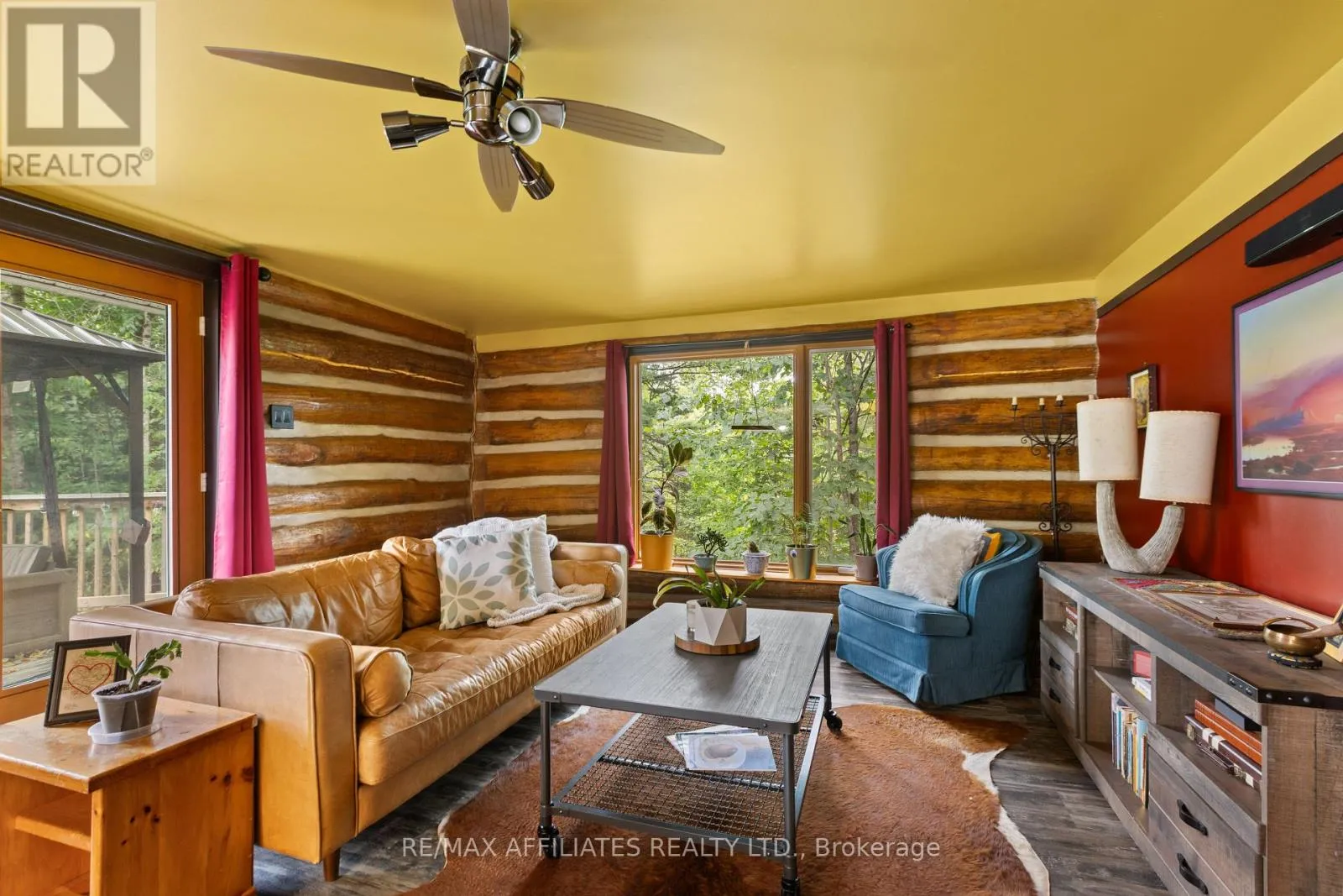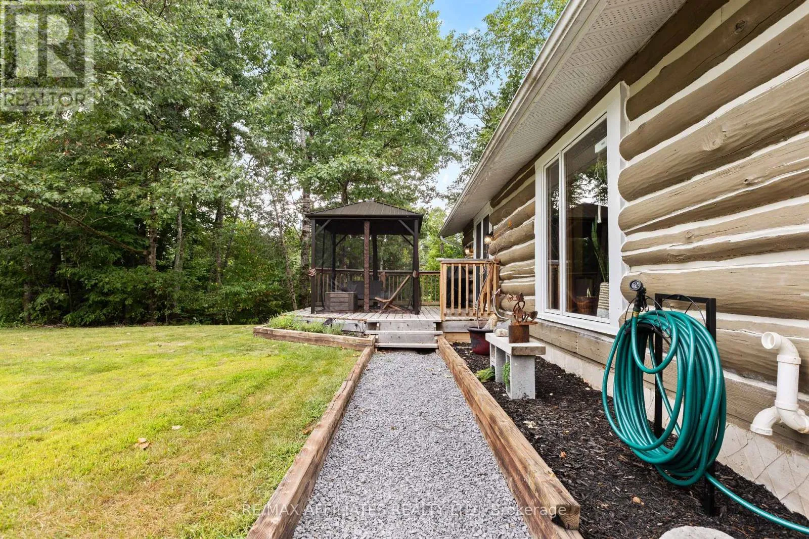 Cross Streets: Hwy 511 and French Line Rd. ** Directions: On Hwy 7 turn right onto Tatlock Rd, left onto Wolf Grove Rd, Turn right onto County Rd 511 and turn left onto the French Line. "There is no remedy for love but to love more." - Thoreau. One might say the same about country living: once you've had a taste of it, you'll only want more. Tucked on just over 11 acres of trees, trails, and endless fresh air, this 2-bedroom, 1 bath log bungalow is as charming as it is practical - an irresistible mix of rustic character and modern updates.From the outside, you'll notice the handiwork of Keeley Log (2023), where the home's logs were painstakingly refinished and rechinked - preserving that timeless warm aesthetic while ensuring decades of durability. Recent investments make this property worry-free: a metal roof (2021), furnace (2021), AC (2024), windows (2024/25), and a whole-home generator (2023) stand ready for peace of mind in all seasons. Starlink internet keeps you connected, though you might prefer to disconnect as you wander the private trails winding through your own forest - a foragers dreamscape of wild berries, mushrooms, and quiet discovery. Inside, the style is delightfully quirky, mixing the rustic backdrop of logs with thoughtful modern comforts. The kitchen, updated with induction cooktop, double oven, and 2024 appliances, invites both experimentation and family feasts. The unfinished basement, already boasting a walkout door, offers ample potential: imagine a guest suite, studio, or workshop carved into the space. Step outside to the deck, shaded with a gazebo. Out the back of the house, you overlook a backdrop of no rear neighbours - only the hush of nature. Two storage sheds and an oversized two-car detached garage (built c.2010) ensure room for tools, toys, and projects. This is not just a home but a lifestyle: woodsy solitude paired with comfort, adventure paired with ease. A place where you can follow a winding trail, then return to the glow of the log walls and the hum of modern convenience. (id:27476)