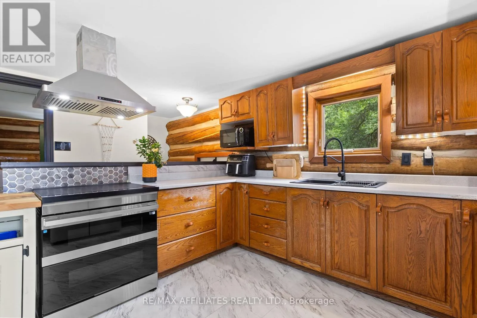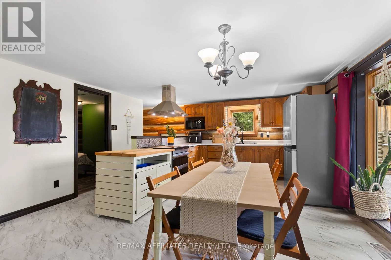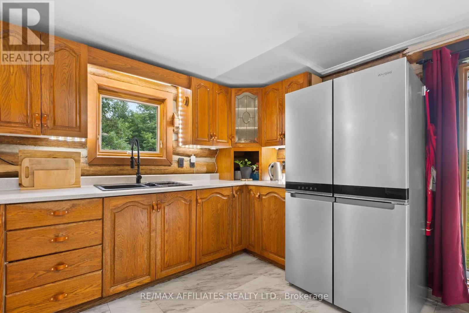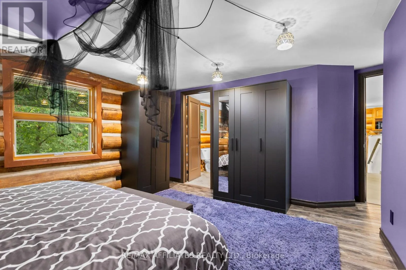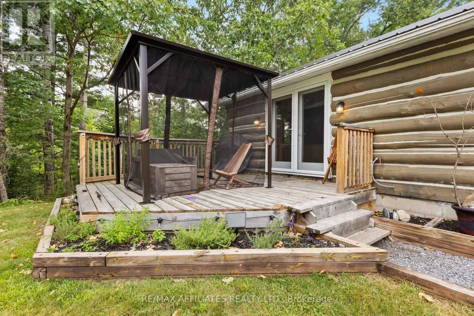 Cross Streets: Hwy 511 and French Line Rd. ** Directions: On Hwy 7 turn right onto Tatlock Rd, left onto Wolf Grove Rd, Turn right onto County Rd 511 and turn left onto the French Line. "There is no remedy for love but to love more." - Thoreau. One might say the same about country living: once you've had a taste of it, you'll only want more. Tucked on just over 11 acres of trees, trails, and endless fresh air, this 2-bedroom, 1 bath log bungalow is as charming as it is practical - an irresistible mix of rustic character and modern updates.From the outside, you'll notice the handiwork of Keeley Log (2023), where the home's logs were painstakingly refinished and rechinked - preserving that timeless warm aesthetic while ensuring decades of durability. Recent investments make this property worry-free: a metal roof (2021), furnace (2021), AC (2024), windows (2024/25), and a whole-home generator (2023) stand ready for peace of mind in all seasons. Starlink internet keeps you connected, though you might prefer to disconnect as you wander the private trails winding through your own forest - a foragers dreamscape of wild berries, mushrooms, and quiet discovery. Inside, the style is delightfully quirky, mixing the rustic backdrop of logs with thoughtful modern comforts. The kitchen, updated with induction cooktop, double oven, and 2024 appliances, invites both experimentation and family feasts. The unfinished basement, already boasting a walkout door, offers ample potential: imagine a guest suite, studio, or workshop carved into the space. Step outside to the deck, shaded with a gazebo. Out the back of the house, you overlook a backdrop of no rear neighbours - only the hush of nature. Two storage sheds and an oversized two-car detached garage (built c.2010) ensure room for tools, toys, and projects. This is not just a home but a lifestyle: woodsy solitude paired with comfort, adventure paired with ease. A place where you can follow a winding trail, then return to the glow of the log walls and the hum of modern convenience. (id:27476)