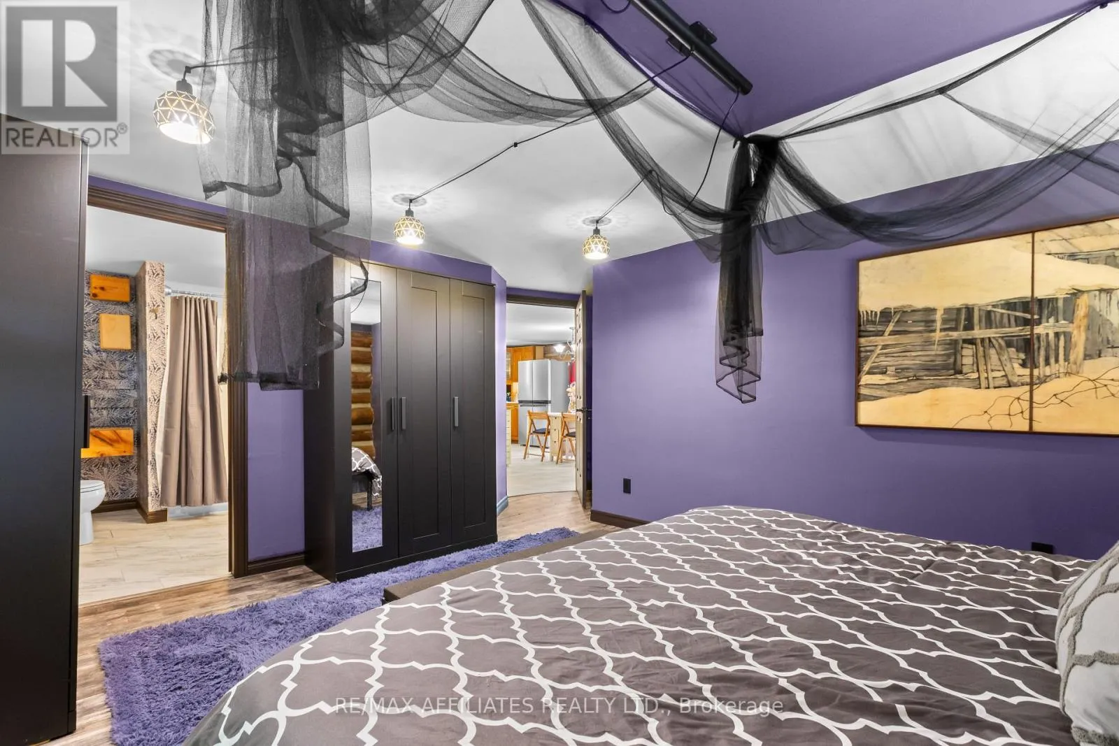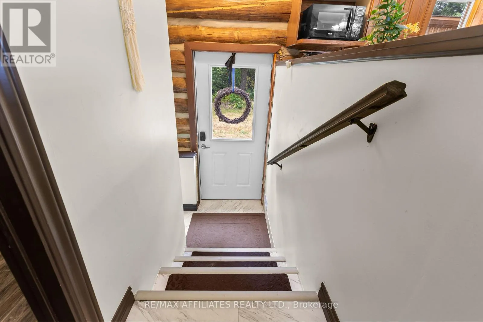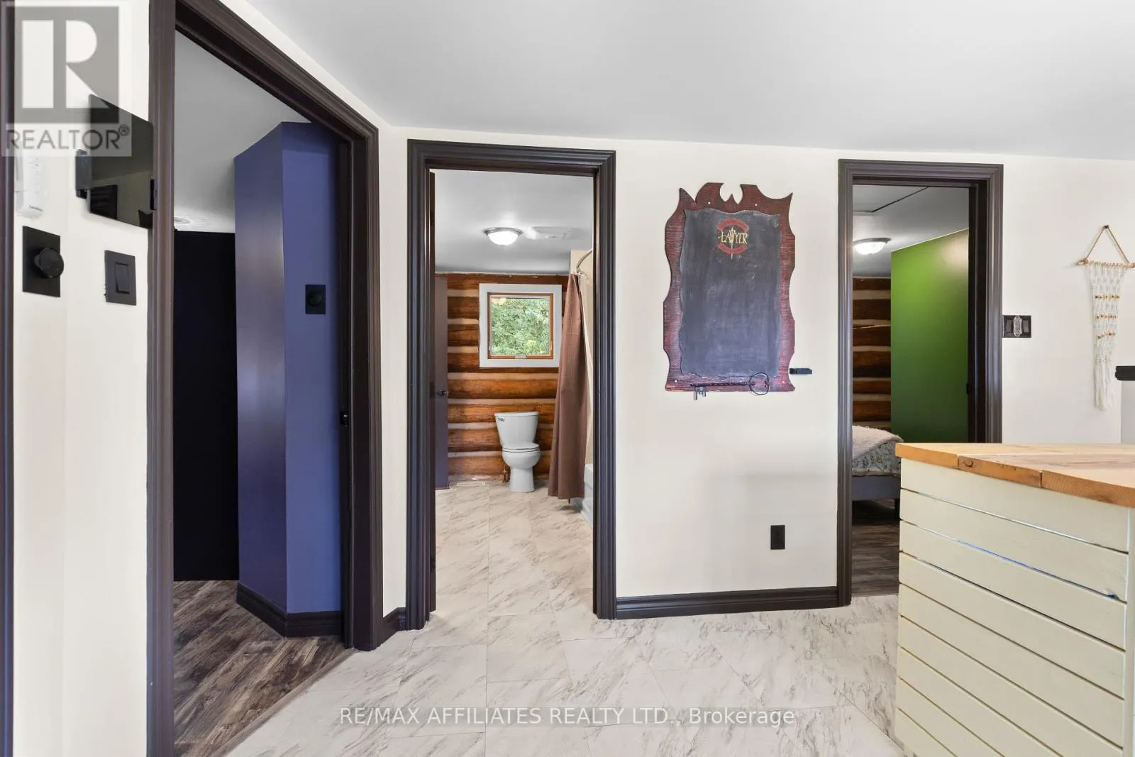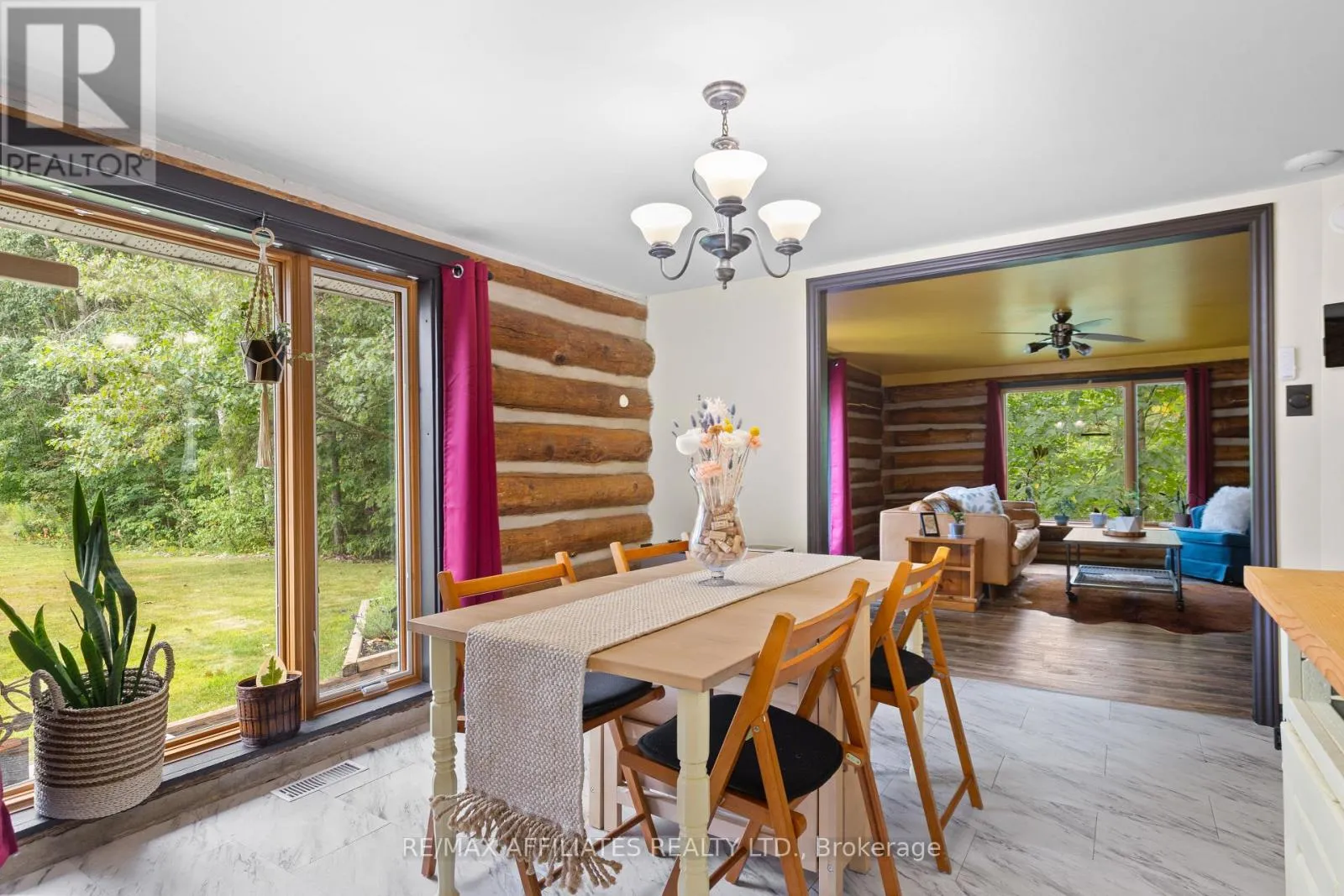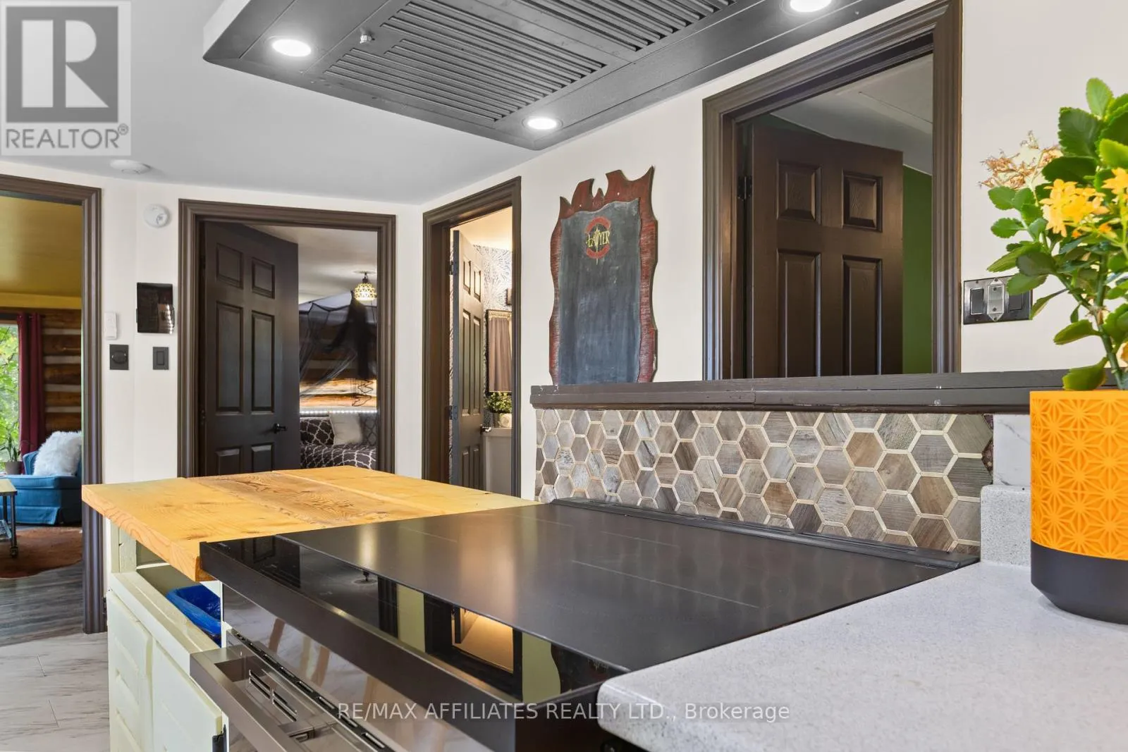 Cross Streets: Hwy 511 and French Line Rd. ** Directions: On Hwy 7 turn right onto Tatlock Rd, left onto Wolf Grove Rd, Turn right onto County Rd 511 and turn left onto the French Line. "There is no remedy for love but to love more." - Thoreau. One might say the same about country living: once you've had a taste of it, you'll only want more. Tucked on just over 11 acres of trees, trails, and endless fresh air, this 2-bedroom, 1 bath log bungalow is as charming as it is practical - an irresistible mix of rustic character and modern updates.From the outside, you'll notice the handiwork of Keeley Log (2023), where the home's logs were painstakingly refinished and rechinked - preserving that timeless warm aesthetic while ensuring decades of durability. Recent investments make this property worry-free: a metal roof (2021), furnace (2021), AC (2024), windows (2024/25), and a whole-home generator (2023) stand ready for peace of mind in all seasons. Starlink internet keeps you connected, though you might prefer to disconnect as you wander the private trails winding through your own forest - a foragers dreamscape of wild berries, mushrooms, and quiet discovery. Inside, the style is delightfully quirky, mixing the rustic backdrop of logs with thoughtful modern comforts. The kitchen, updated with induction cooktop, double oven, and 2024 appliances, invites both experimentation and family feasts. The unfinished basement, already boasting a walkout door, offers ample potential: imagine a guest suite, studio, or workshop carved into the space. Step outside to the deck, shaded with a gazebo. Out the back of the house, you overlook a backdrop of no rear neighbours - only the hush of nature. Two storage sheds and an oversized two-car detached garage (built c.2010) ensure room for tools, toys, and projects. This is not just a home but a lifestyle: woodsy solitude paired with comfort, adventure paired with ease. A place where you can follow a winding trail, then return to the glow of the log walls and the hum of modern convenience. (id:27476)