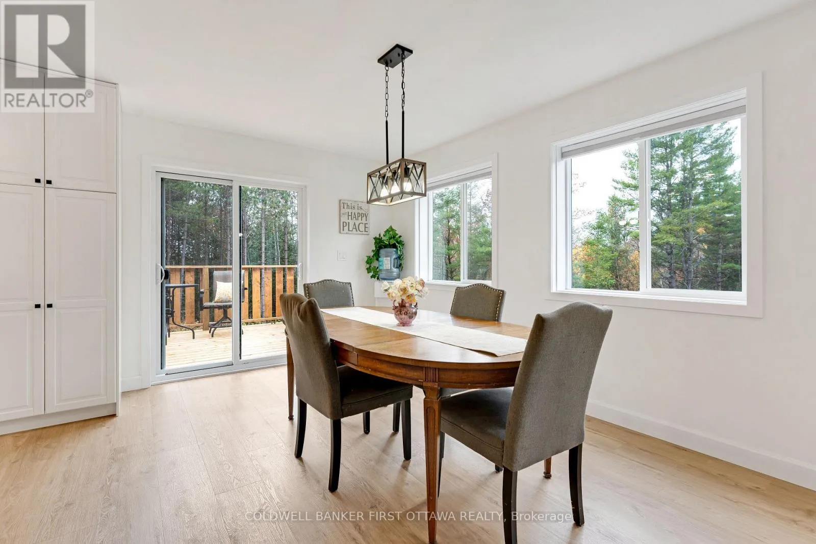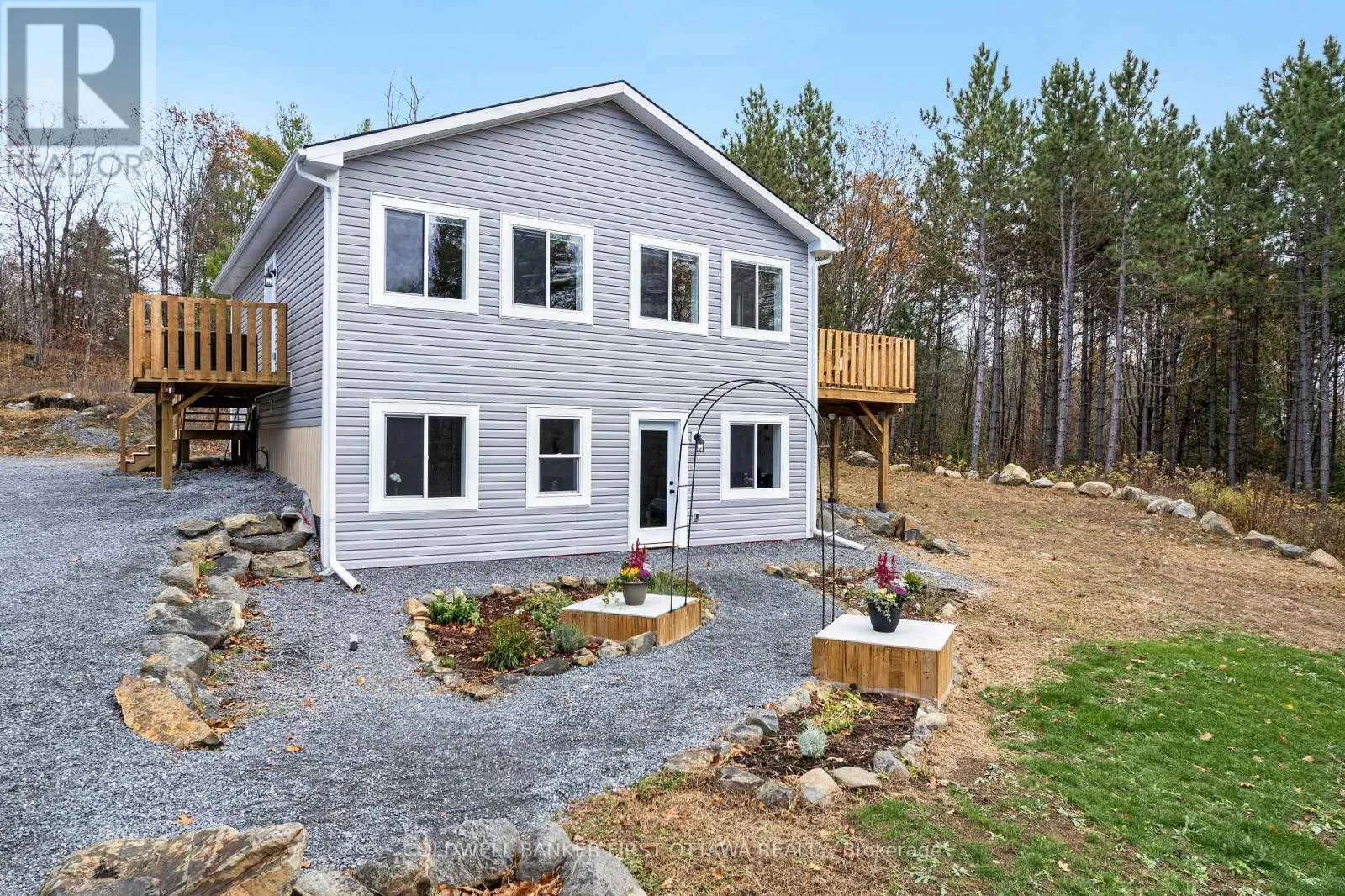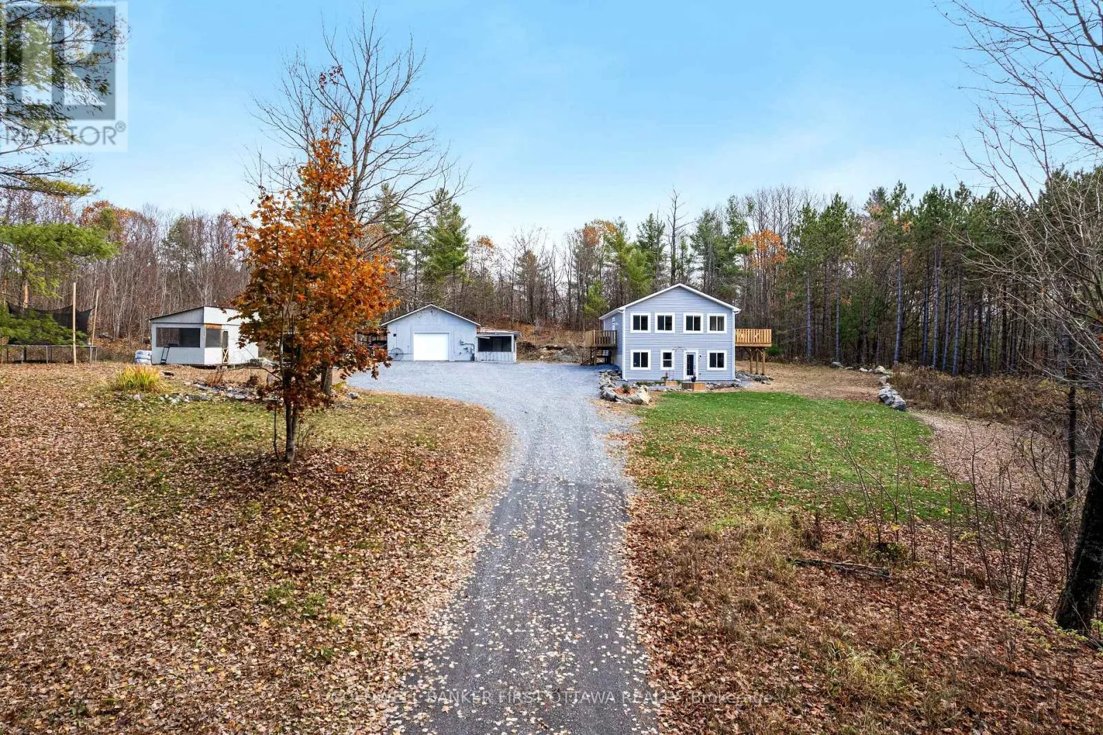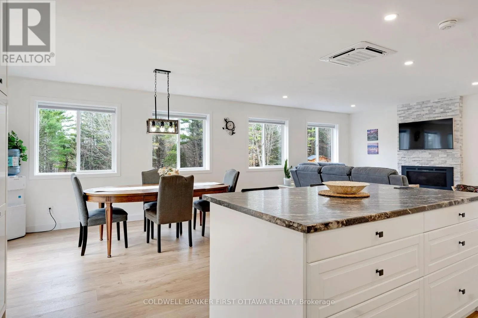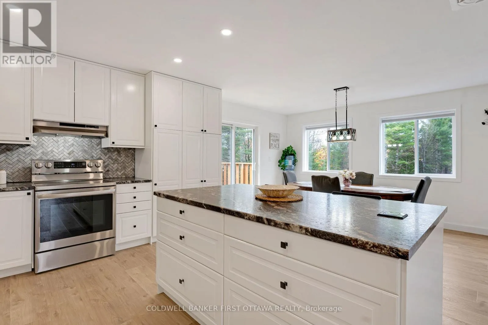 Cross Streets: Waddle Creek & French Line Rd. ** Directions: Take Hwy 511 to French Line Rd, follow to #946. Discover this stunning 2024 custom built raised bungalow nestled on 2.4 acres in the wooded countryside of Lanark Highlands. Thoughtfully designed for comfort and efficiency, this home offers a bright open concept layout with pot lighting, luxury vinyl plank flooring, and a cozy fireplace for those chilly evenings. The kitchen is a showstopper - featuring stainless steel appliances, elegant herringbone tile backsplash, and a large island perfect for entertaining. The spacious primary bedroom on the main level includes a generous walk-in closet. Enjoy the convenience of a walk-out lower level, providing ample natural light and in-law suite potential. Outside, you'll find a large insulated garage/workshop ideal for hobbyists, contractors, or extra storage, plus plenty of room for boat storage and a dedicated EV plug. Built with energy efficiency in mind, this property boasts average total monthly utilities of just $338, offering peace of mind and affordability year round. Enjoy privacy, nature, and modern comfort - all just a short drive to town amenities. 8 mins to Hopetown General Store, 25 mins to Calabogie, 30 mins to Almonte, 17 mins to Rosetta Hills Mini Putt & Alpaca Farm! Don't miss your chance to own this move-in-ready retreat surrounded by trees and fresh country air! (id:27476)