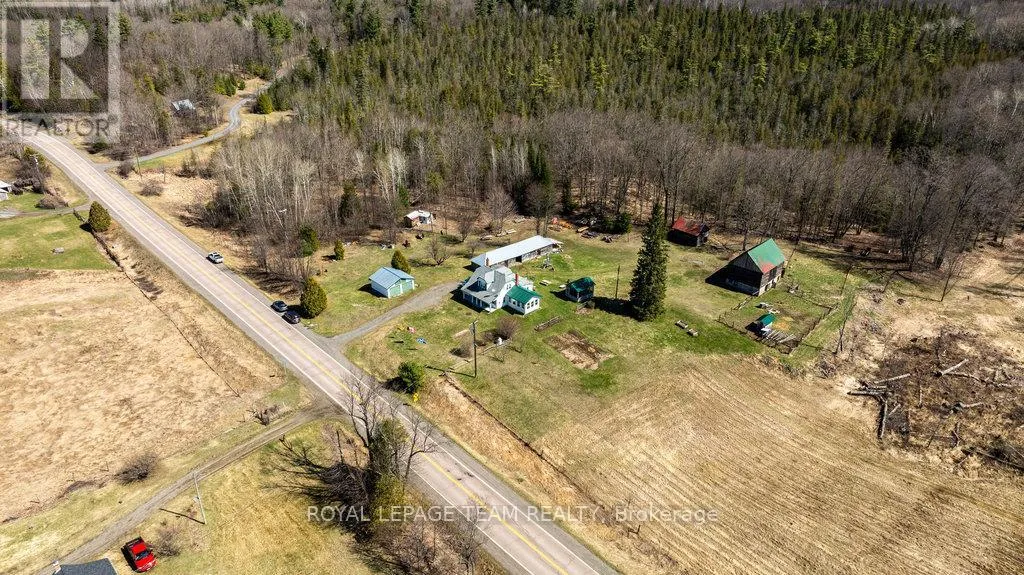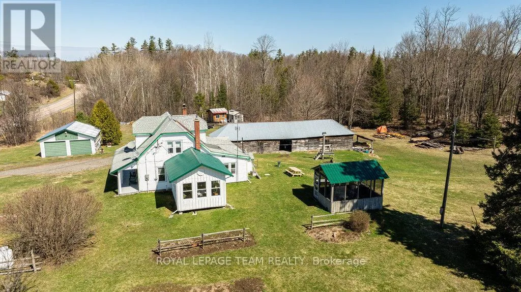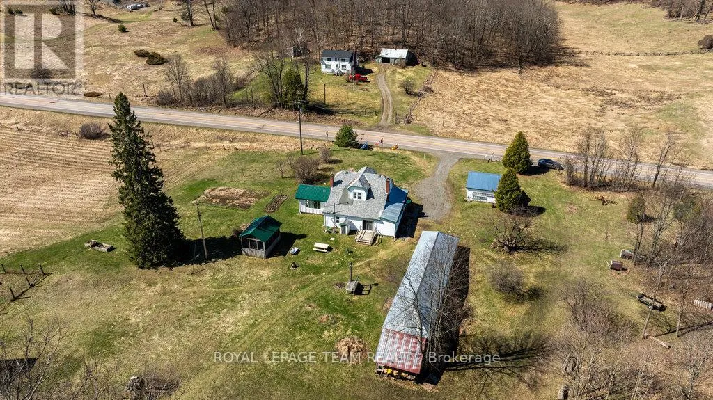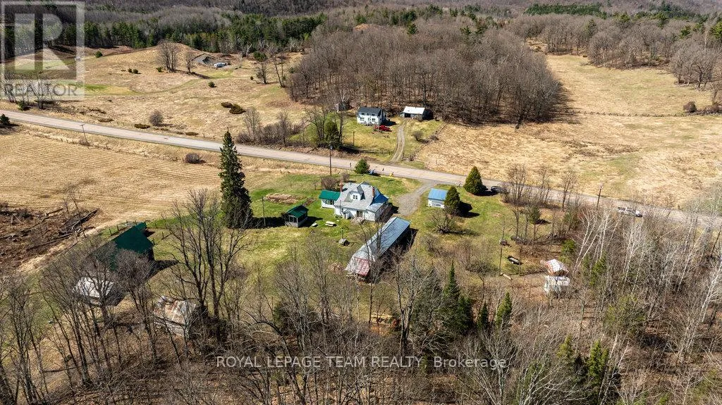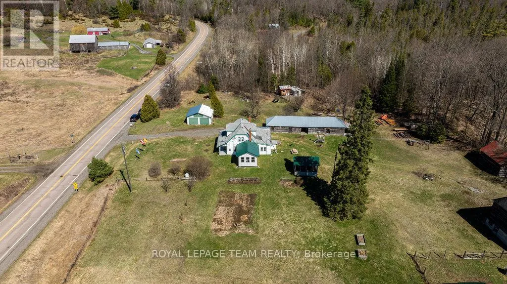 Cross Streets: Hwy 511 and Luker Rd. ** Directions: Hwy 511 North from Lanark or South From Calabogie. Prop on the East side of Hwy 511. Escape to this fabulous 55 acre hobby farm minutes to public boat launch on White lake. Recent renovations on the main floor of this cozy farmhouse. 4 bedroom with main floor primary Br, bathroom and laundry . Recent addition of a sunroom/office or games room. Eat in kitchen with wood cookstove. Several out buildings, Includes a 2 car garage, newer gazebo, large drive shed, barn, sugar shack with some equipment and lots of storage. Enjoy the rolling hills of Lanark Highlands with a meandering creek, abundance of wildlife and a mature hardwood forest. Trails throughout. Located 10 Mins S of Calabogie. (id:27476)