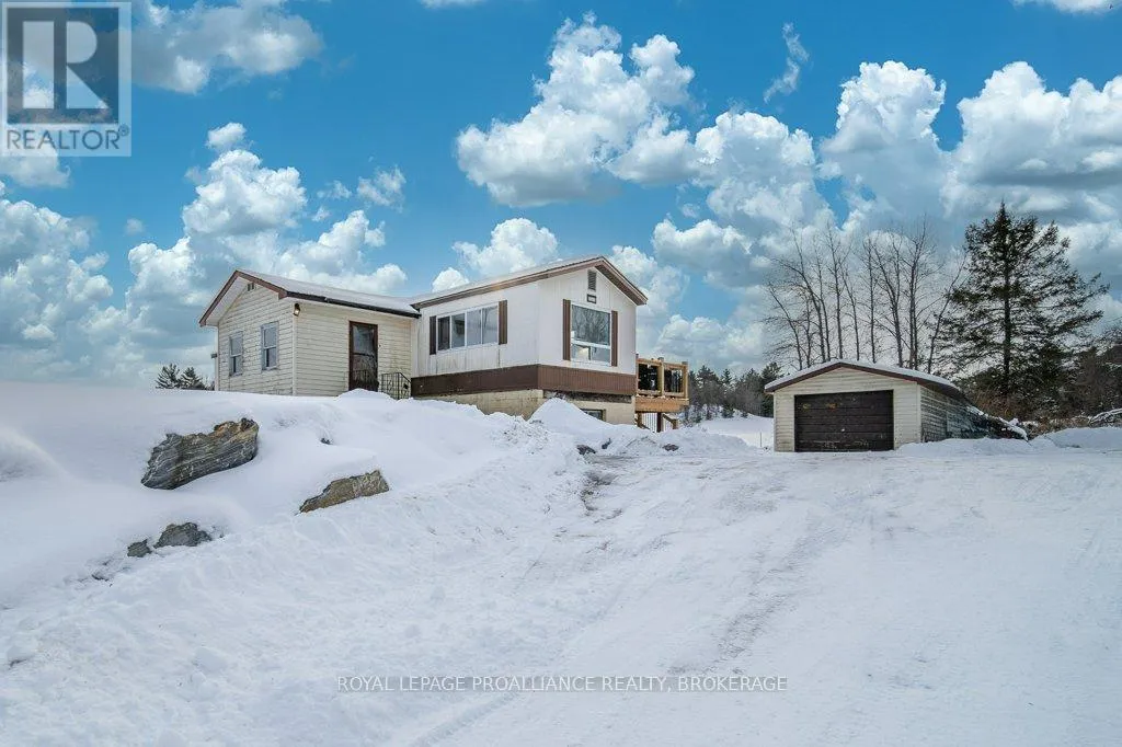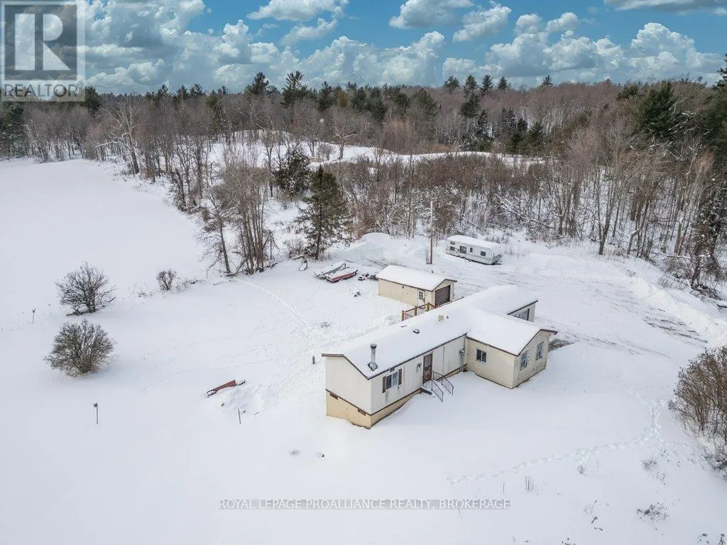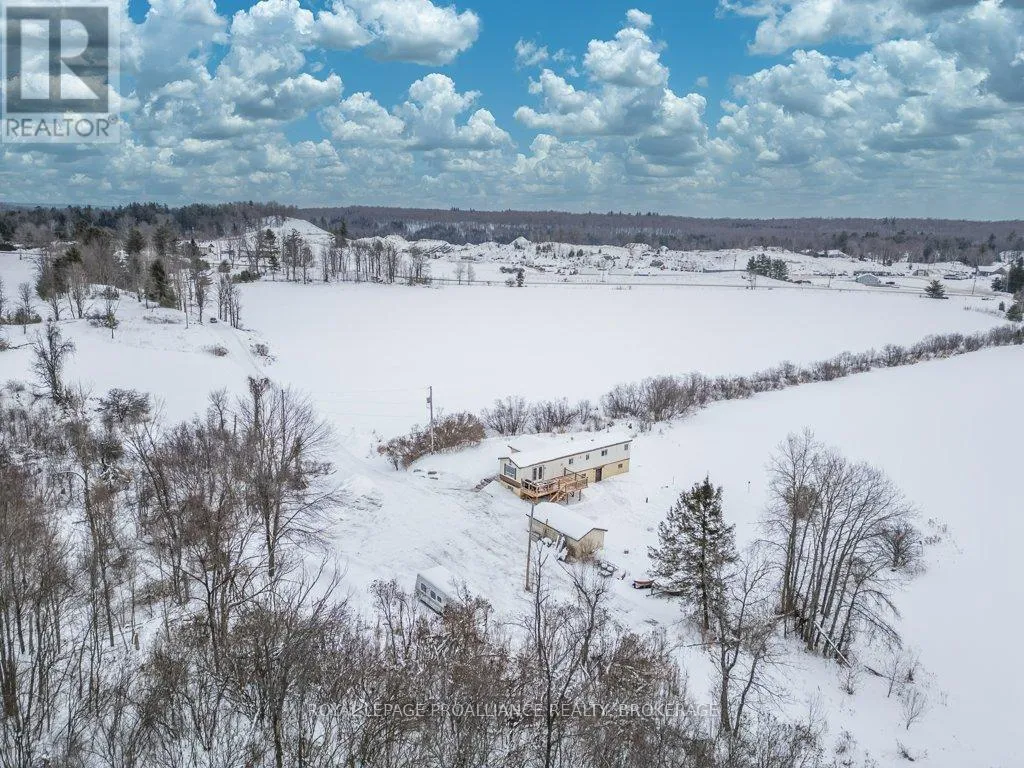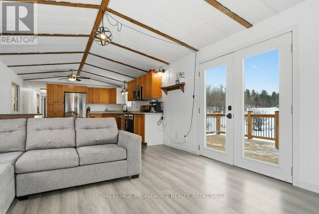 Highway 7 to Elphin-Maberly Welcome to this 2-bedroom, 1-bath bungalow tucked away in the peaceful countryside of Maberly. Set on a manageable, low-maintenance lot and surrounded by rolling hills and mature trees, this property offers a wonderful sense of privacy and tranquility. The home has been well maintained and features a spacious open concept kitchen, living and dining area, sizeable entry-way, large bathroom, 2 bedrooms and a partially finished walkout basement. Whether you're relocating to the area, a first-time buyer, downsizer, or investor, this is an excellent opportunity to own a solid home at a great value, priced under 350k. Enjoy the best of rural living while still being conveniently located and situated on a year round municipally maintained road- just under 30 minutes to Perth, 20 minutes to Sharbot Lake, and approximately 45 minutes to Carleton Place. A cozy retreat with easy access to nearby towns, lakes, trails and amenities. Recent updates include brand new back deck (2025), owned hot water heater (2023), Electric motor in the electric furnace (2021), wood stove (2020), Iron filter and water softener (2022/2023), armour stone landscaping, and a new submersible water well pump. (id:27476)