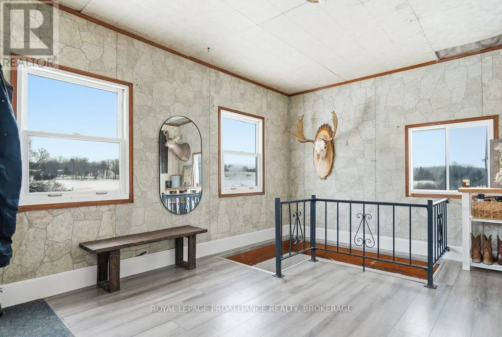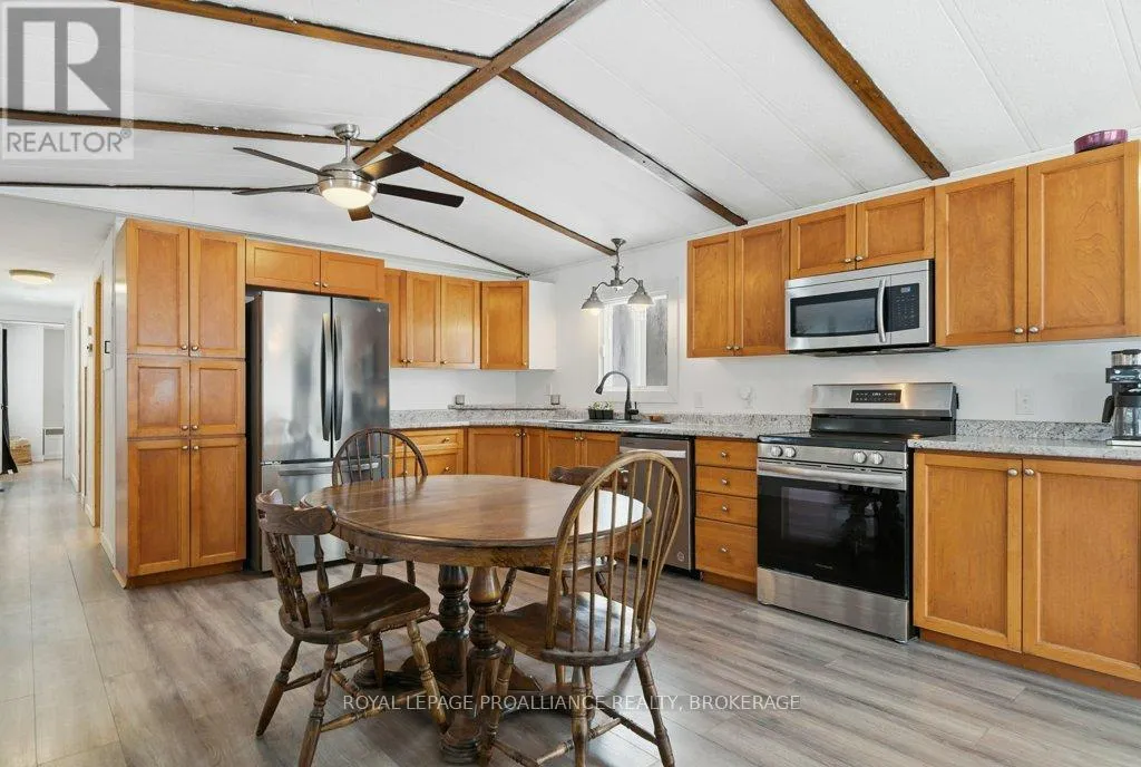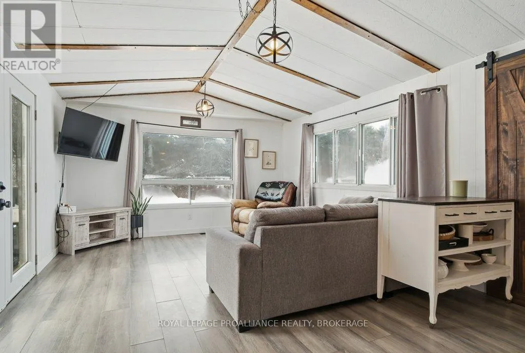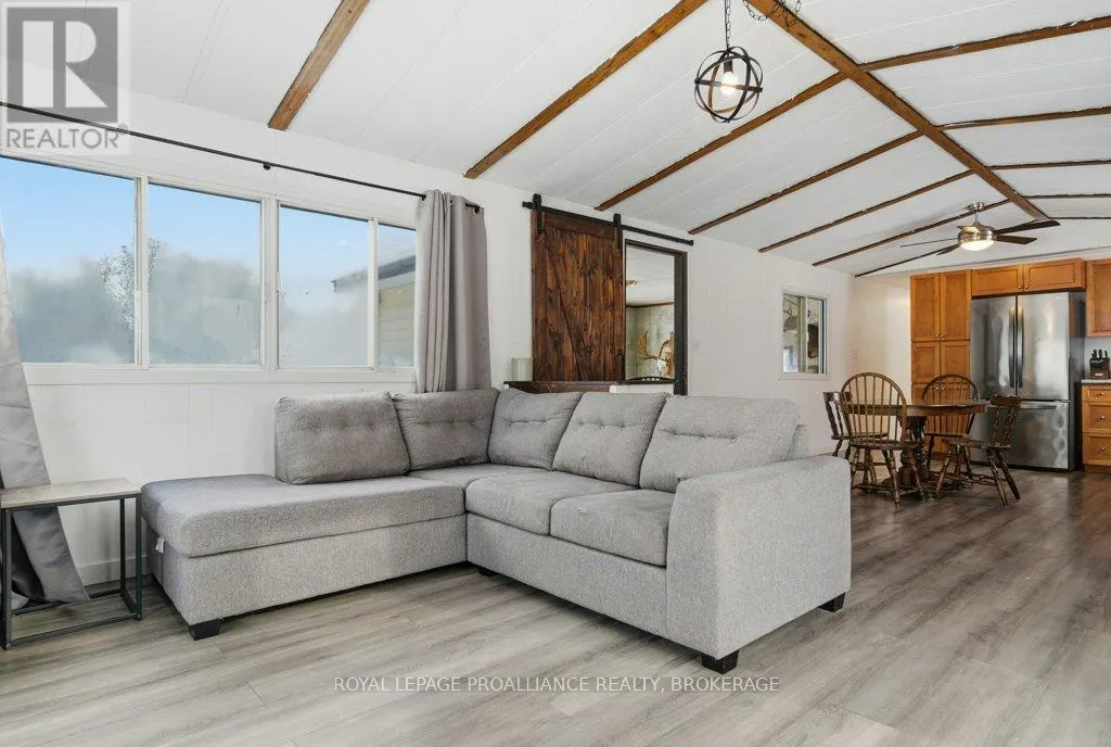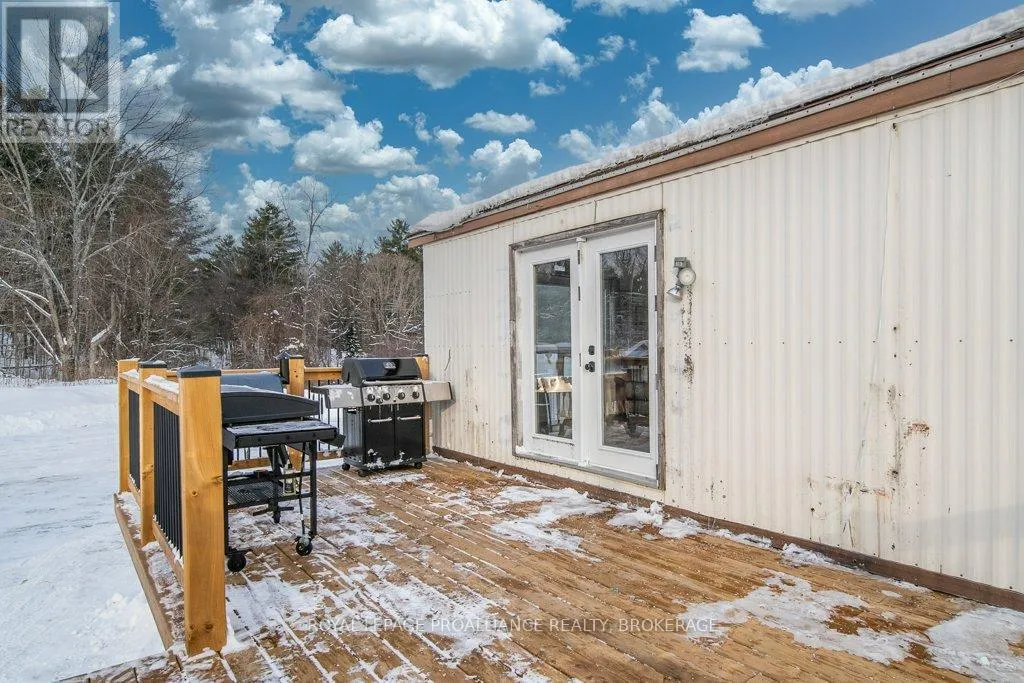 Highway 7 to Elphin-Maberly Welcome to this 2-bedroom, 1-bath bungalow tucked away in the peaceful countryside of Maberly. Set on a manageable, low-maintenance lot and surrounded by rolling hills and mature trees, this property offers a wonderful sense of privacy and tranquility. The home has been well maintained and features a spacious open concept kitchen, living and dining area, sizeable entry-way, large bathroom, 2 bedrooms and a partially finished walkout basement. Whether you're relocating to the area, a first-time buyer, downsizer, or investor, this is an excellent opportunity to own a solid home at a great value, priced under 350k. Enjoy the best of rural living while still being conveniently located and situated on a year round municipally maintained road- just under 30 minutes to Perth, 20 minutes to Sharbot Lake, and approximately 45 minutes to Carleton Place. A cozy retreat with easy access to nearby towns, lakes, trails and amenities. Recent updates include brand new back deck (2025), owned hot water heater (2023), Electric motor in the electric furnace (2021), wood stove (2020), Iron filter and water softener (2022/2023), armour stone landscaping, and a new submersible water well pump. (id:27476)