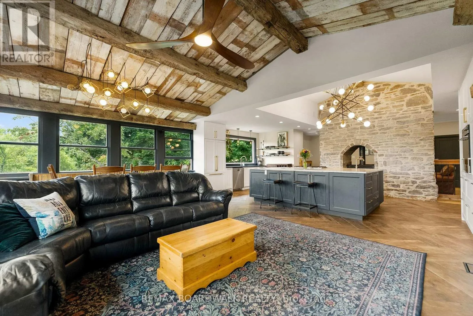 Cross Streets: Route 12/Mcdonalds Corners Rd & Iron Mine. ** Directions: Head West on Hwy 7 towards Perth, ON. Turn right onto Ferguson Falls Rd/County Rd 15. Turn right onto Pine Grove/Route 12. Turn left onto Mill St. Turn right onto Iron Mine. Turn right onto Sheridan Rapids. 250 Meters you've reach 1415 Sheridan. Step into something truly special - 157 acres of history, character, and unforgettable countryside living. This extraordinary 1850s stone farmhouse near Lanark isn't just a property, it's a place with a story to tell. Surrounded by rolling fields, mature forest, and winding trails, it offers the kind of space and freedom that's becoming increasingly rare to find. Inside, the home beautifully honours its roots while embracing modern comfort. Original stone walls, exposed beams, and warm pine floors create an atmosphere that feels both grounded and welcoming, as though generations of memories are woven into every corner. At the heart of it all is a breathtaking double-sided stone fireplace, connecting the kitchen and family room - the perfect backdrop for quiet mornings, lively gatherings, and cozy evenings that stretch long into the night. Thoughtful updates, including heated tile floors(2021), a metal roof (2015), and upgraded electrical with 200-amp copper wiring (2012), allow you to enjoy historic charm without sacrificing peace of mind. Outside, the lifestyle truly unfolds. Four barns open the door to endless possibilities - hobby farming, animals, workshops, or creative ventures - while acres of open land and wooded trails invite you to ride, explore, or simply slow down and take in the beauty around you. Wildlife wanders freely, seasons feel richer, and every day offers a deeper connection to nature. What makes this property even more remarkable is the balance it provides: complete privacy paired with the warmth of a welcoming rural community nearby. It's a place where you can breathe a little deeper, live a little fuller, and create something lasting. Whether you envision a multigenerational family estate, a working farm, or a peaceful country retreat, this is more than a home - it's a legacy ready for its next chapter. (id:27476)