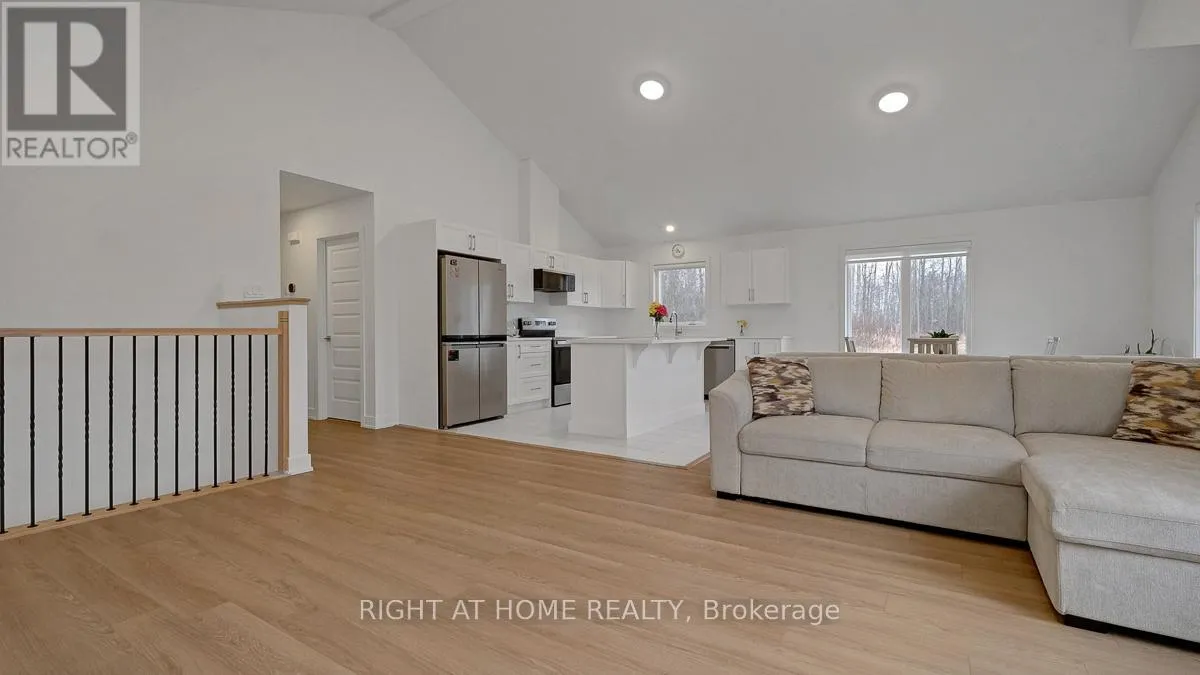 Cross Streets: Ramsat Conc rd 1. ** Directions: HWY 7 to Ramsat Conc rd 1 to Boyds rd. Newly built (2025) 3 bedroom, 2 full bathrooms bungalow set on a private 2.4-acre lot, surrounded by tranquil landscapes with stunning sunrise views. Located on a hill for added privacy, this home makes a lasting first impression from the moment you arrive. Enjoy the convenience of an oversized driveway and a double car garage, along with an impressive entrance that leads into a spacious foyer. The main level showcases a highly popular open-concept layout, perfect for modern living and entertaining. The oversized living room is filled with natural light from large windows and features rich hardwood flooring, a cozy wood-burning fireplace, and soaring cathedral ceilings. The bright chef's kitchen is designed to impress with new SS, quartz countertops, and a large island that seamlessly flows into the generous dining area. Three spacious bedrooms, including a primary bedroom with double closets and a luxurious 4- piece en-suite bathroom. A well-appointed full family bath completes this level, offering comfort and functionality for everyday living. The lower level features high ceilings and offers endless possibilities-whether you envision a home gym, recreation room, additional living space, or in-law suite. This is a rare opportunity to own a modern home on a picturesque acreage, combining contemporary finishes with peaceful country living-all just a short drive to everyday amenities. (id:27476)