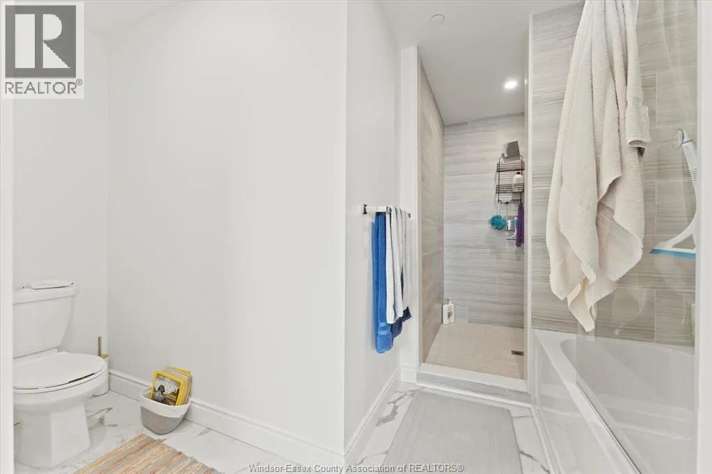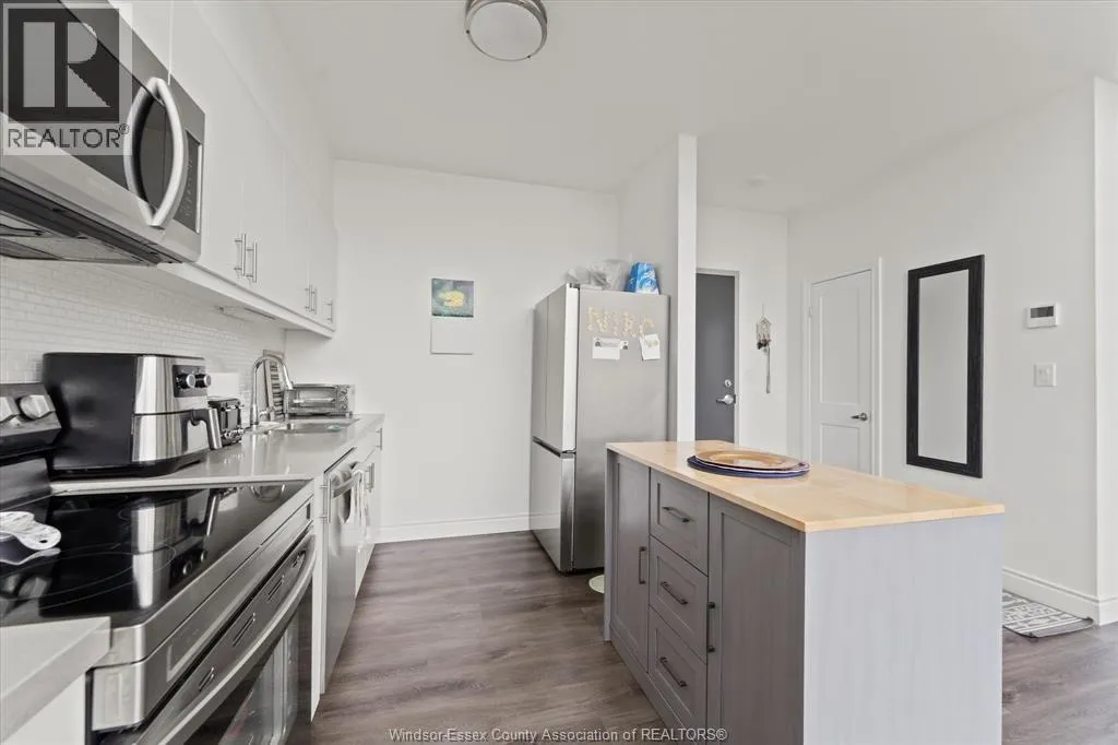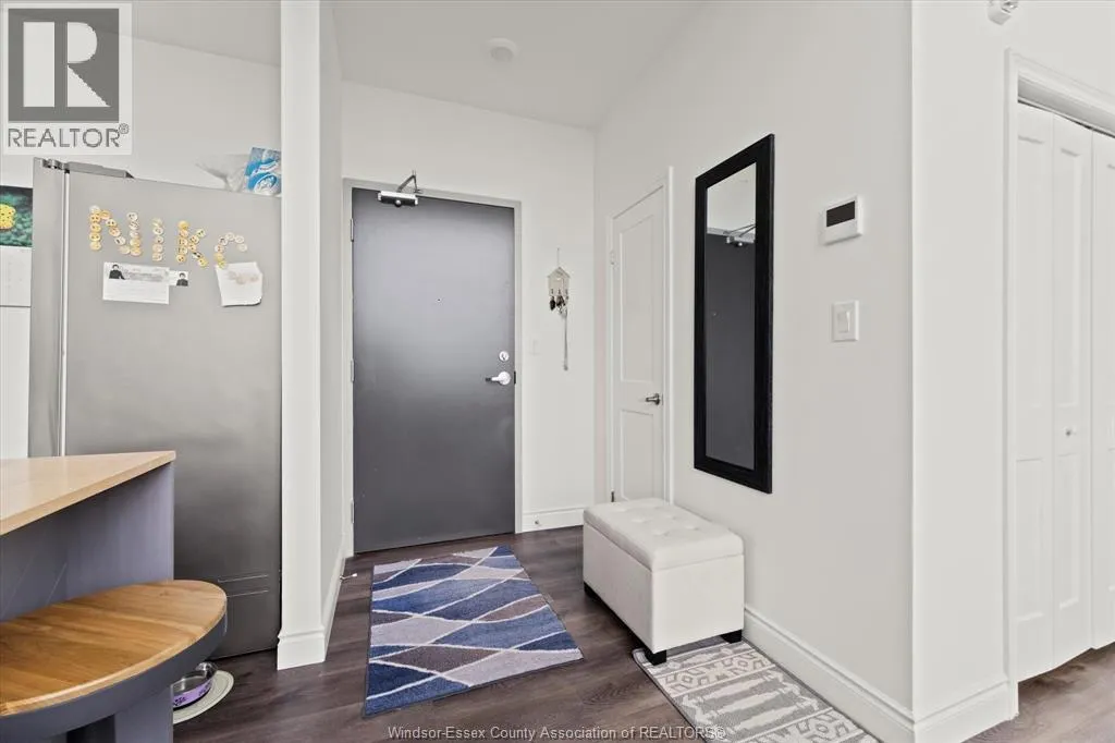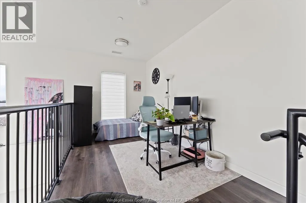 This oversized, approx. 1500 sq ft loft-style condo offers two bedrooms plus a den and two full bathrooms, including a stunning primary ensuite and a spacious walk-in closet. Enjoy your own private rooftop balcony. Elegantly designed, the unit boasts a massive living room with soaring two-storey windows that flood the open-concept space with natural light, seamlessly connecting the living, dining, and kitchen areas. In-suite laundry and stainless steel appliances are included. Ideally located near all major amenities, including Highway 401, St. Clair College, the University of Windsor, shopping, and scenic walking trails. The building also features a party room and fitness center for residents to enjoy. (id:27476)