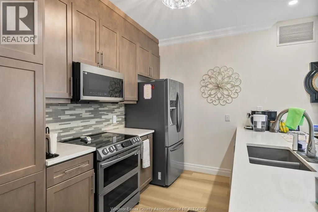 Discover the perfect blend of luxury and convenience in this stunning condo. One of the larger condo's you will find nestled in a prime location, enjoy easy access to stores, parks, and scenic walking trails. This beautifully upgraded condo boasts high-end appliances, elegant crown molding, and striking high baseboards. The kit. features a ceramic backsplash, quartz countertops and a double-door pantry. Solid core doors, nine-foot ceilings, and custom walk-in closet provide a sense of sophistication and space. The bathrooms also showcase quartz countertops and luxury finishes. Luxury vinyl & ceramic floors throughout, enhance the modern aesthetic. Window treatments remain, adding to the move-in ready appeal. Don't miss this opportunity to live in a prime location with all the modern amenities you desire. Make this condo your new home and enjoy the best of comfort and convenience. (id:27476)