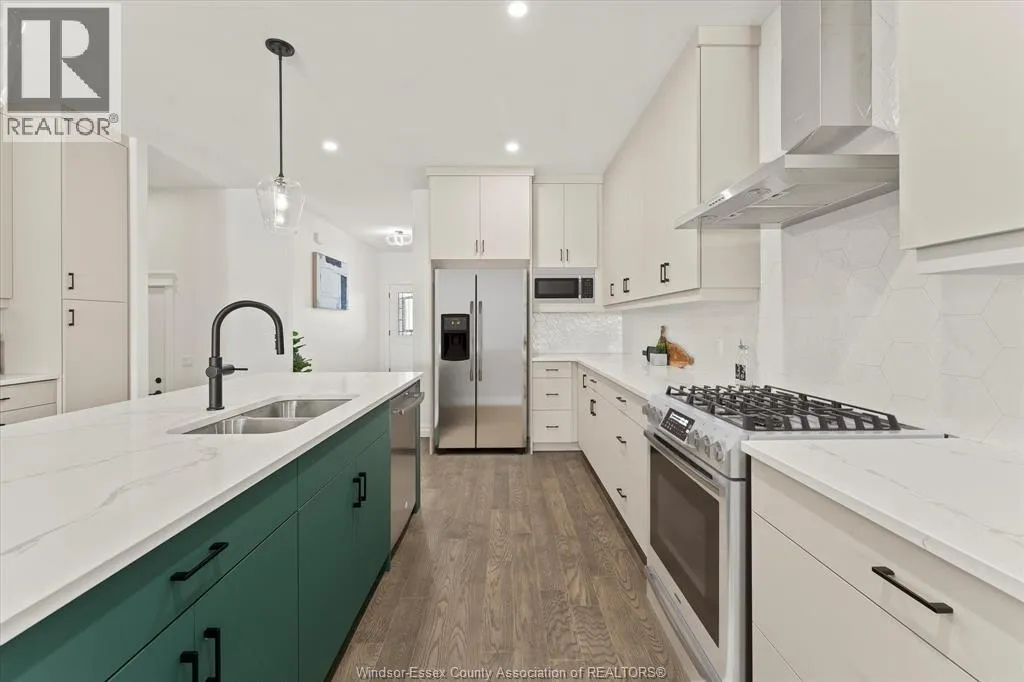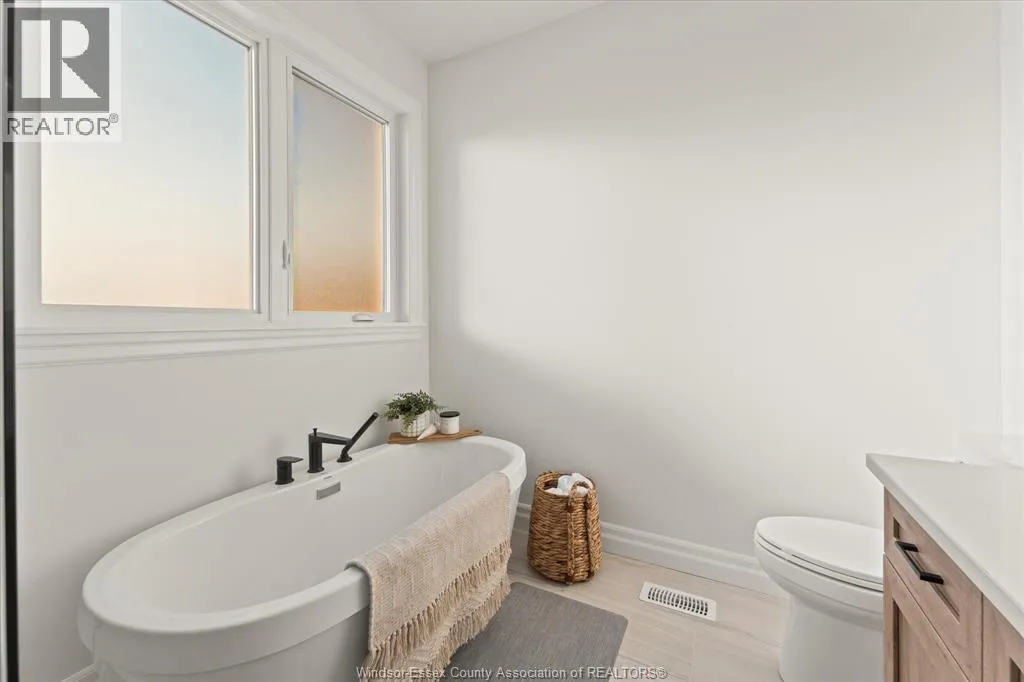 HURON CHURCH LINE WEST ON SANDWICH WEST PARKWAY Now offered at a newly reduced price, presenting an impressive opportunity! This stunning Brighton I ranch townhome. Built by Energy Star certified builder BK Cornerstone, this home offers the perfect blend of luxury and low-maintenance living in one of LaSalleâs most desirable communities. With over 1,800 sq ft of thoughtfully designed main floor living, youâll enjoy 9' ceilings, oversized patio doors, and natural light pouring into the open-concept layout. The heart of the home is a beautifully appointed kitchen featuring custom cabinetry, quartz countertops, and ample space for entertaining. The main level includes 2 spacious bedrooms and 2 bathrooms, including a serene primary suite with walk-in closet and spa-style ensuite complete with a freestanding soaker tub, dual vanities, and tiled glass shower. The finished lower level expands your living space with an additional bedroom, full bath, 2 flex rooms that are perfect for a home office or gym, and a generous family room. (id:27476)