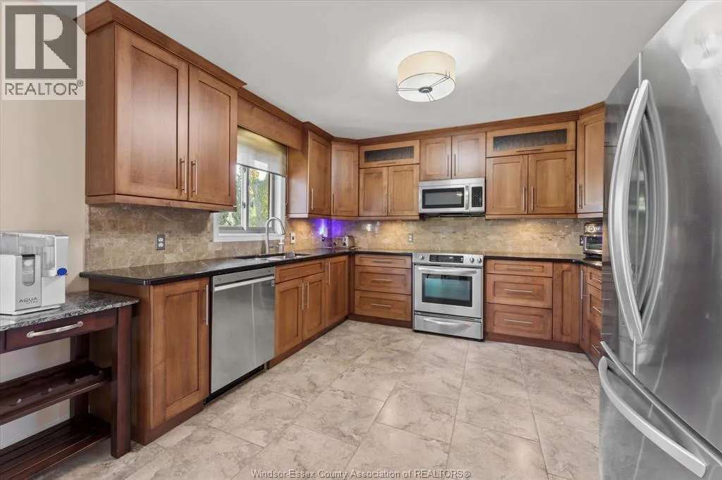 Lasalle's most desirable location, Must be seen this Lovely cared for R-Ranch Style home, 3+2 bedrooms and 2 Full Baths, This open concept main floor includes spacious Living room, a well appointed Granite Kitchen with walkout to the beautiful Sundeck on the fenced rear yard, Harwood floor & Ceramic tiles on wet area, Finished Lower Level offers a bright Family room w/Fireplace, 4th Bedroom plus office or 5th Bedroom, Large size Laundry room for storage, Sprinkler system, updated Central Air & floors, all lighting fixtures with all switches are changed to modern luxury Sensor switches. beautiful Epoxy Coated Garage floor. This amazing property is close to schools, shopping, Banks, walking trail, highways and USA Border. (id:27476)