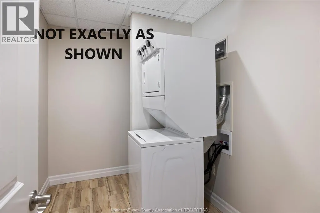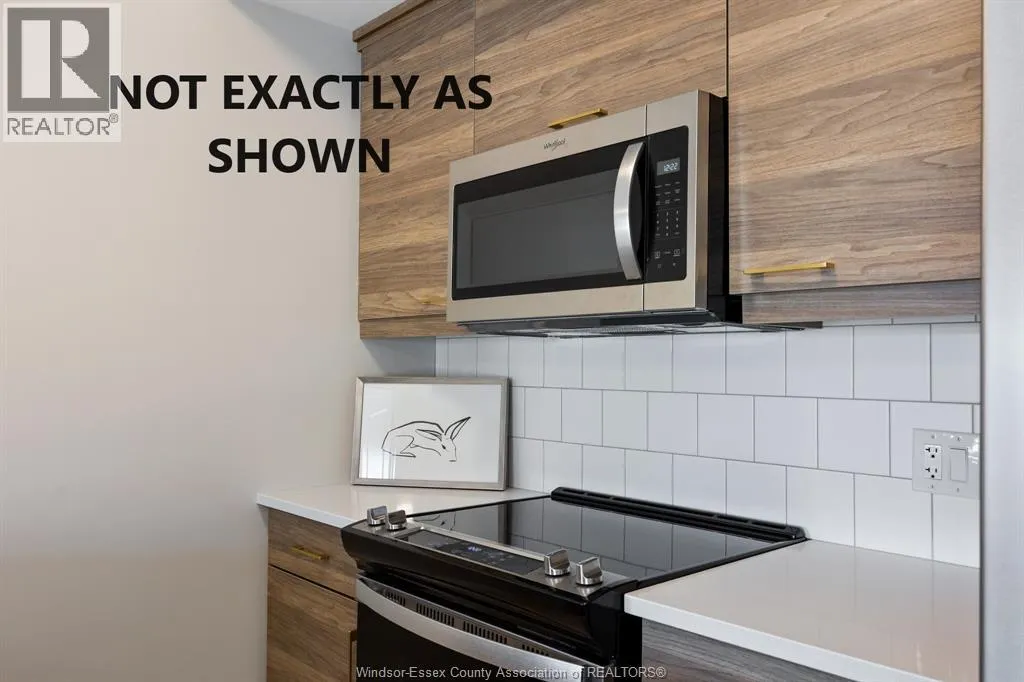 A spectacular 1 bed, 1.5 bath condo by Valente Development with all the upgraded conveniences you have become to expect from this builder One of the best locations in LaSalle for shopping, doctors, banks etc., dog park, walking trails and parks. Open plan design, kitchen with quartz countertops, undermount lighting, pantry, in suite laundry. Spacious p/b with tray ceiling,ensuite with sparkling glass and tile walk in shower, main bathroom with tub. Luxury upgraded vinyl plank flooring throughout except for bathrooms which have porcelain floor. Garbage chute, social/party room for Tenants use with kitchenette and rest room. Unassigned surface parking included. In Building Manager, service department. Includes 5 S/S appliances. Heating equipment and hot water tank not subject to any rental fees. 1 year lease. Proof of employment and credit check required.Tenant pays utilities, water, gas, hydro. All showings by appointment. (id:27476)