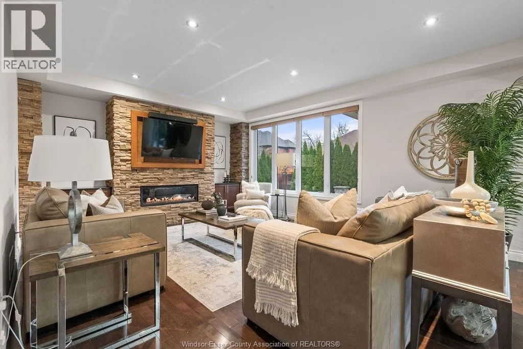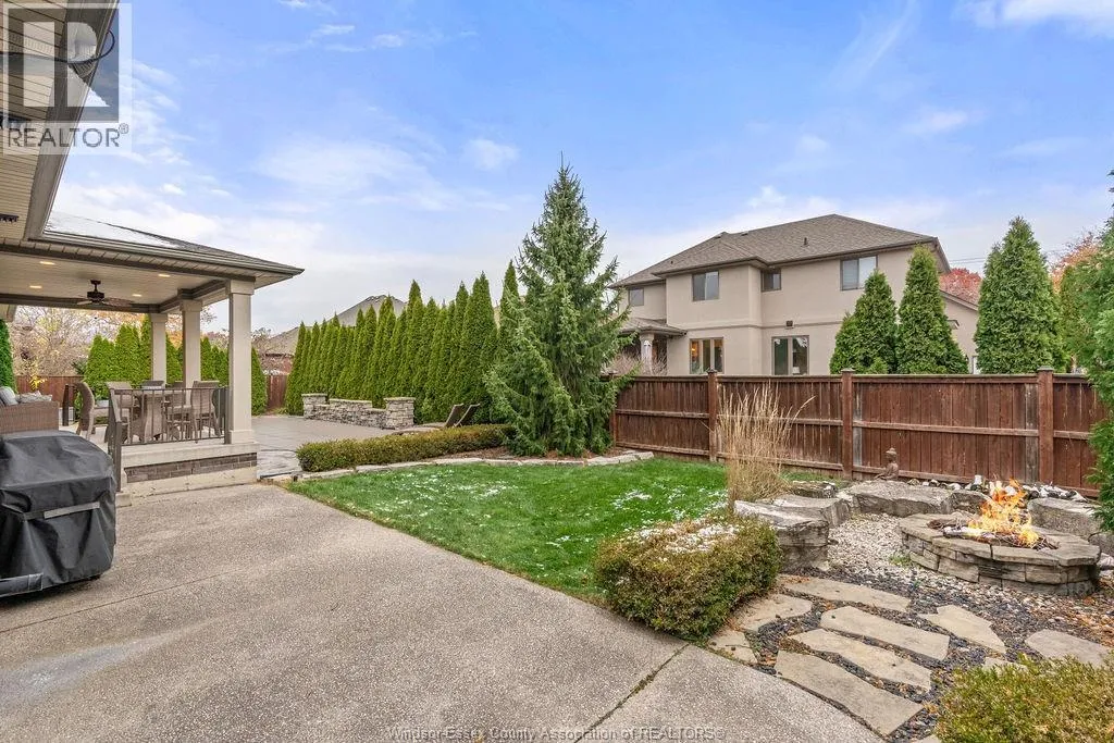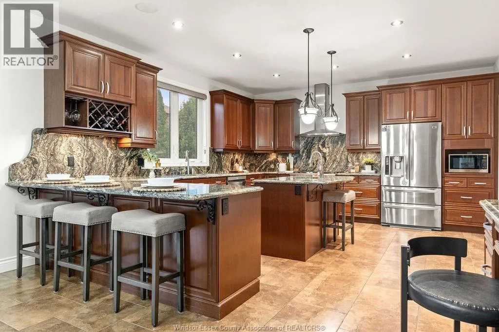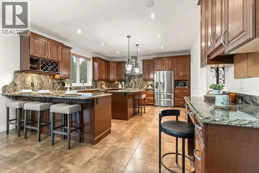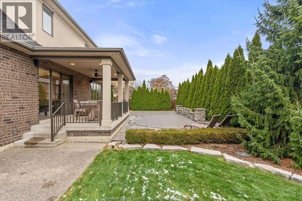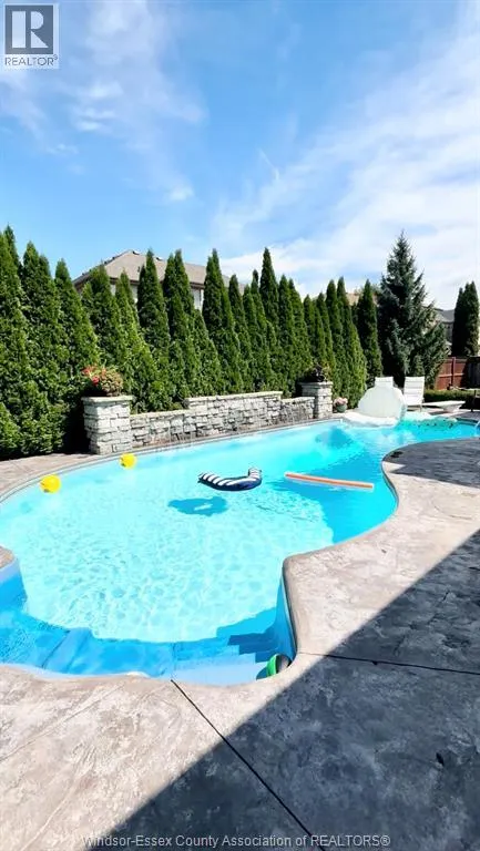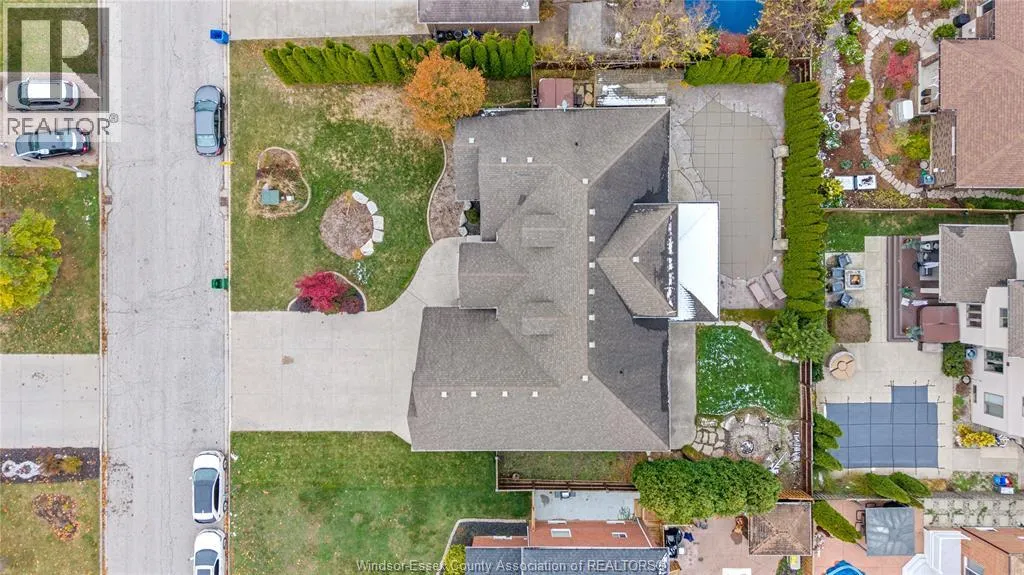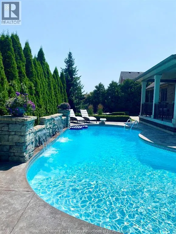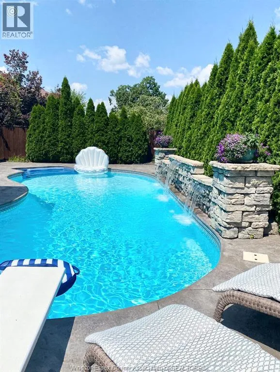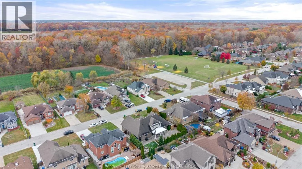 Stunning 2,374 sq ft custom 1.5 storey in LaSalle, kiddie corner from Paul Wilkinson Park. Exceptional curb appeal with whimsical landscaping, exposed aggregate drive, and covered porch with new epoxy finish. Open concept main floor features 9-ft ceilings, a 17x15 dream kitchen with walk-in pantry, dining with elegant backyard views, cozy family room with gas fireplace, 2 bedrooms, full bath, and convenient laundry/mudroom. Private upper-level primary suite with luxury ensuite, double shower & double sinks, and massive custom walk-in closet. Fully finished basement includes family room with gas fireplace, custom wet bar with dishwasher, wine rack, and spot lit liquor shelving, 2 large bedrooms, steam shower bath, and tons of storage. Grade entrance to your private oasis with in ground pool, hot tub, firepit, Euro-shed, mature cedars, 4-zone sprinkler system, and covered porch with ceiling fan. Truly an entertainerâs dream in a prime LaSalle location! (id:27476)
