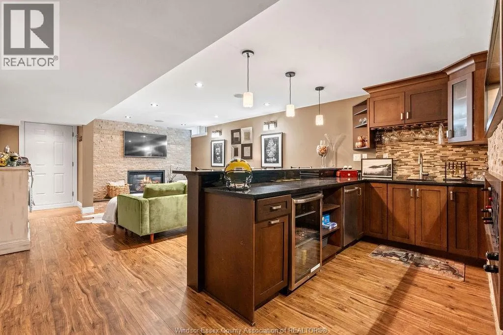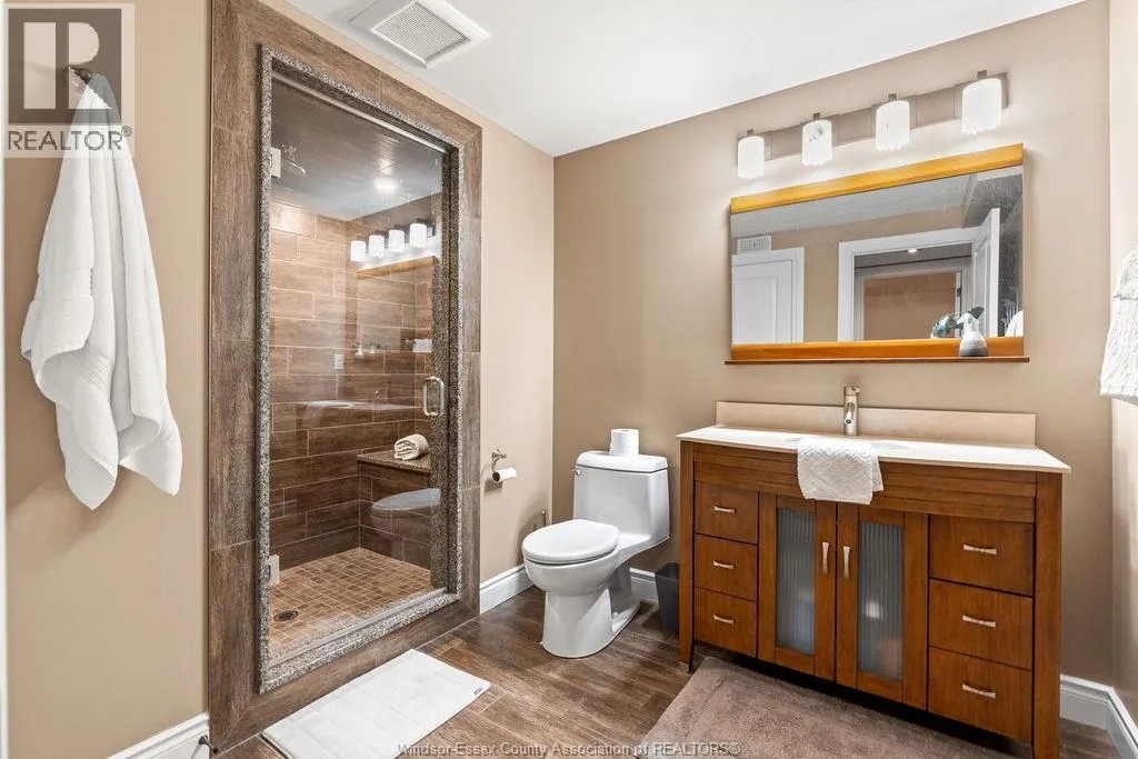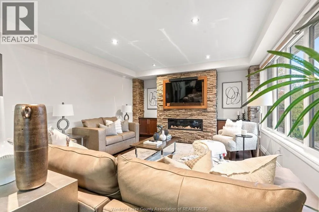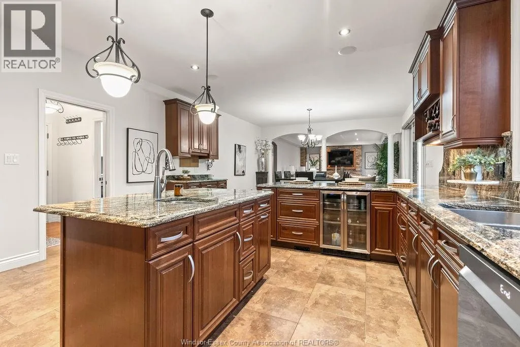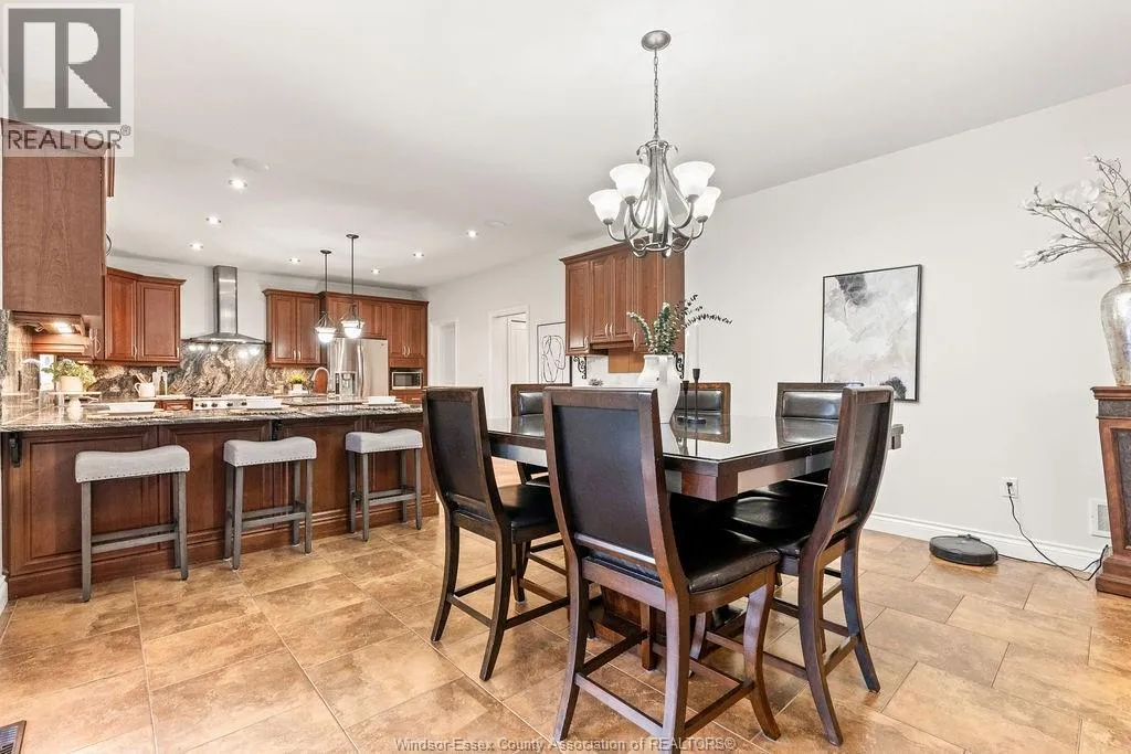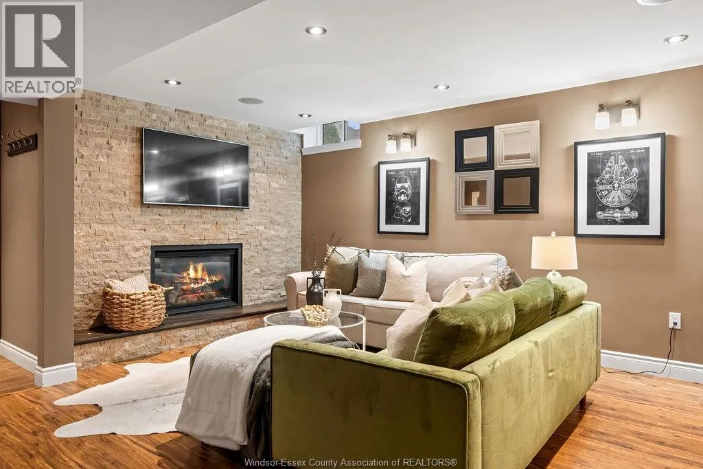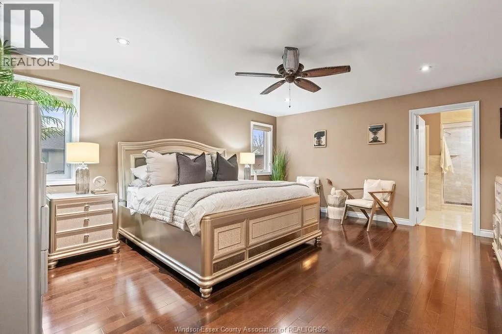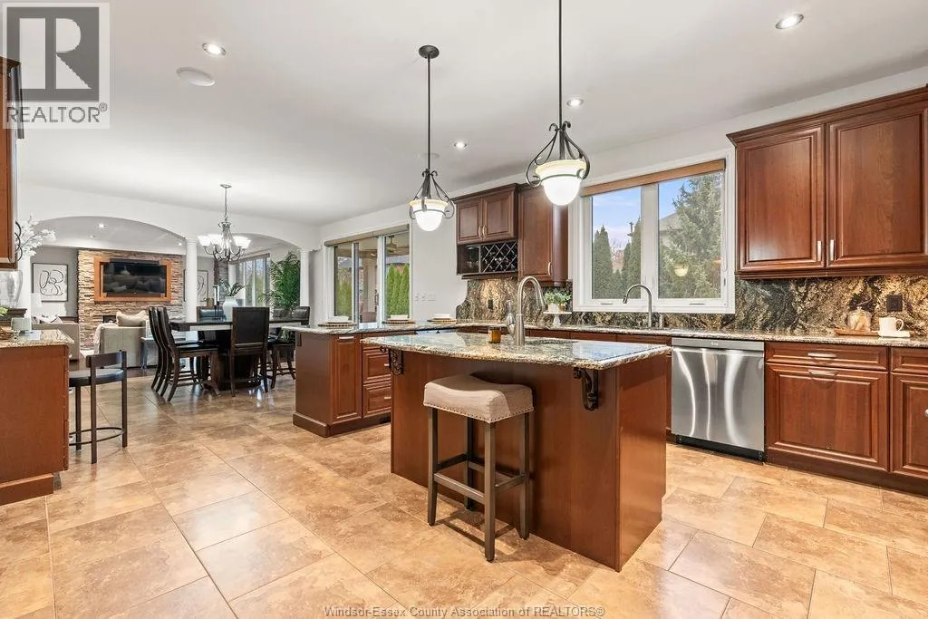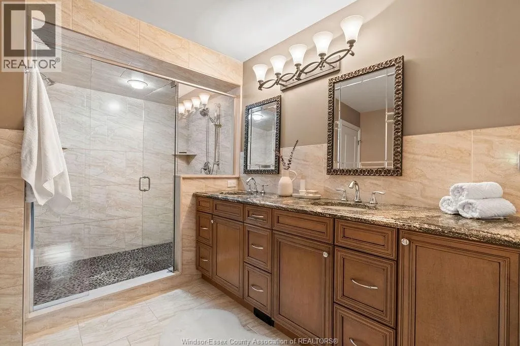 Stunning 2,374 sq ft custom 1.5 storey in LaSalle, kiddie corner from Paul Wilkinson Park. Exceptional curb appeal with whimsical landscaping, exposed aggregate drive, and covered porch with new epoxy finish. Open concept main floor features 9-ft ceilings, a 17x15 dream kitchen with walk-in pantry, dining with elegant backyard views, cozy family room with gas fireplace, 2 bedrooms, full bath, and convenient laundry/mudroom. Private upper-level primary suite with luxury ensuite, double shower & double sinks, and massive custom walk-in closet. Fully finished basement includes family room with gas fireplace, custom wet bar with dishwasher, wine rack, and spot lit liquor shelving, 2 large bedrooms, steam shower bath, and tons of storage. Grade entrance to your private oasis with in ground pool, hot tub, firepit, Euro-shed, mature cedars, 4-zone sprinkler system, and covered porch with ceiling fan. Truly an entertainerâs dream in a prime LaSalle location! (id:27476)