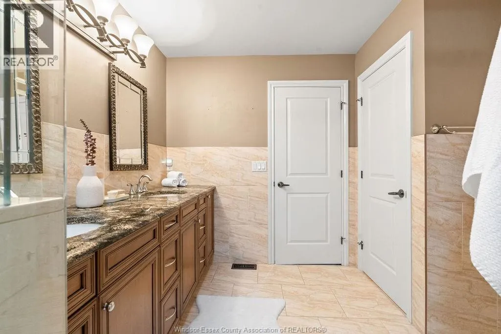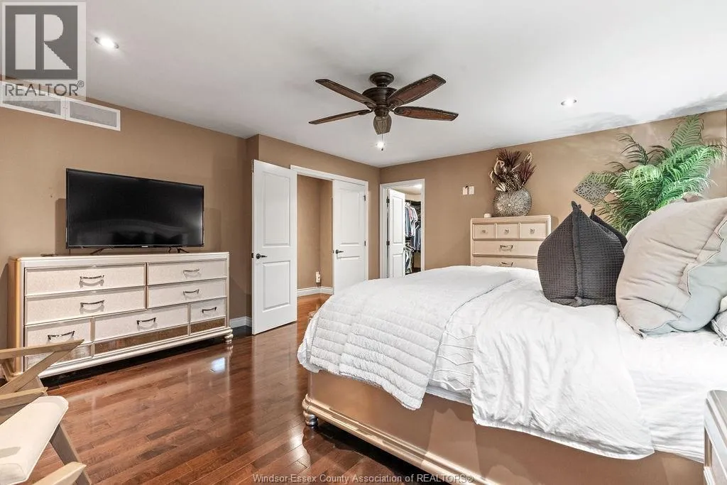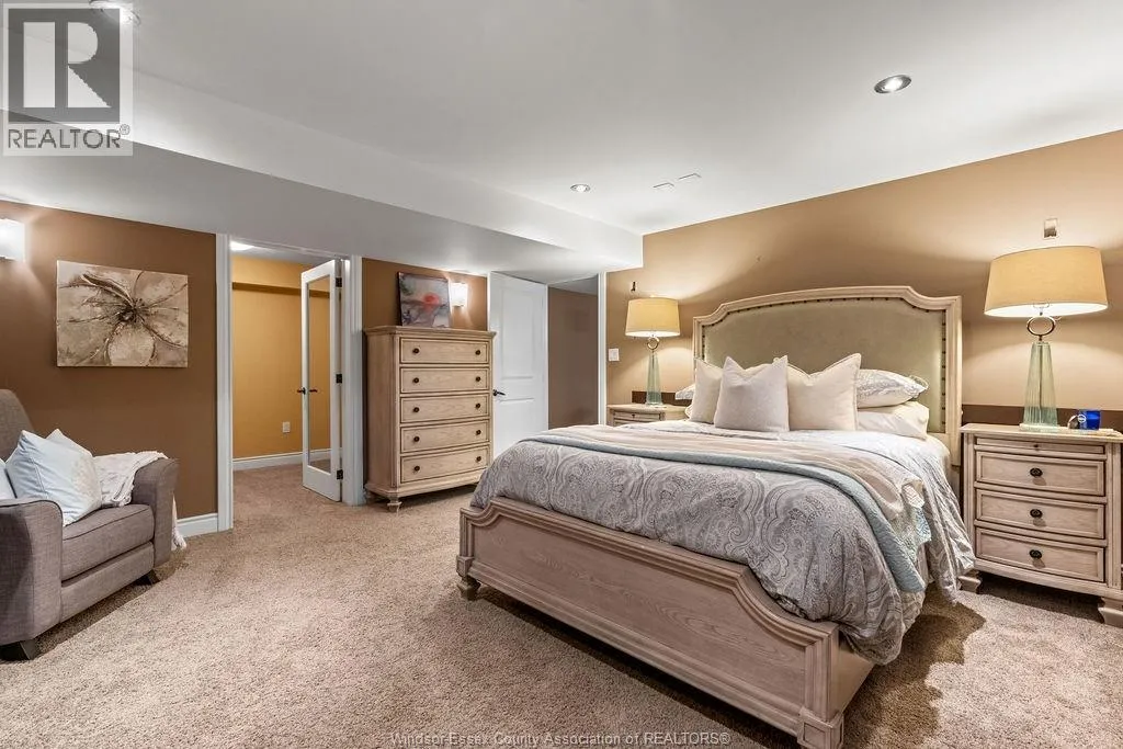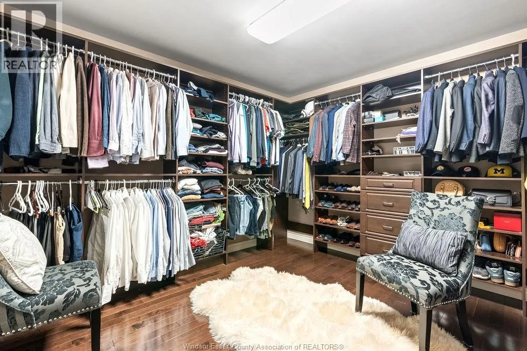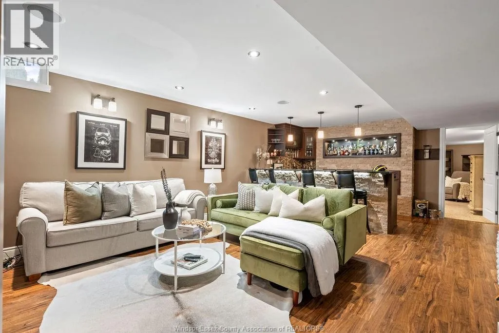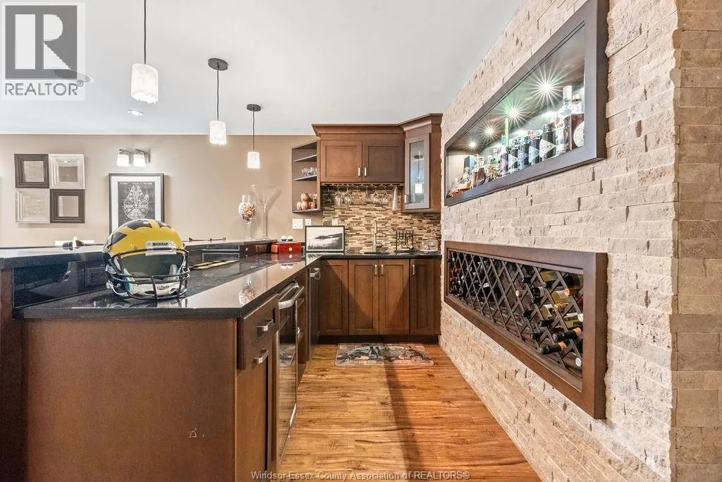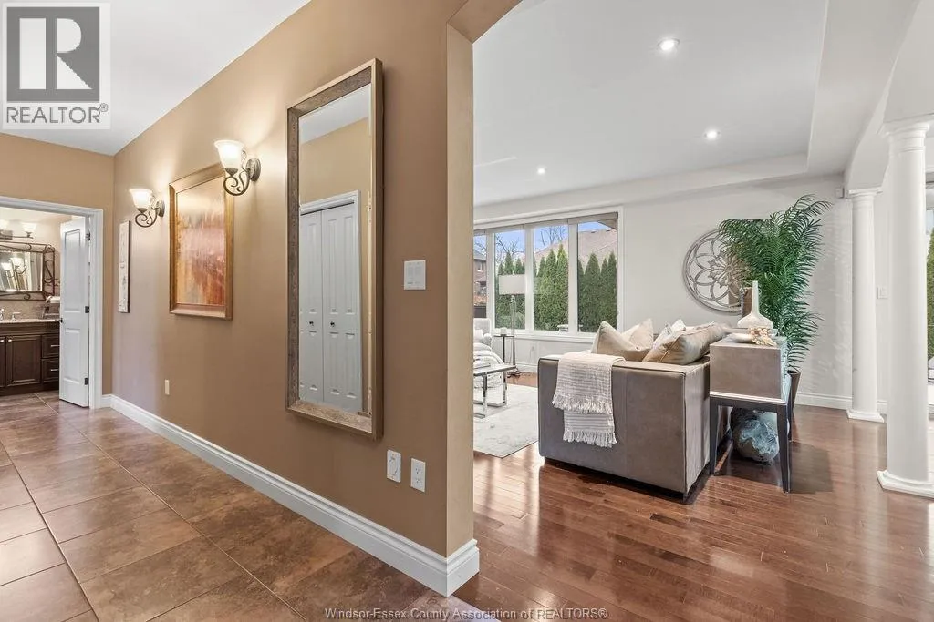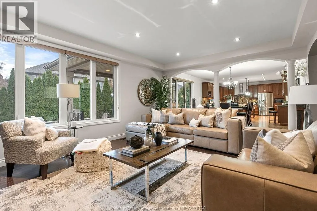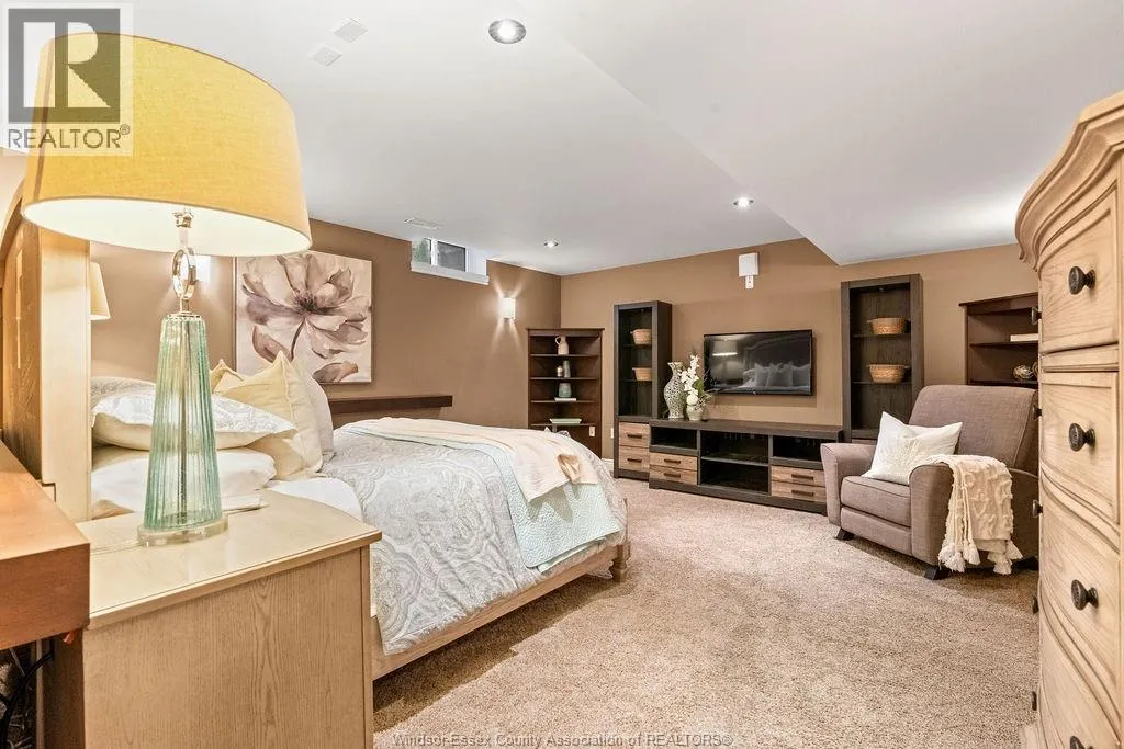 Stunning 2,374 sq ft custom 1.5 storey in LaSalle, kiddie corner from Paul Wilkinson Park. Exceptional curb appeal with whimsical landscaping, exposed aggregate drive, and covered porch with new epoxy finish. Open concept main floor features 9-ft ceilings, a 17x15 dream kitchen with walk-in pantry, dining with elegant backyard views, cozy family room with gas fireplace, 2 bedrooms, full bath, and convenient laundry/mudroom. Private upper-level primary suite with luxury ensuite, double shower & double sinks, and massive custom walk-in closet. Fully finished basement includes family room with gas fireplace, custom wet bar with dishwasher, wine rack, and spot lit liquor shelving, 2 large bedrooms, steam shower bath, and tons of storage. Grade entrance to your private oasis with in ground pool, hot tub, firepit, Euro-shed, mature cedars, 4-zone sprinkler system, and covered porch with ceiling fan. Truly an entertainerâs dream in a prime LaSalle location! (id:27476)