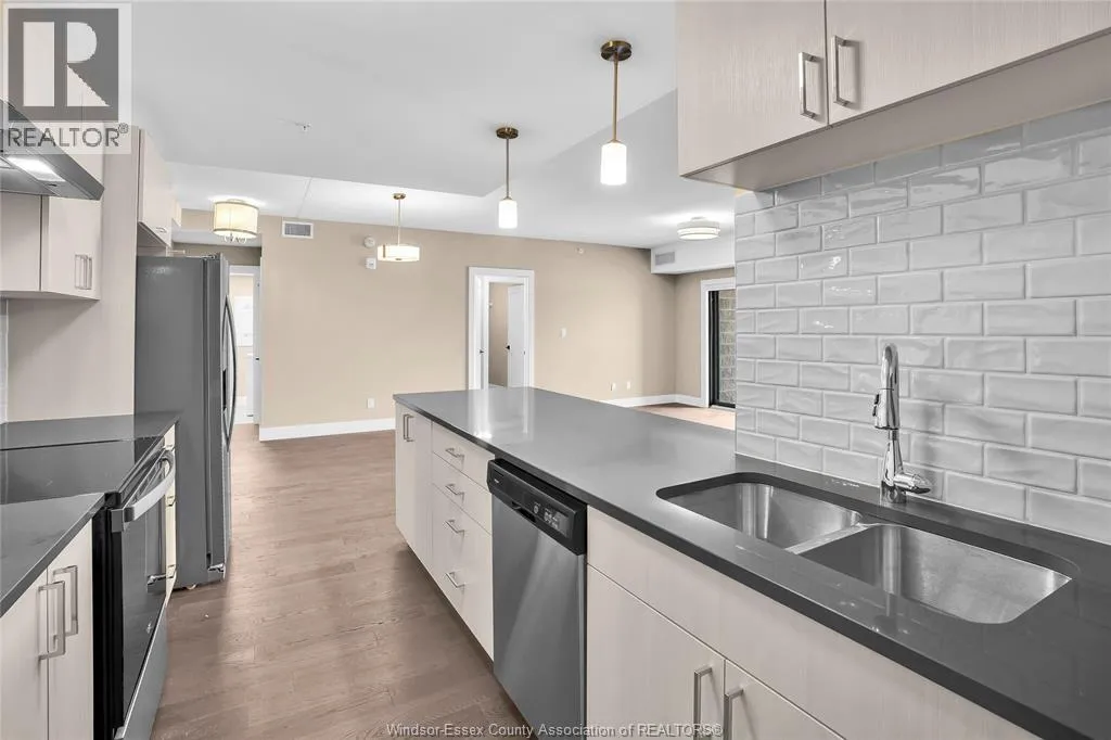 Welcome to the Crossings at Heritage in the beautiful Town of LaSalle. Conveniently located close to Ambassador Bridge, 401, University of Windsor, St. Clair College, walking trails and much more. Be the first to live in this 2-bedroom 2-bathroom condo with hardwood in living, dining and kitchen areas, custom cabinetry, granite countertops, porcelain tile in the in-suite laundry, bathrooms, carpeted bedrooms. A spacious glass balcony w/furnace room is accessed off the living room. Brand new appliance with stackable washer and dryer. Storage locker (located on the same floor) & surface parking. Tenant pays utilities. Rental application, Proof of employment and credit report required. 1 yr lease. First & last. (id:27476)