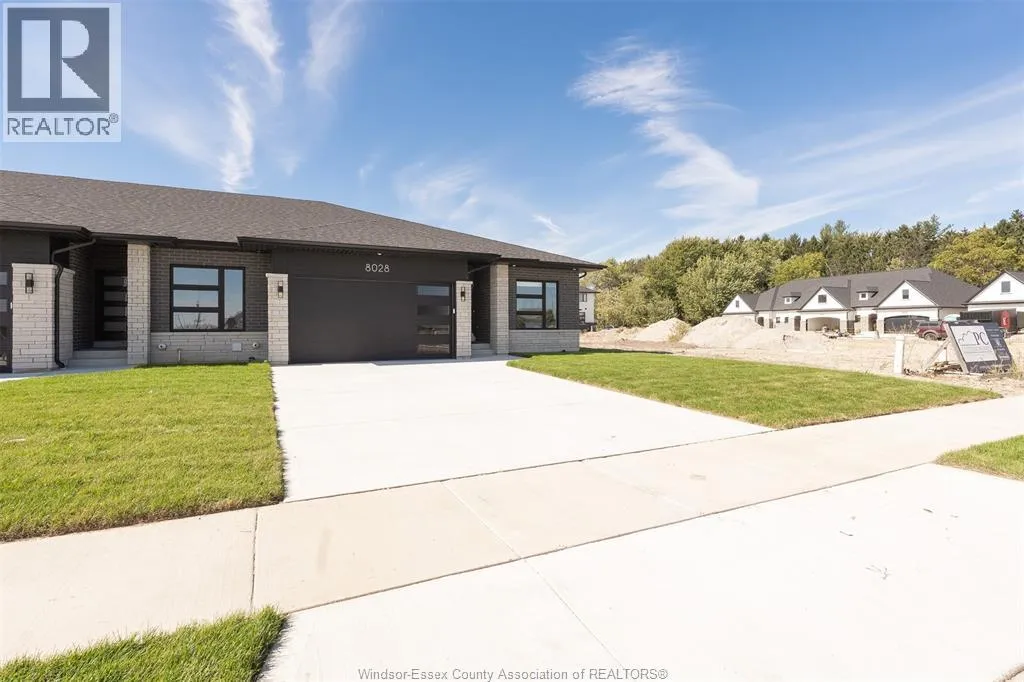 Huron Church to Sandwich West Parkway to Meo Blvd. Welcome to 8028 Meo Blvd in Silver Leaf, LaSalleâs premier development, ideally located just minutes from Highway 401 and the U.S. border. This 1 year end-unit ranch townhome offers additional windows for enhanced natural light and a thoughtfully designed open-concept layout. The main floor features two spacious bedrooms, two full bathrooms, and a bright living area highlighted by a gas fireplace. The upgraded kitchen includes quartz countertops, premium cabinetry, and an oversized island, flowing seamlessly into the dining area with large patio doors leading to a covered outdoor space. Convenient main-floor laundry completes the level. A grade-level entrance provides excellent future potential for an ADU or in-law suite. Quality upgrades throughout construction include hardwood flooring, tile, upgraded kitchen cabinetry, and a large island. All new appliances are included. Enjoy a highly walkable lifestyle with scenic trails nearby, as well as a short walk to a newly developed commercial centre featuring Tim Hortons, Shoppers Drug Mart, Food Basics, McDonaldâs, and more. Close to schools and everyday amenities. Flexible possession available. (id:27476)