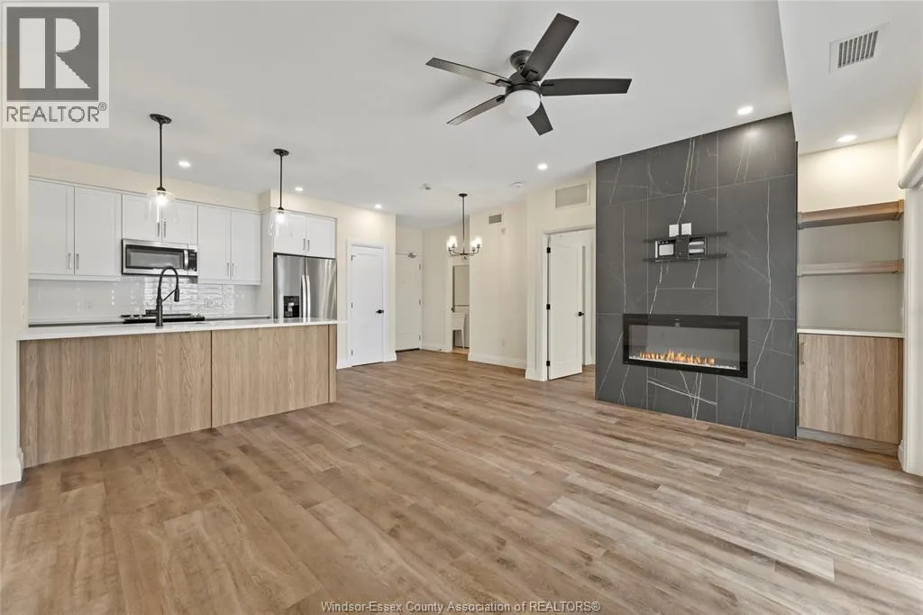 LA Suites - Unit 202 | 1740 Sprucewood Ave, LaSalle Experience refined living at LA Suites, a boutique luxury residence ideally located in the heart of LaSalle, just steps from grocery stores, pharmacies, banks, and nearby parks. This beautifully designed north-facing 2-bedroom, 2-bathroom suite features a balcony, a striking fireplace feature wall, and upscale finishes throughout, including premium flooring, custom cabinetry, and designer lighting. The thoughtfully laid-out suite offers walk-in closets, built-in shelving, and generous storage, along with designated parking for added convenience. Residents enjoy access to exceptional, five-star, hotel-inspired amenities, truly unmatched in the area. For Lease: $2,700/month. Minimum 1-year lease. The tenant is responsible for hydro, gas, WiFi, and tenant insurance. (id:27476)