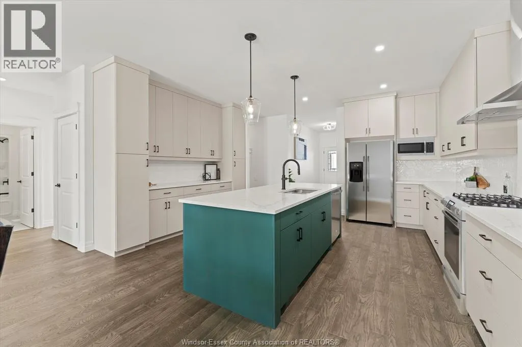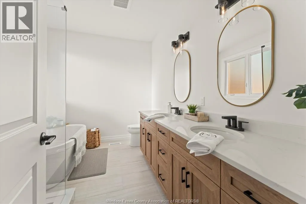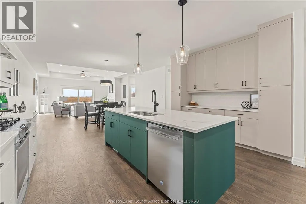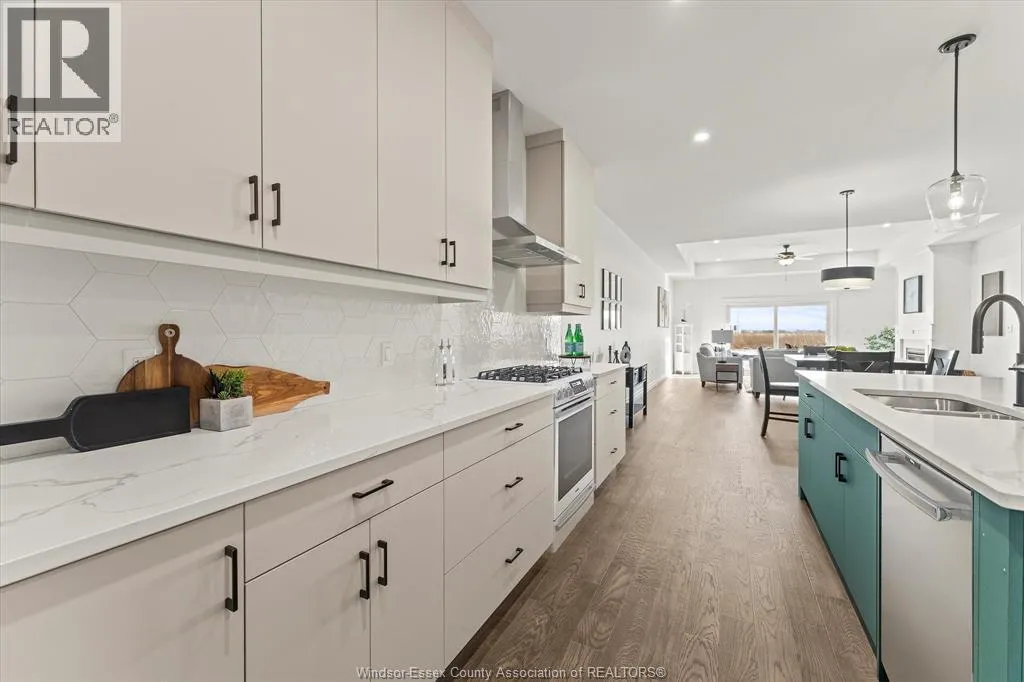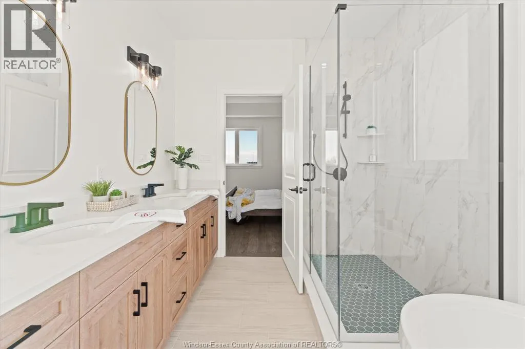 HURON CHURCH LINE WEST ON SANDWICH WEST PARKWAY Now offered at a newly reduced price, presenting an impressive opportunity! This stunning Brighton I ranch townhome. Built by Energy Star certified builder BK Cornerstone, this home offers the perfect blend of luxury and low-maintenance living in one of LaSalleâs most desirable communities. With over 1,800 sq ft of thoughtfully designed main floor living, youâll enjoy 9' ceilings, oversized patio doors, and natural light pouring into the open-concept layout. The heart of the home is a beautifully appointed kitchen featuring custom cabinetry, quartz countertops, and ample space for entertaining. The main level includes 2 spacious bedrooms and 2 bathrooms, including a serene primary suite with walk-in closet and spa-style ensuite complete with a freestanding soaker tub, dual vanities, and tiled glass shower. The finished lower level expands your living space with an additional bedroom, full bath, 2 flex rooms that are perfect for a home office or gym, and a generous family room. (id:27476)