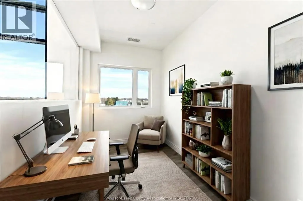 Stunning 2-storey penthouse loft in the heart of LaSalle. This rare top-floor unit offers 1480 sq ft of bright, open living space with 2 bedrooms + den and 2 full baths, including a spacious primary ensuite with 2 walk-in closets. Soaring windows fill the living, dining, and kitchen areas with natural light, leading to a private rooftop terrace overlooking the LaSalle neighbourhood. Features include stainless steel appliances, in-suite laundry, 2 parking spots and 1 locker. Building amenities include a fitness centre and party room. Prime location near Hwy 401, St. Clair College, the University of Windsor, shopping, parks, and scenic trails. A rare penthouse offeringâseller reserves the right to accept or reject any and all offers. (id:27476)