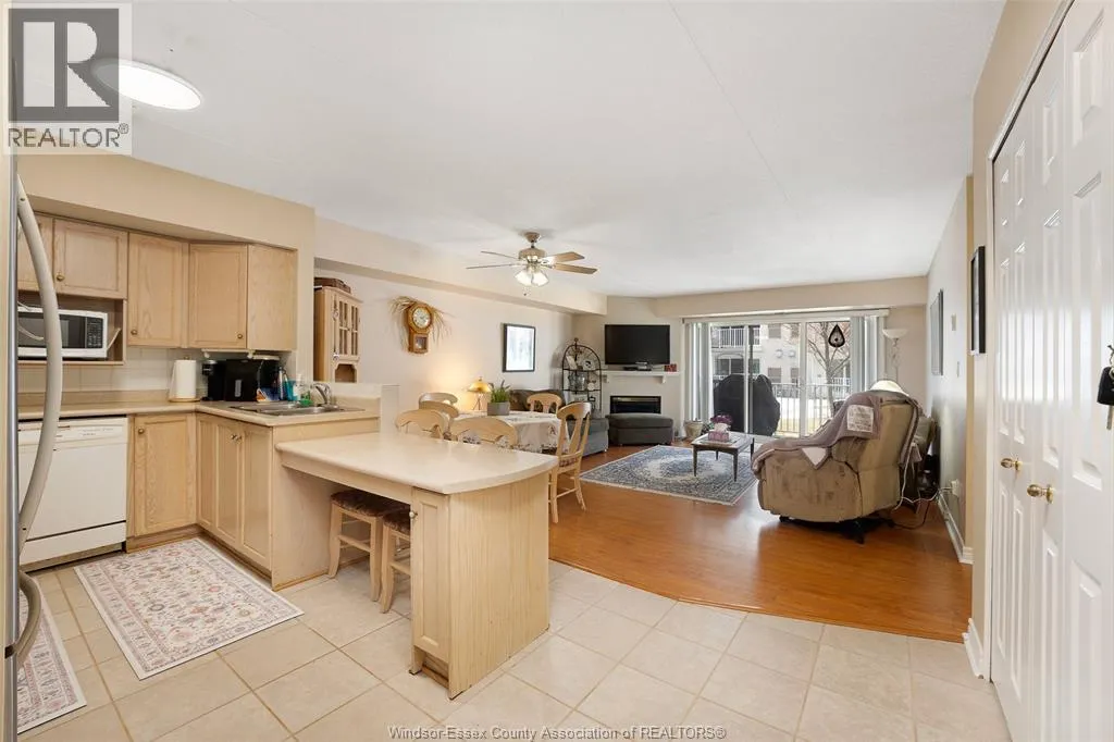 Welcome to 1995 Normandy, a beautiful and bright open concept main floor condo offering the perfect blend of comfort and convenience. This well-maintained unit features an inviting living area with a cozy fireplace and access to a private balconyâ and court yard, an ideal space to relax and unwind. The primary bedroom offers a walk-in closet and private ensuite, providing a comfortable and functional retreat. Ideally located just steps from shopping, restaurants, transit routes, and everyday amenities, parks and with the scenic LaSalle trails nearby for outdoor enjoyment. An excellent opportunity for downsizers, professionals, or investors seeking low maintenance living in a highly desirable area. Only minutes from 5 exceptional Gold courses and approx. 7-12 marinas and docking facilities. (id:27476)