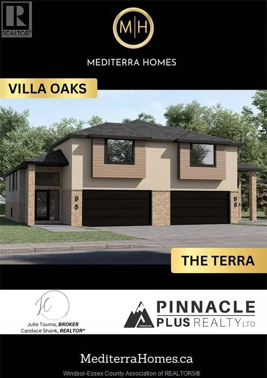 FOR A LIMITED TIME - INTRODUCTORY PRICING!! Welcome to Mayrand Street in the new Villa Oaks Estates Subdivision! The 'Terra' model is a spacious Raised Ranch semi-detached home with bonus room and attached double garage features 3 Bedrooms & 2 Bathrooms in a quiet neighbourhood just minutes from many amenities. Step inside to the bright, welcoming space with hardwood floors in the kitchen all living areas and tile flooring in the foyer and baths. The open floor plan seamlessly connects the living room to the dining area and kitchen, making it ideal for entertaining and family gatherings. The kitchenâs functional layout features plenty of cabinet space, island, solid surface countertops and beautiful coffee bar. The upper level features a large primary bedroom with 4-piece ensuite and walk-in closet- a private oasis! The unfinished basement features a grade entrance, rough-in bath and rough-in kitchen. Located in a desirable LaSalle neighborhood with easy access to local schools, shopping, and major highways. First Time Home Buyer Rebate Applies if eligible-Ask Listing Agent for more details! (id:27476)