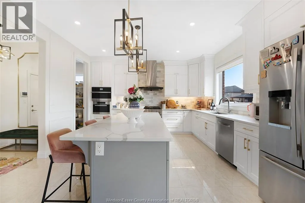 Award-winning craftsmanship by J. Rauti Custom Homes. This impressive two-storey custom home features a stunning family room with soaring ceilings, a custom window wall, and a beautiful fireplace. Designer trim and upscale finishes are showcased throughout. The spacious kitchen overlooks a covered patio and deep backyard, perfect for entertaining. The main floor includes a walk-in pantry and mudroom with access to the finished two-car garage. Upstairs offers four generously sized bedrooms, including two with private ensuite baths, and four bathrooms in total. The primary suite features custom closet built-ins. Additional highlights include high-end appliances and approximately $25,000 in upgraded flooring, lighting, and designer bathroom accessories. (id:27476)