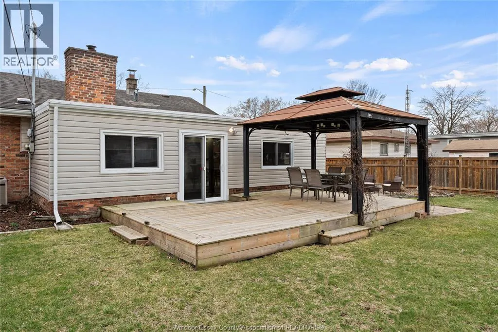 Donât miss this charming ranch home in the heart of LaSalle situated on a rare 120 x 129 ft double lot! The property offers 3 bedrooms and 1.5 baths, spacious kitchen with center island, large dining area, and inviting living room with barn board feature wall and pebble stone floor accents. Updated 4-pc bath (approx. 3 yrs). Enclosed sunroom with wood-burning fireplace and bar creates the perfect space for entertaining. Second sunroom great for greenhouse use or relaxing with your morning coffee. Exterior features sundeck with gazebo overlooking the fully fenced massive yard. Beautifully landscaped grounds with trees, garden beds and storage shed. Heated 2-car drywalled garage, second driveway leading to a potential second small home (ADU). Conveniently located near schools, shopping and the scenic LaSalle Landing Waterfront. (id:27476)