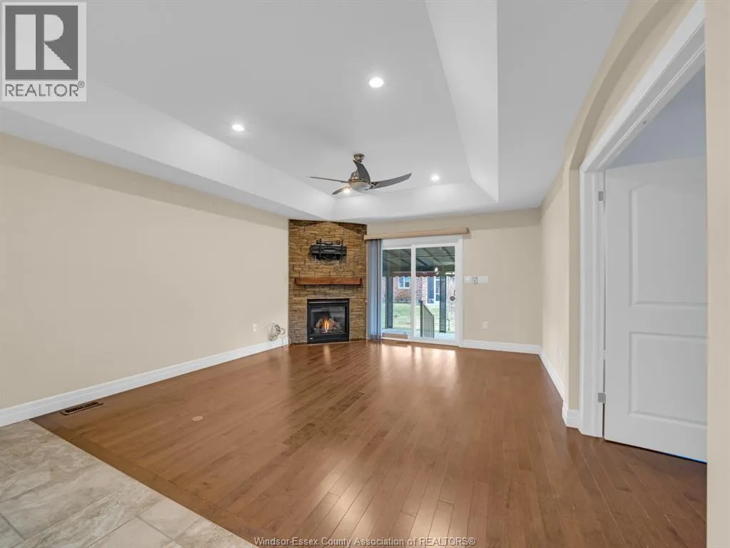 This beautiful freehold ranch townhouse is move-in ready! The main floor offers 2 bedrooms, 2 bathrooms, and a bright open-concept living space. The primary bedroom features a walk-in closet & private ensuite bathroom. The kitchen is equipped with granite countertops, ample cupboard space & a large island, all flowing seamlessly into the living room where a cozy gas fireplace awaits. Step outside to relax or entertain in the backyard under the covered patio. The full unfinished basement provides a blank canvas to customize to your needs. Additional highlights include central vacuum, an attached 2-car garage with 4-car driveway and an inground sprinkler system in front & backyard. No hassle about grass cutting or snow removal since the monthly maintenance fee of only $60.00 covers it all! Close to walking trails, parks, schools, Windsor Crossing Premium Outlets, and just a few minutes away from Hwy 401. Call to schedule your showing today! (id:27476)