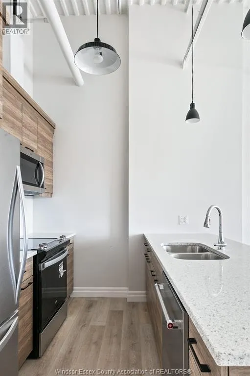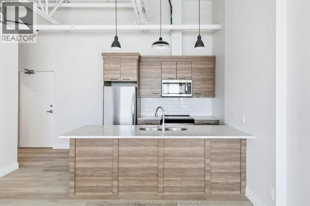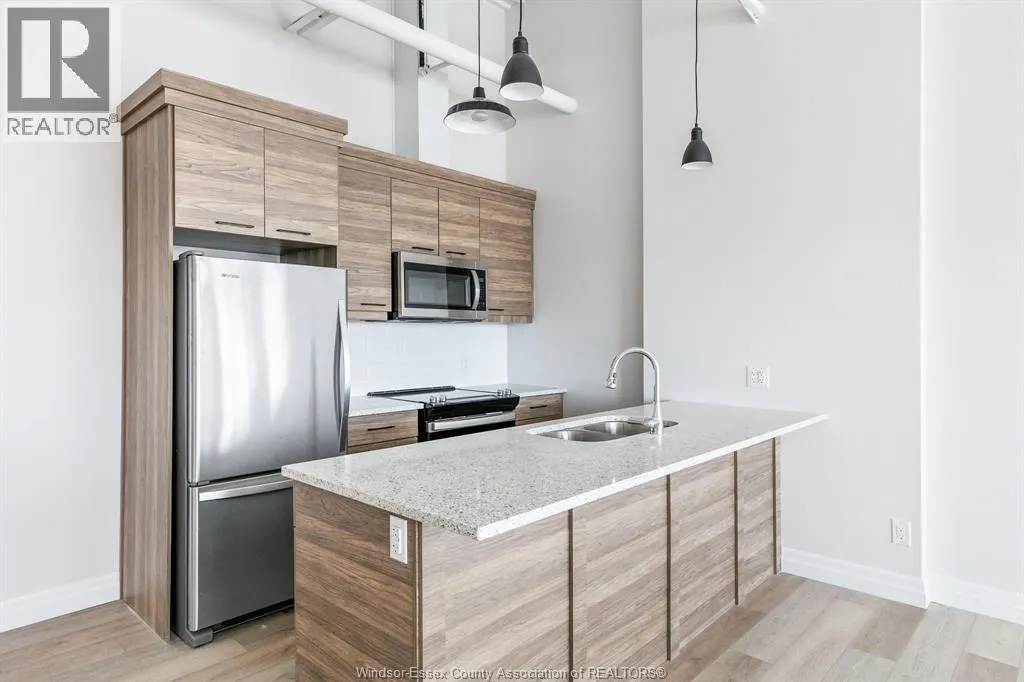 TODD LANE TO MALDEN INTO LASALLE. LOFTS ARE LOCATED IN MALDEN SQUARE SHOPPING PLAZA (BY THE GOAT) Interesting loft unit in the heart of LaSalle. Walk to shops, medical offices, restaurants, banks, etc. Soaring open ceilings, vinyl plank floors, open plan kitchen/dining/living room. Large island with Quartz countertop. All appliances included. Assigned surface parking included. No rental charges for furnace, etc. Credit check and proof of employment required. 1 year lease. Tenant pays utilities (gas, water and hydro). PLEASE NOTE: small pets only (20 lbs max). By appointment only. (id:27476)